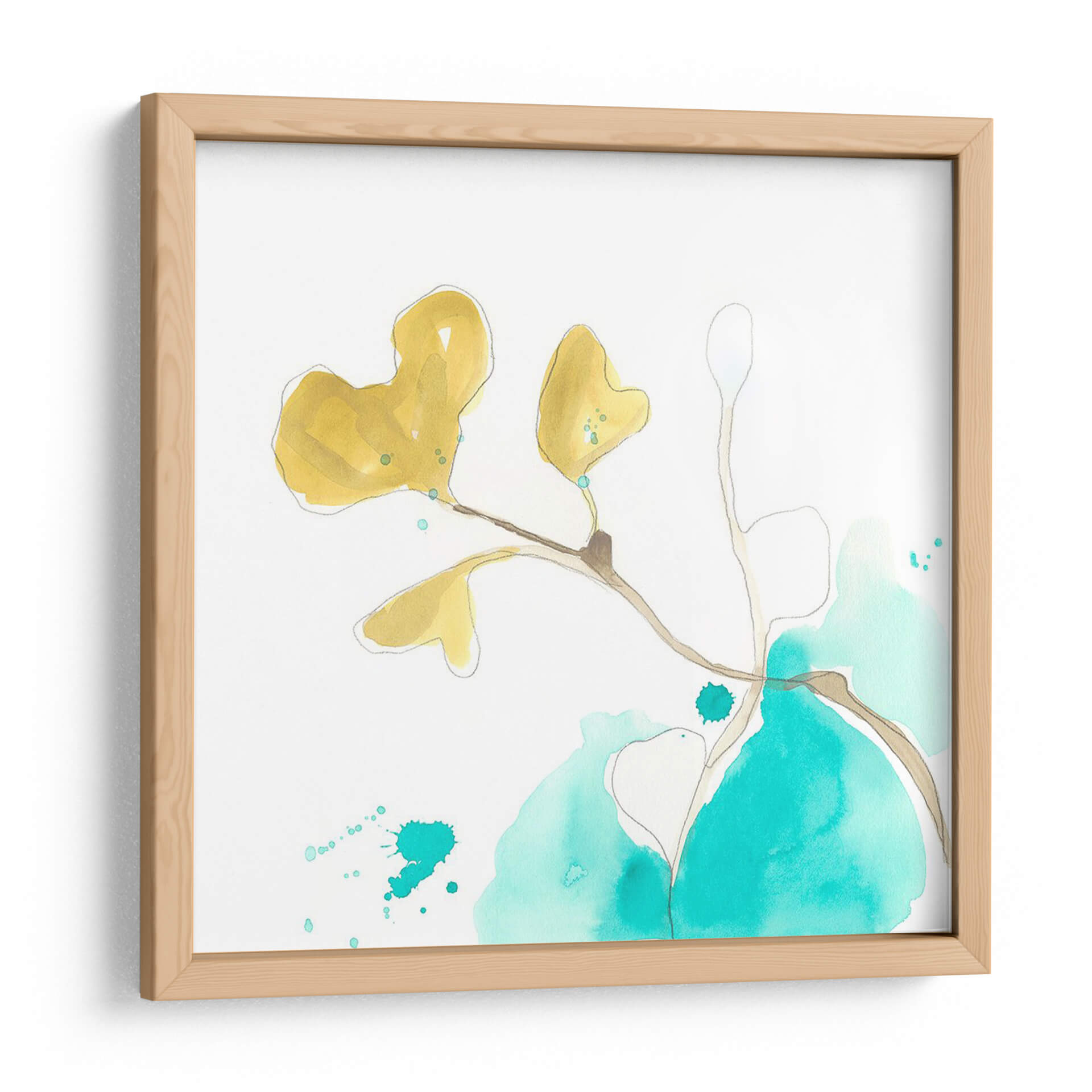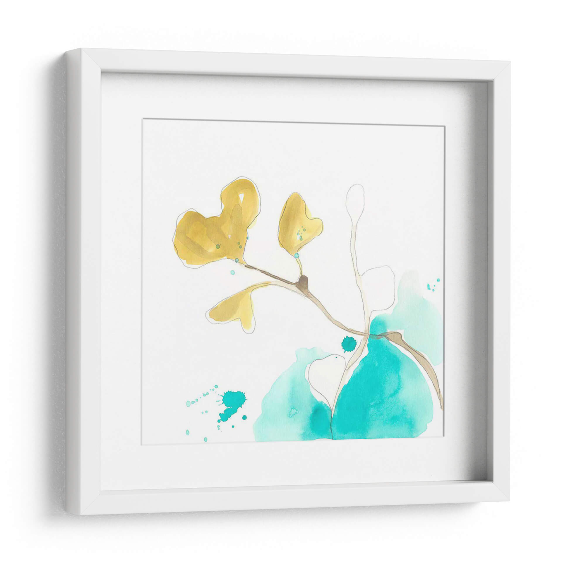 Sumérgete en la serenidad botánica con "Teal Y Ocre Ginko V", una cautivadora obra de arte de June Erica Vess. Este cuadro decorativo captura la delicadeza de una rama de ginkgo con hojas en vibrantes tonos ocres y amarillos, contrastando elegantemente con manchas etéreas de color turquesa. La técnica acuarela y el trazo lineal sugieren un estilo contemporáneo y orgánico, evocando una sensación de calma y conexión con la naturaleza. La composición minimalista, con un fondo blanco puro, permite que los elementos principales respiren, creando un equilibrio visual armonioso. Ideal para quienes buscan infundir un toque de color natural y sofisticación en su hogar u oficina, este cuadro es una invitación a la contemplación. Su paleta de colores, que combina la calidez del ocre con la frescura del turquesa, lo convierte en una pieza versátil, perfecta para salones modernos, dormitorios serenos o espacios de trabajo que necesiten un toque de inspiración artística. Añade esta pieza única a tu colección y transforma tu entorno en un oasis de tranquilidad y estilo.