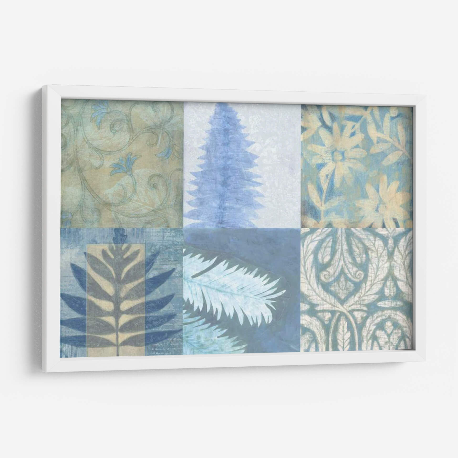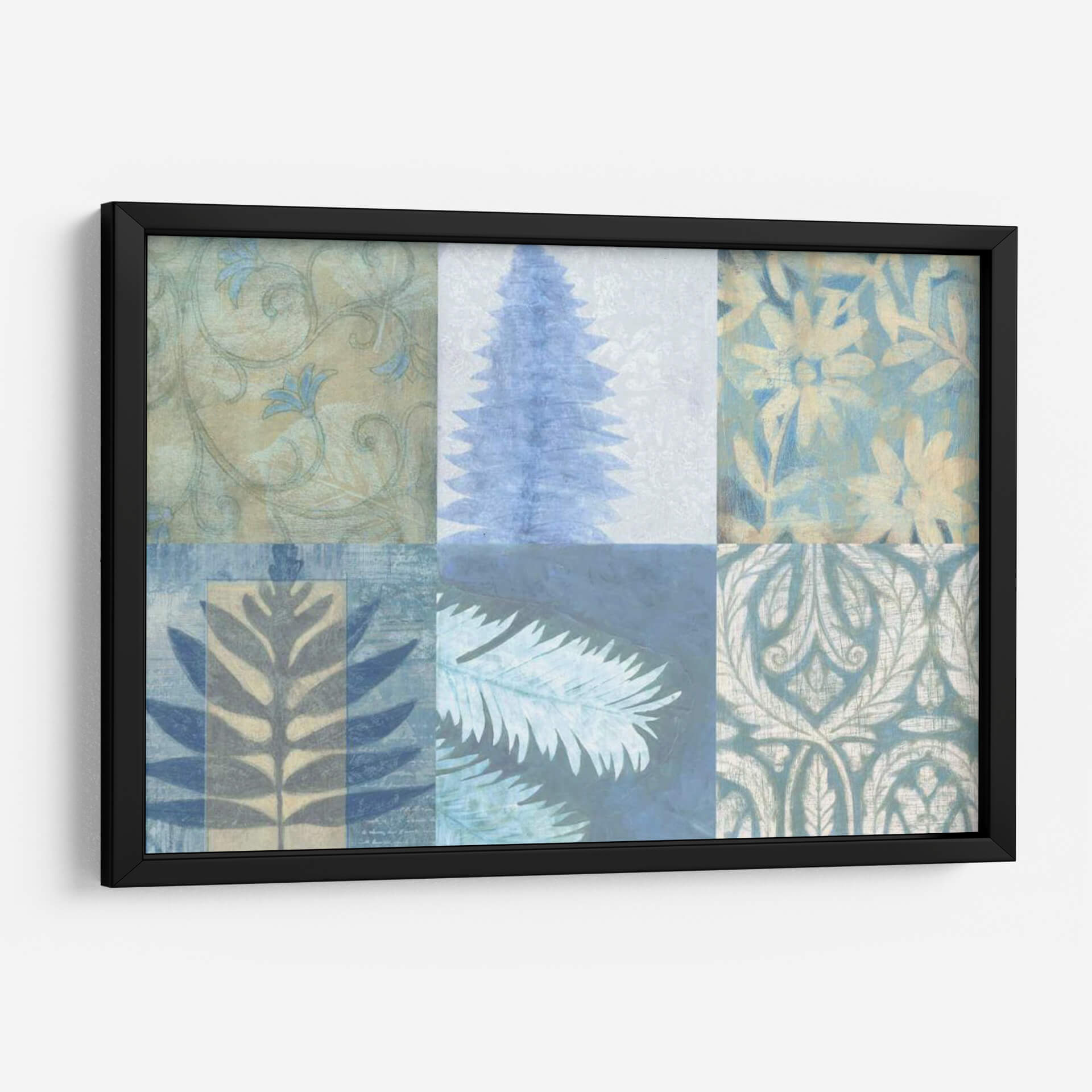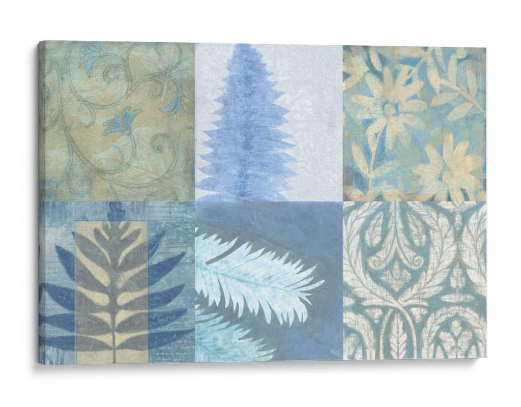 Sumérgete en la serena belleza de 'Texturas Azules II', una obra de arte contemporáneo que evoca la tranquilidad de la naturaleza y la delicadeza de los patrones botánicos. Este cuadro decorativo presenta una composición dividida en seis paneles, cada uno explorando diferentes texturas y motivos inspirados en elementos vegetales. La paleta de colores, dominada por suaves tonos de azul, verde azulado y beige, crea una atmósfera de calma y armonía, perfecta para cualquier espacio que busque un toque de serenidad. Los detalles, que van desde intrincados patrones florales y de hojas hasta la silueta estilizada de un árbol o una rama, invitan a la contemplación y añaden profundidad visual. Ideal para salones, dormitorios o estudios, este cuadro decorativo contemporáneo aportará una sensación de frescura y sofisticación. Su diseño modular y su estética relajante lo convierten en una pieza versátil que complementa una amplia gama de estilos decorativos, desde el moderno hasta el bohemio, añadiendo un toque artístico distintivo sin ser abrumador. Transforma tu hogar en un oasis de paz con esta cautivadora pieza de Vision Studio.