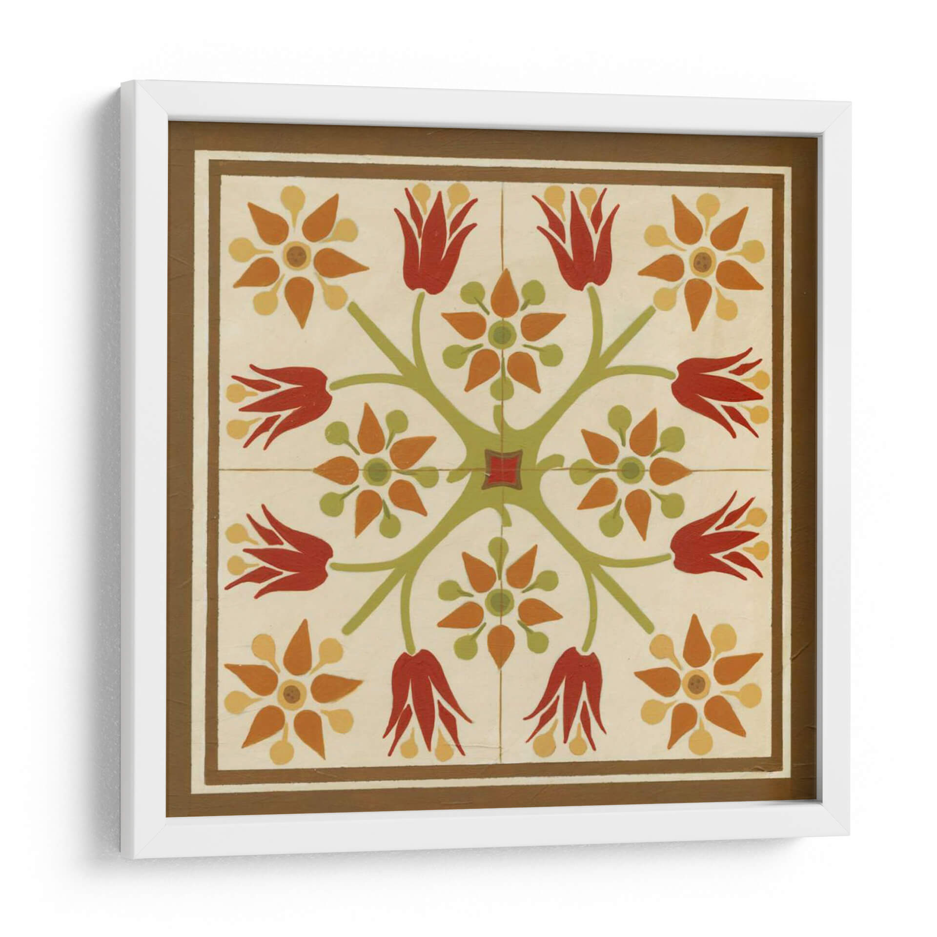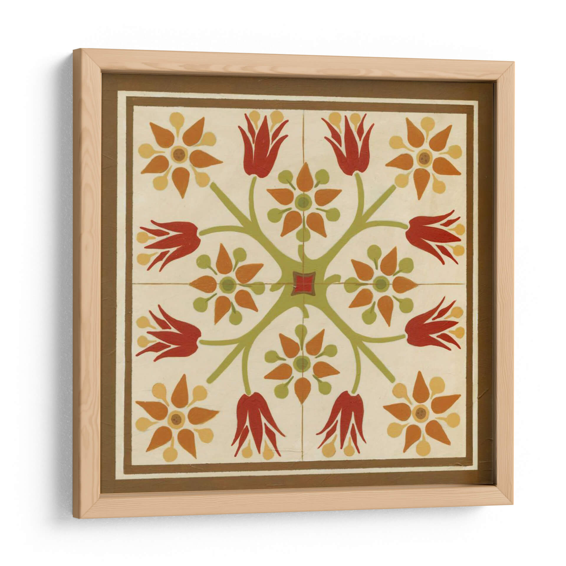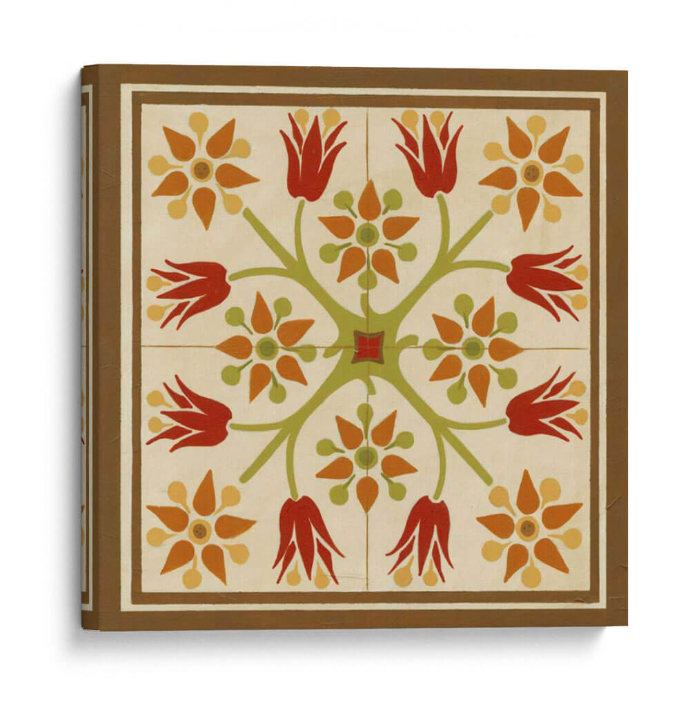 Transforma tu espacio con "Tile Folk Floral Ii", una cautivadora obra de arte que celebra la belleza de los patrones florales. Esta pieza presenta una simetría encantadora, con delicadas flores en tonos cálidos de naranja y amarillo que contrastan armoniosamente con los vibrantes toques de rojo y el fresco verde de los tallos. Inspirada en el arte folclórico y los diseños de azulejos tradicionales, esta composición evoca una sensación de calidez, alegría y conexión con la naturaleza. La paleta de colores, predominantemente tierra con acentos brillantes, la convierte en un complemento versátil para una amplia gama de decoraciones interiores, desde lo rústico hasta lo contemporáneo. Imagina este cuadro decorativo aportando un toque de vitalidad y encanto artesanal a tu sala de estar, comedor o incluso a un espacio de trabajo. Su diseño detallado y su atmósfera acogedora invitan a la contemplación y añaden una dimensión de estilo único a cualquier pared. Ideal para quienes buscan arte con carácter y una historia visual que contar, "Tile Folk Floral Ii" es una elección excepcional para infundir personalidad y belleza en tu hogar.