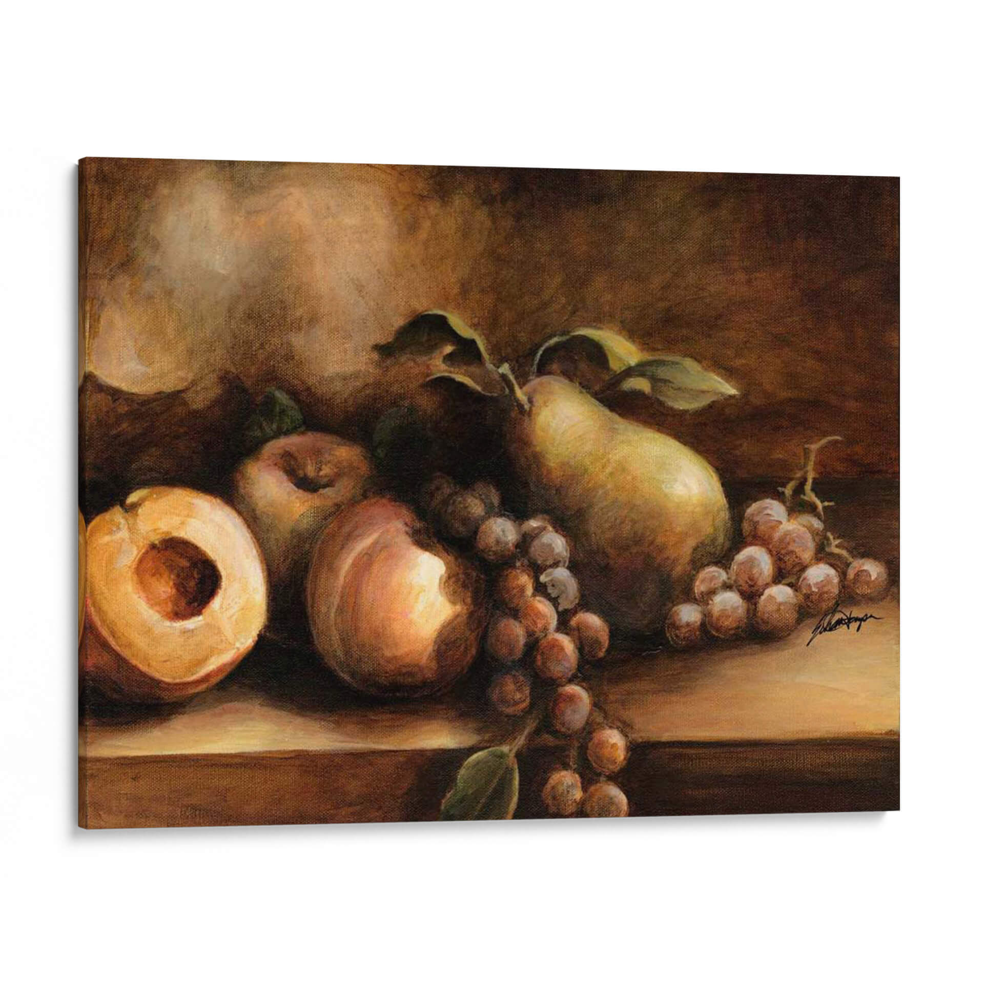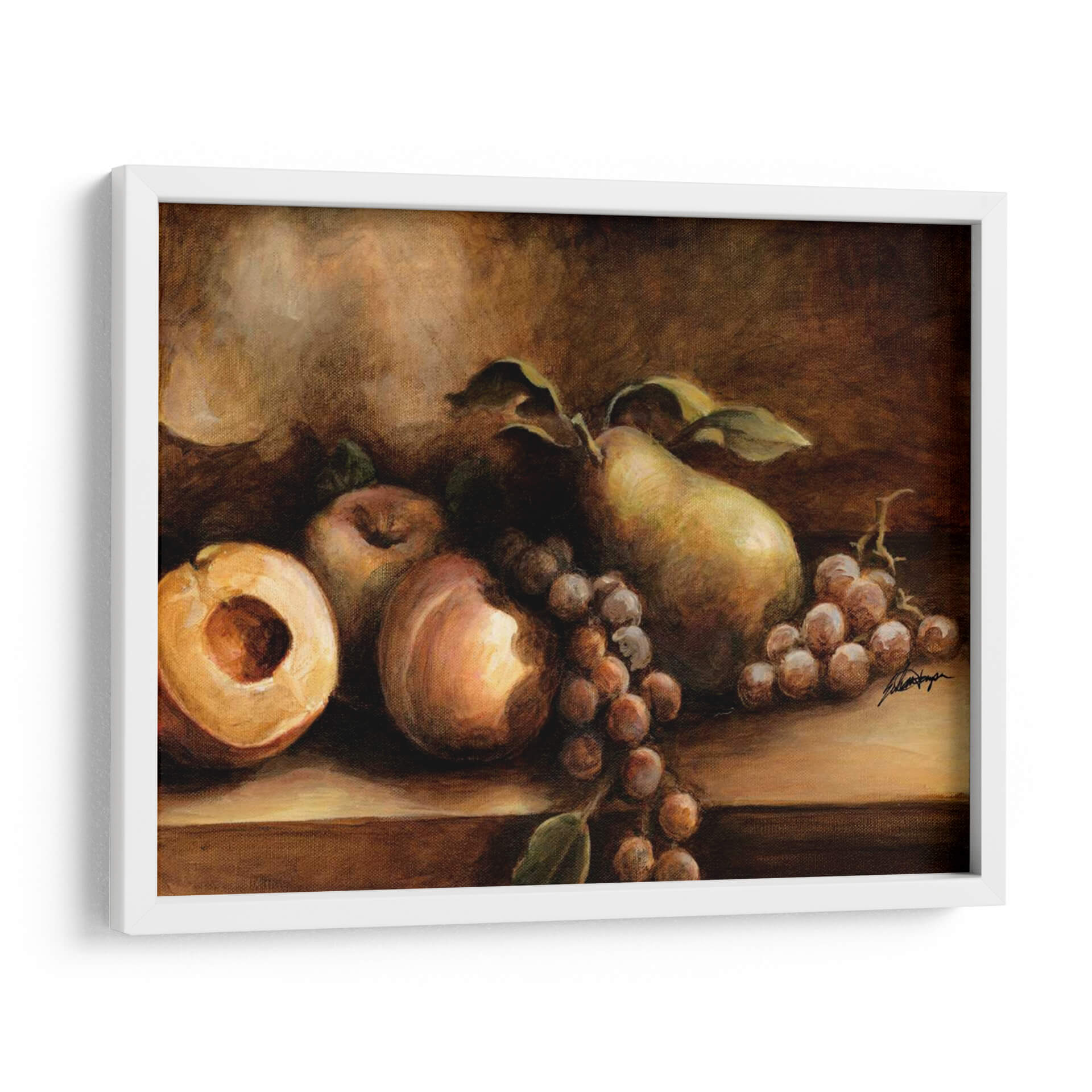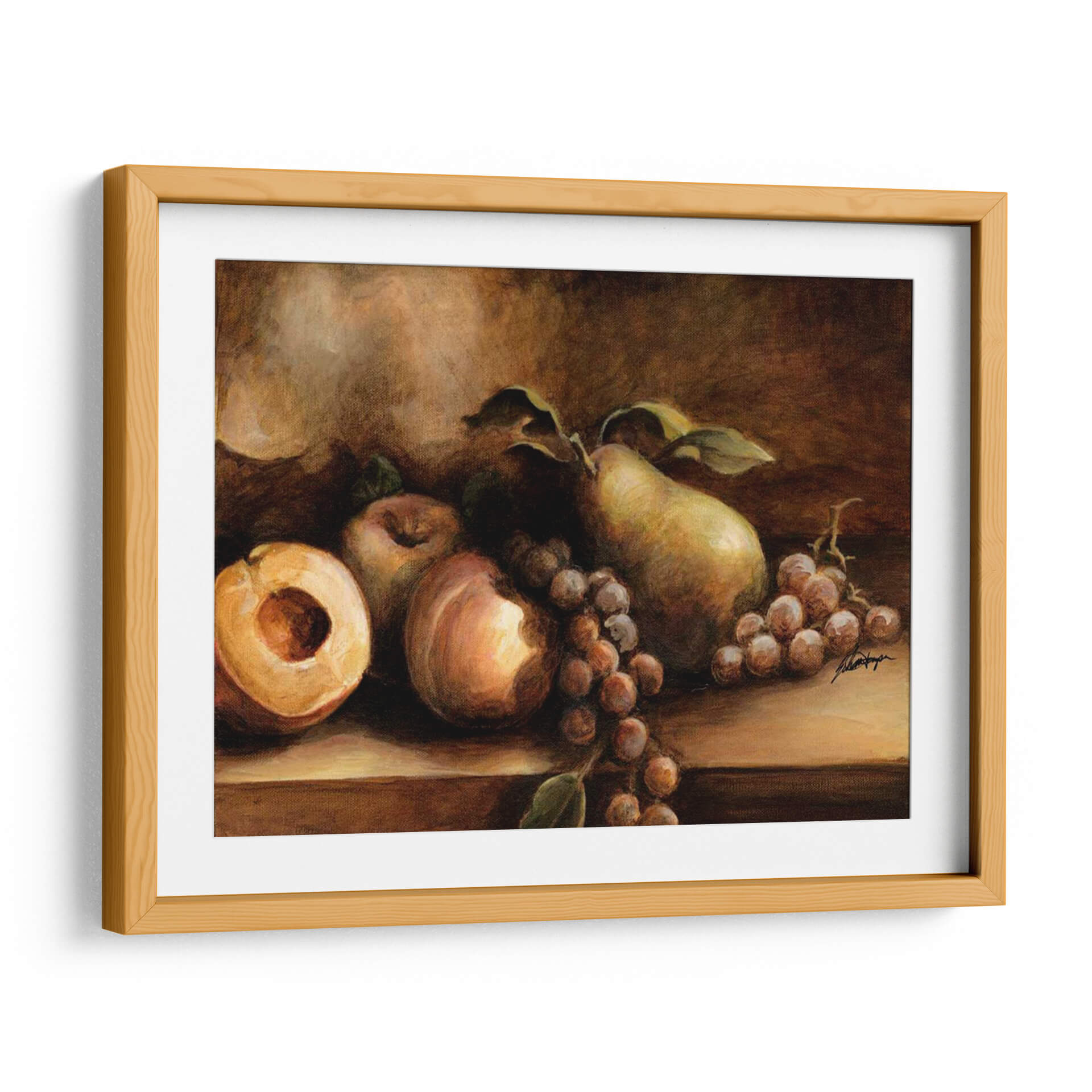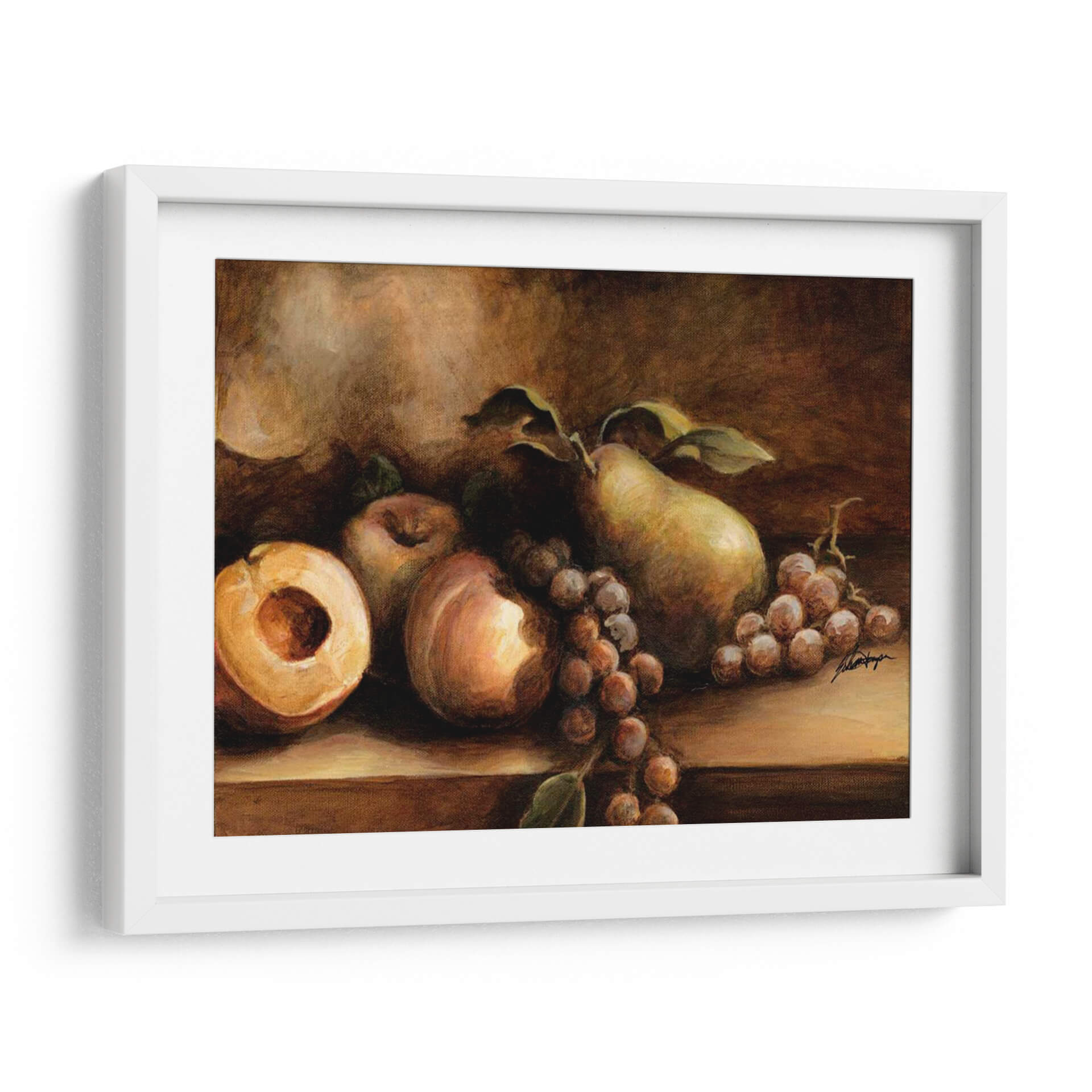 Sumérgete en la rica y atemporal belleza de "Todavía Vida Clásica I", una obra maestra del artista Ethan Harper que captura la esencia de la naturaleza en su forma más pura. Este cuadro decorativo presenta una exquisita composición de frutas frescas, con una pera jugosa, uvas maduras y un melocotón cortado que invitan a la contemplación. La paleta de colores, dominada por tonos cálidos y terrosos, evoca una sensación de calidez, tradición y sofisticación, creando una atmósfera de serenidad y elegancia en cualquier espacio. La técnica pictórica de Harper, que roza el realismo con toques impresionistas, dota a cada fruta de una textura y volumen palpables, mientras que el juego de luces y sombras añade profundidad y un aire de misterio clásico. Ideal para añadir un toque de refinamiento a tu comedor, cocina o estudio, este cuadro decorativo es una celebración de la vida y la abundancia, diseñado para perdurar y cautivar la mirada. Integra esta pieza en tu decoración y disfruta de su encanto clásico que nunca pasa de moda, aportando un punto focal de exquisita belleza a tu hogar u oficina, y recordándonos la belleza simple de lo cotidiano.