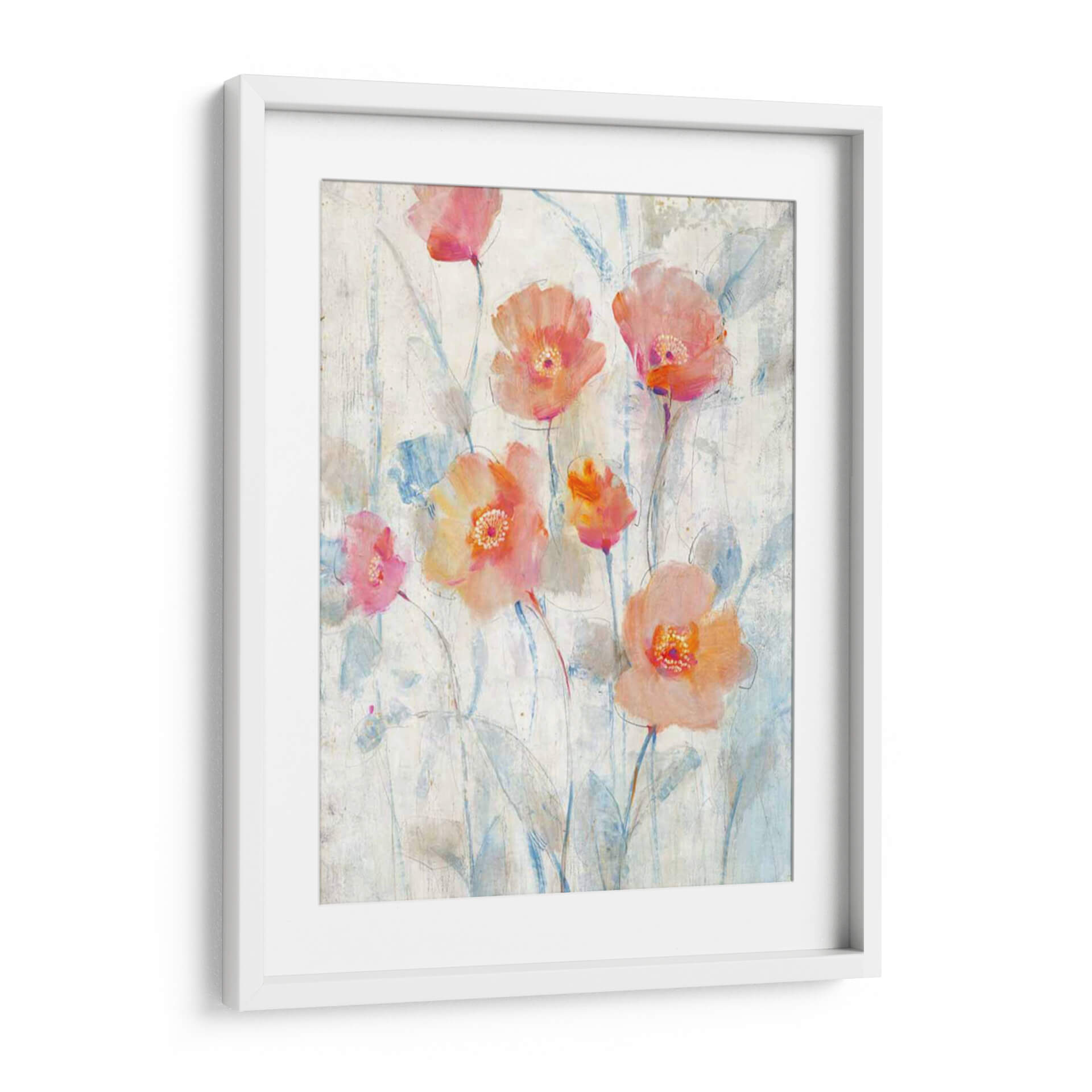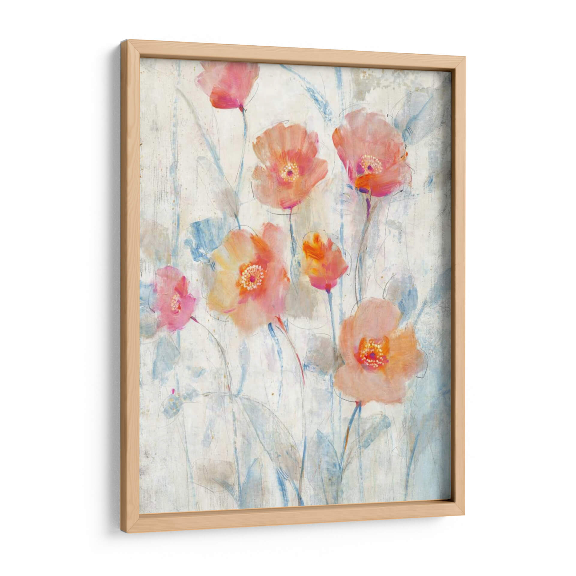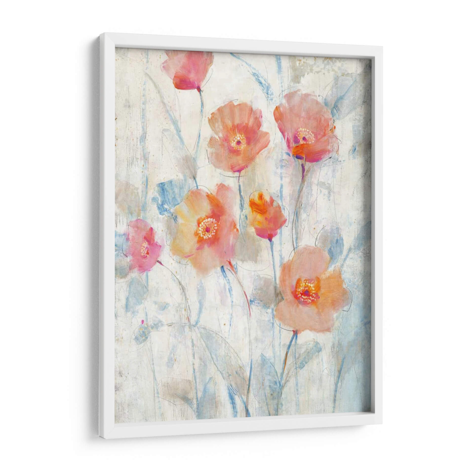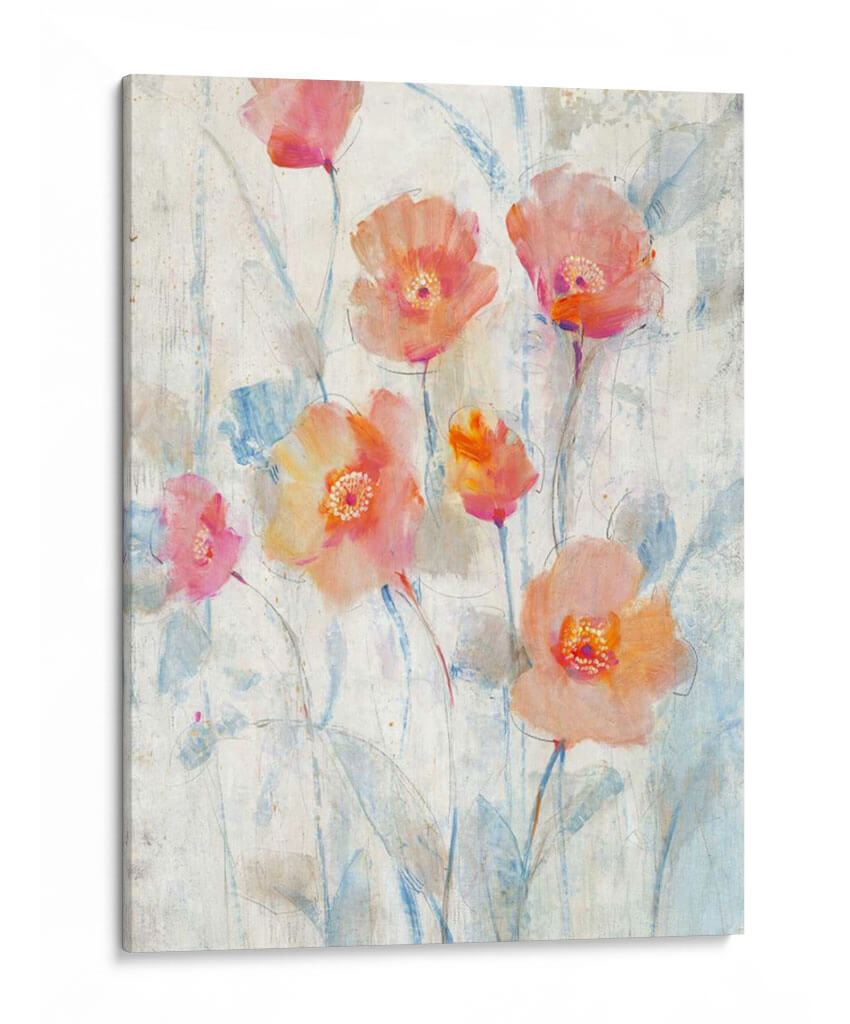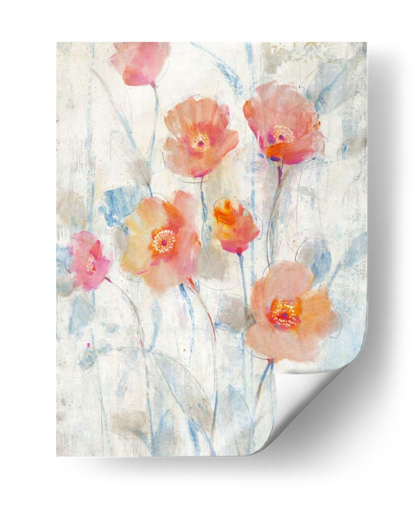 Transforma tu espacio con la delicadeza etérea del cuadro decorativo "Translúcido II" de Tim O'Toole. Esta obra de arte contemporánea captura la esencia de las flores en un estilo que fusiona la delicadeza del acuarela con toques de trazos gestuales, creando una atmósfera de serenidad y belleza sutil. La paleta de colores, dominada por suaves tonos coral, melocotón y toques de rosa, se combina magistralmente con los sutiles matices azulados de las hojas y el fondo texturizado en blanco roto. Los centros de las flores, con sus vibrantes detalles en naranja y rojo, aportan puntos de interés visual sin abrumar la armonía general. "Translúcido II" es más que una simple imagen; es una invitación a la calma y la contemplación. Su estilo semi-abstracto y las formas fluidas lo convierten en una pieza versátil, ideal para infundir una sensación de paz y sofisticación en cualquier habitación. Imagina este cuadro decorativo aportando un toque de primavera atemporal a tu sala de estar, un remanso de tranquilidad a tu dormitorio, o una pincelada de elegancia artística a tu oficina. La textura del fondo sugiere una profundidad sutil, invitando a mirar más de cerca y descubrir los detalles que hacen única a esta pieza floral. Añade un toque de naturaleza refinada y arte contemporáneo a tu hogar con "Translúcido II", una obra que celebra la belleza efímera con una sensibilidad artística excepcional.