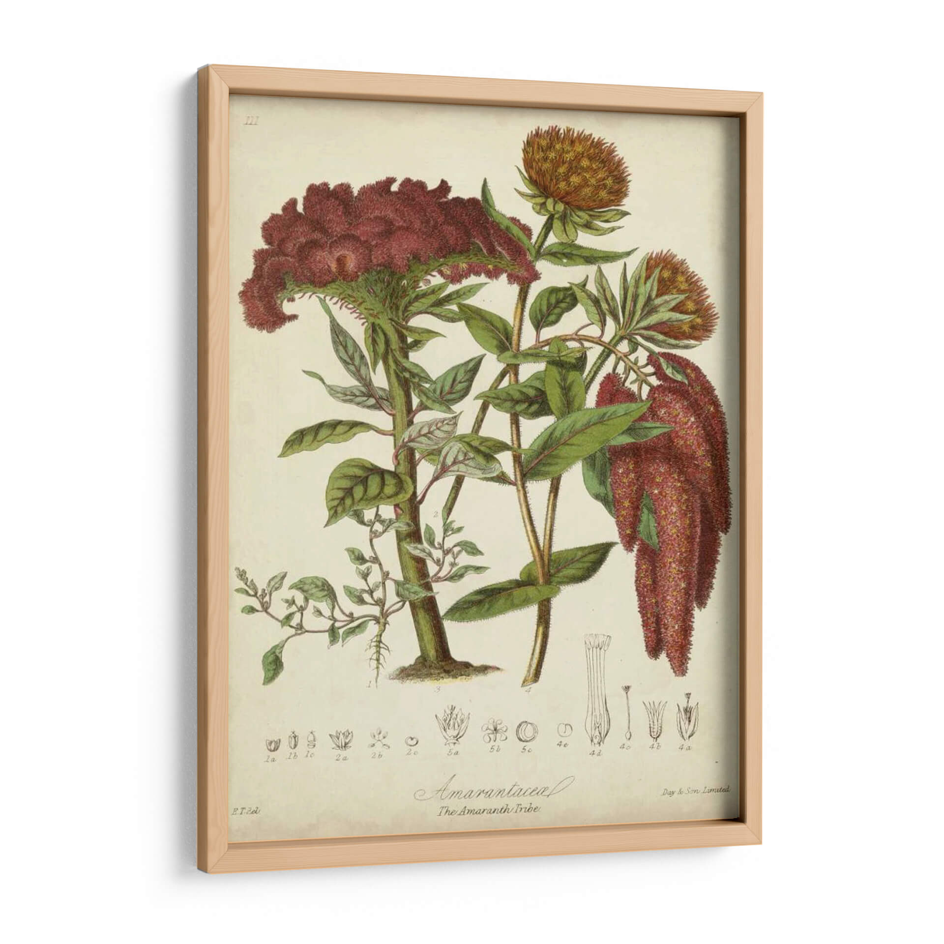 Embellece tu hogar con el encanto atemporal de "Twining Botanicals II", una exquisita obra de arte botánico del siglo XIX, reimaginada para el espacio contemporáneo. Esta pieza, capturada originalmente por la talentosa Elizabeth Twining, te transporta a un jardín sereno con sus detalladas ilustraciones de amarantáceas. Los vibrantes tonos burdeos y ocres de las flores se complementan con el verde profundo de las hojas, creando un contraste visual cautivador sobre un fondo de pergamino suave. La composición meticulosa, que incluye estudios detallados de las partes de la planta, no solo exhibe la belleza natural sino que también rinde homenaje al rigor científico de la botánica clásica. Este cuadro decorativo es perfecto para añadir un toque de elegancia naturalista a tu sala de estar, estudio o dormitorio, evocando una sensación de calma y aprecio por el mundo natural. Su estilo de ilustración botánica vintage lo convierte en una pieza de conversación ideal, fusionando el arte histórico con la decoración moderna para un ambiente sofisticado y sereno.