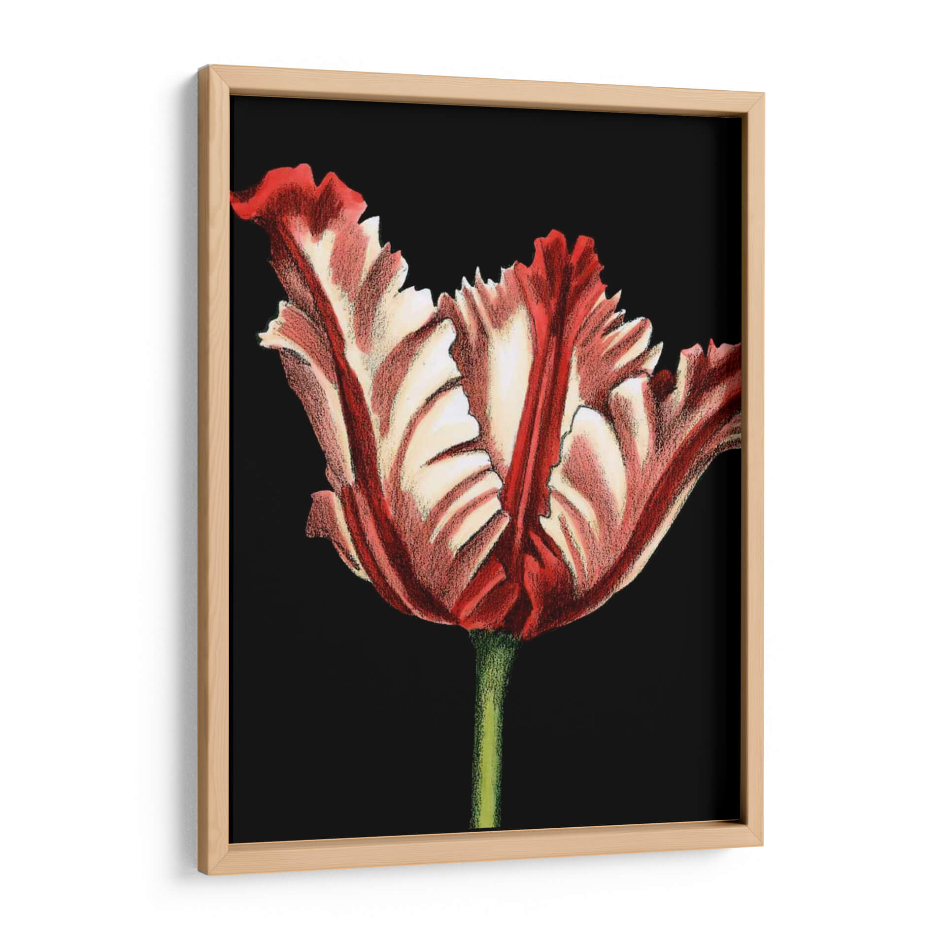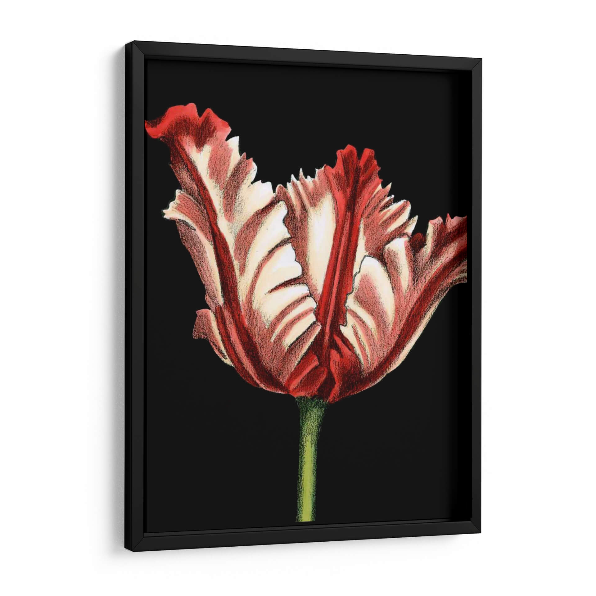 Emb c El cuadro decorativo "Vibrante Tulipanes II" de Ethan Harper es una obra cautivadora que captura la esencia dram de un tulip flor, con sus p talos rizados y su intenso contraste de colores. La composici sobre un fondo negro profundo crea un efecto visual impactante, resaltando la riqueza de los tonos rojos y blancos crema de la flor. El estilo de la obra, que evoca una t cl de ilustraci bot de gran detalle, aporta un toque de elegancia atemporal. La t cnica utilizada, con trazos que sugieren textura y profundidad, da vida a los p talos, invitando a la contemplaci . Este cuadro decorativo es perfecto para a ade una pincelada de color y sofisticaci a cualquier espacio. Su presencia es ideal para salas de estar, recibidores o incluso oficinas, donde su belleza natural y su energ vibrante pueden generar un ambiente de inspiraci y serenidad. La representaci de esta flor emblem elaborada con tal maestria, convierte a "Vibrante Tulipanes II" en una pieza central que atrae miradas y evoca una sensaci de vitalidad y aprecio por la naturaleza.