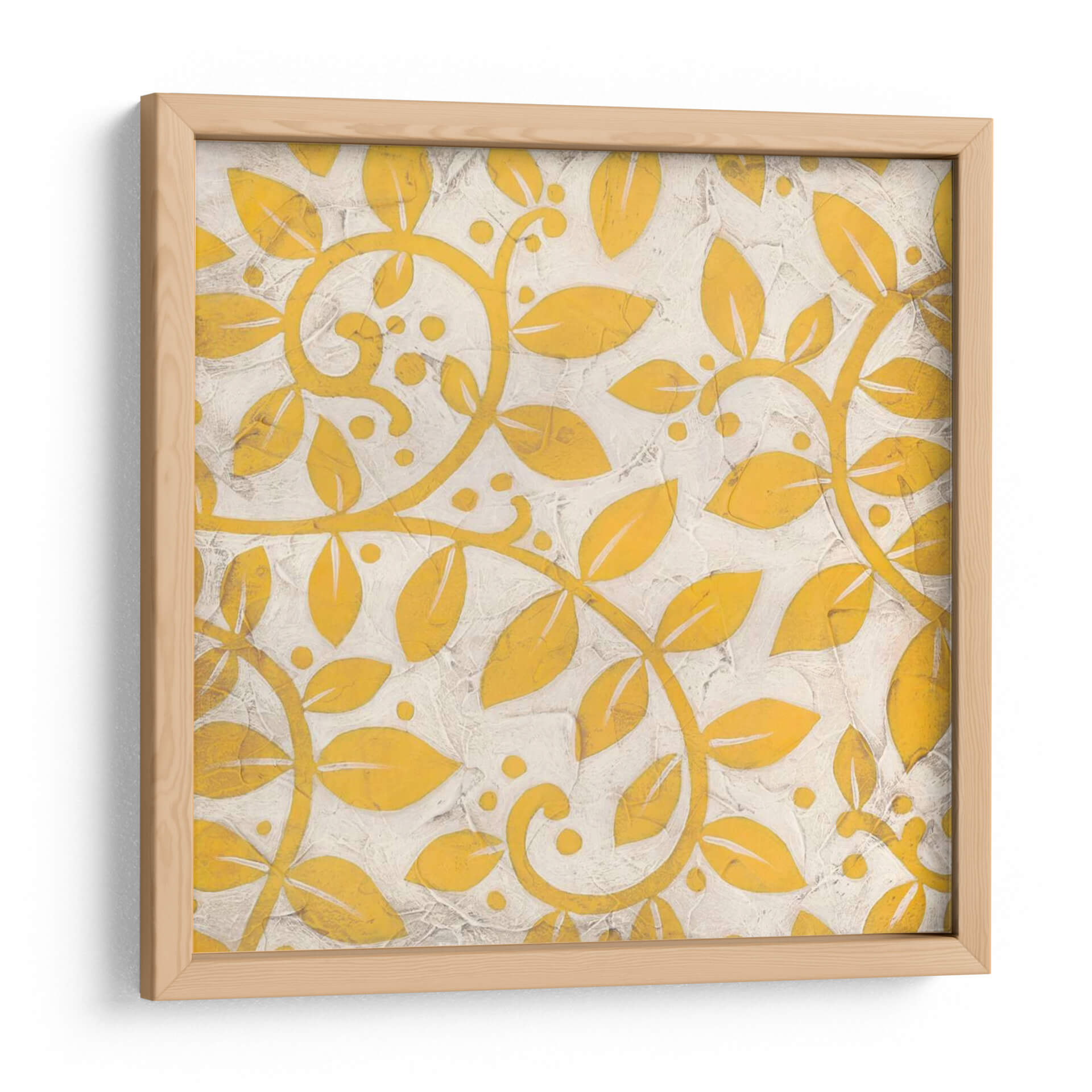 Infundir vitalidad y estilo en su espacio con "Vides Vívidas I", una cautivadora obra de arte de June Erica Vess. Este cuadro decorativo presenta un exuberante patrón de enredaderas en un vibrante tono dorado, que contrasta maravillosamente con un fondo texturizado en tonos crema y marfil. Las hojas estilizadas y los delicados zarcillos se entrelazan en una composición dinámica y fluida, evocando la energía de la naturaleza en pleno crecimiento. La paleta de colores cálidos y la intrincada textura del fondo aportan profundidad y un toque artesanal, haciendo de esta pieza un acento visual perfecto para cualquier habitación. Ideal para quienes buscan añadir un toque de optimismo y sofisticación a su hogar u oficina, "Vides Vívidas I" funciona como un punto focal lleno de vida, capaz de transformar cualquier pared en una declaración de estilo. Su diseño versátil se adapta a interiores modernos, bohemios o tradicionales, aportando una sensación de frescura y luminosidad. Descubra la belleza atemporal de este diseño botánico y deje que ilumine su entorno.