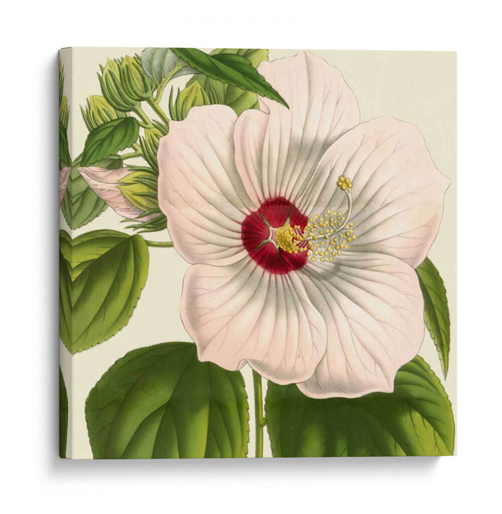 Sumérgete en la delicadeza de la naturaleza con "Visión Tropical I", un cuadro decorativo que captura la exquisita belleza de una flor de hibisco en pleno esplendor. Esta obra de arte, realizada por Vision Studio, presenta una paleta de colores suaves y elegantes, dominada por pétalos de un rosa pálido que se abren graciosamente, contrastando con el vibrante centro carmesí y los tonos verdes profundos de las hojas y capullos que la acompañan. La composición, inspirada en ilustraciones botánicas clásicas, ofrece un enfoque detallado y realista que invita a la contemplación. "Visión Tropical I" es ideal para añadir un toque de serenidad y sofisticación a cualquier espacio, ya sea un dormitorio, una sala de estar o un estudio. Su presencia evoca una sensación de calma y conexión con el mundo natural, transformando tu hogar en un oasis de tranquilidad. Este cuadro decorativo es perfecto para quienes aprecian la belleza atemporal de la botánica y buscan una pieza que aporte elegancia y un aire fresco a su decoración. Descubre la armonía de la naturaleza en tu pared con esta impresionante representación floral.
