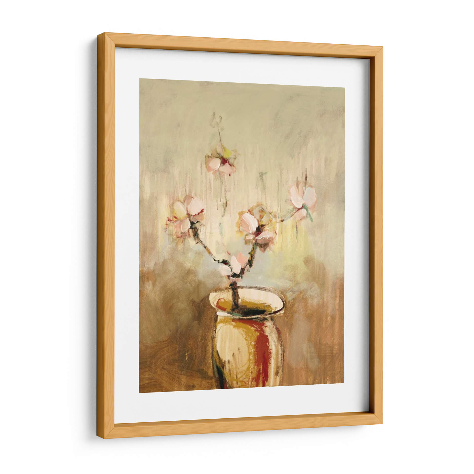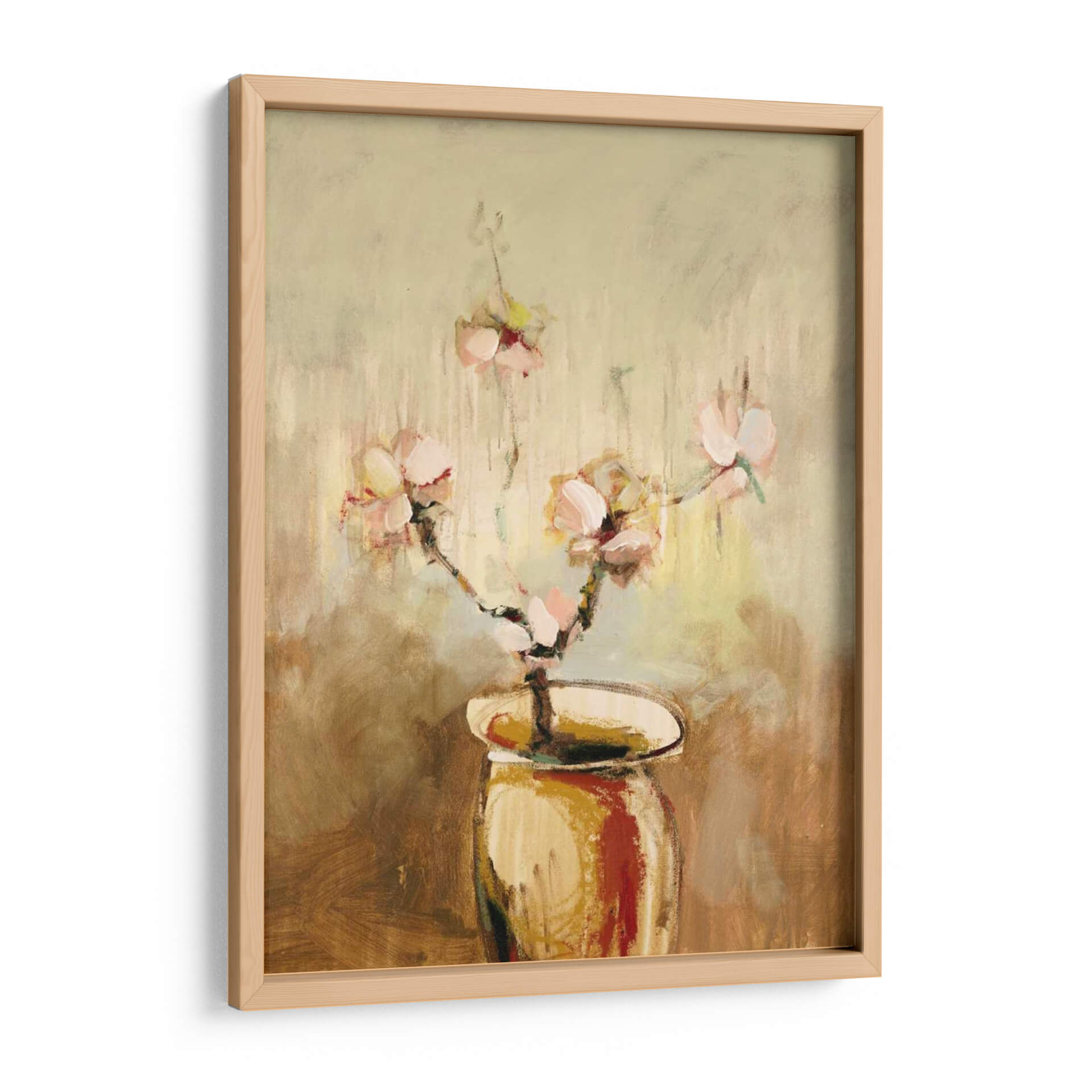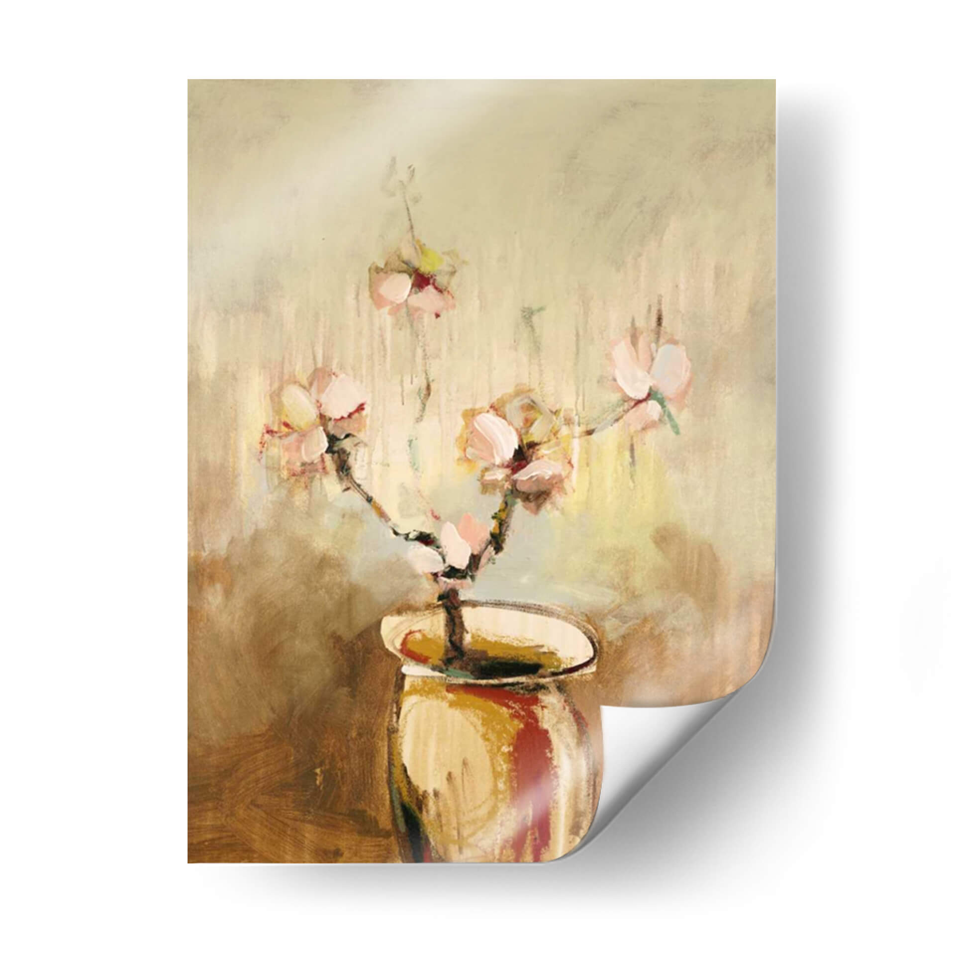 Sumérgete en la delicadeza y el encanto de "Vivo Floral 17", una obra de arte que captura la efímera belleza de las flores con un toque contemporáneo. Este cuadro decorativo presenta un jarrón estilizado que alberga un delicado ramo de flores en tonos pastel, cuyas pinceladas evocan movimiento y vitalidad. La paleta de colores, dominada por tonos cálidos y terrosos que se funden con suaves toques de rosa y amarillo, crea una atmósfera serena y acogedora. El estilo artístico, una mezcla sutil entre impresionismo y abstracción, permite que la obra respire y transmita una sensación de calma y optimismo. Las texturas sugeridas por la técnica de pintura añaden profundidad y un carácter artesanal. "Vivo Floral 17" es ideal para añadir un punto de elegancia sutil y naturalidad a cualquier espacio, desde una sala de estar moderna hasta un dormitorio sereno o una oficina que busque un ambiente inspirador y tranquilo. Transforma tu hogar en una galería personal con esta pieza que celebra la vida y la naturaleza a través de una interpretación artística única.