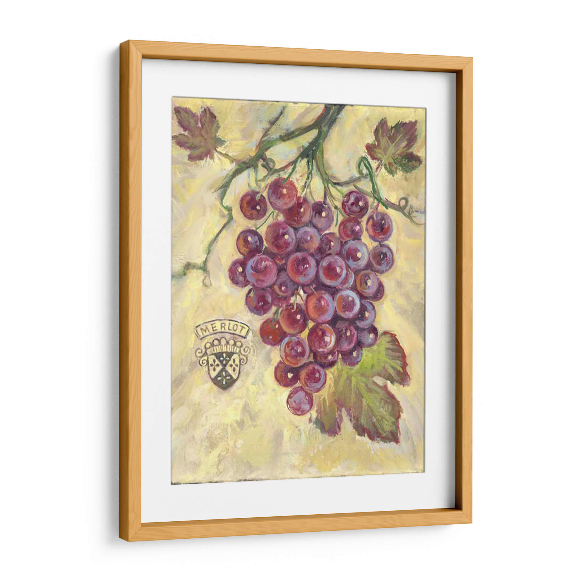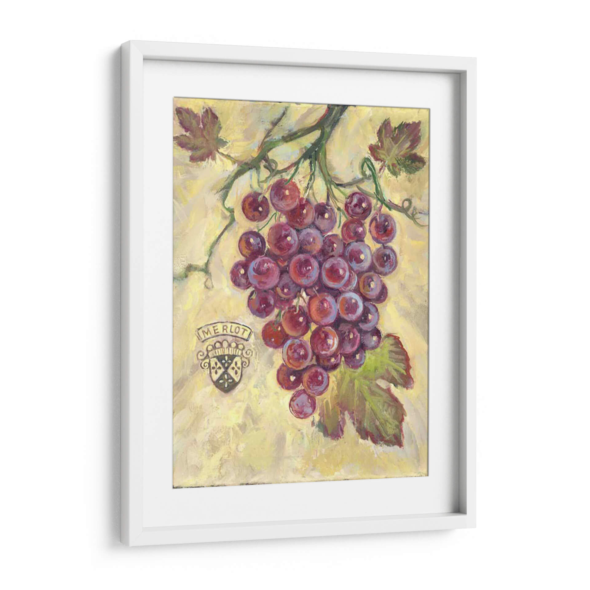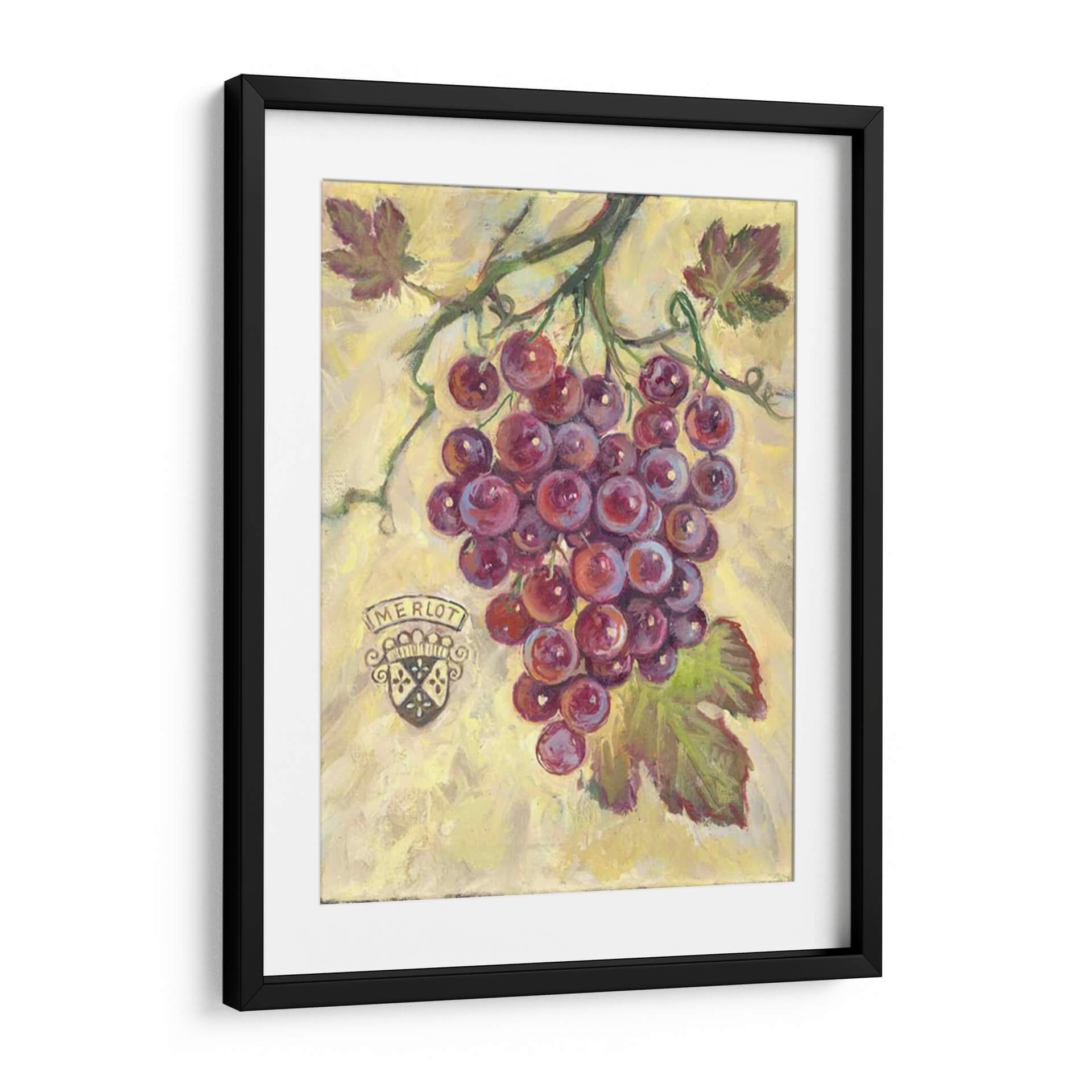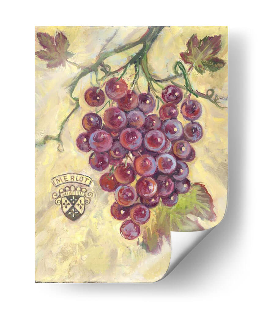 Sumérgete en la rica y vibrante experiencia sensorial que ofrece "Merlot", una obra de arte cautivadora de Theresa Kasun. Este cuadro decorativo captura la esencia de un racimo de uvas Merlot maduras, rebosantes de un color púrpura intenso y jugoso. La técnica pictórica evoca una sensación de frescura y vitalidad, con pinceladas que dan vida a la textura de las uvas y las hojas verdes que las acompañan. El fondo, en tonos amarillos y ocres sutiles, crea un contraste armonioso que resalta la profundidad y el volumen del tema principal. La presencia de un escudo heráldico con la inscripción "Merlot" añade un toque de elegancia y tradición, evocando el placer de los buenos vinos y los momentos compartidos. "Merlot" es más que una simple representación; es una invitación a celebrar la abundancia, la naturaleza y el arte de vivir. Ideal para cocinas, comedores o bodegas, este cuadro aportará calidez, sofisticación y un toque de color a cualquier espacio. Transforma tu hogar en un refugio de buen gusto con esta pieza única que celebra la belleza de lo cotidiano y la pasión por el vino.