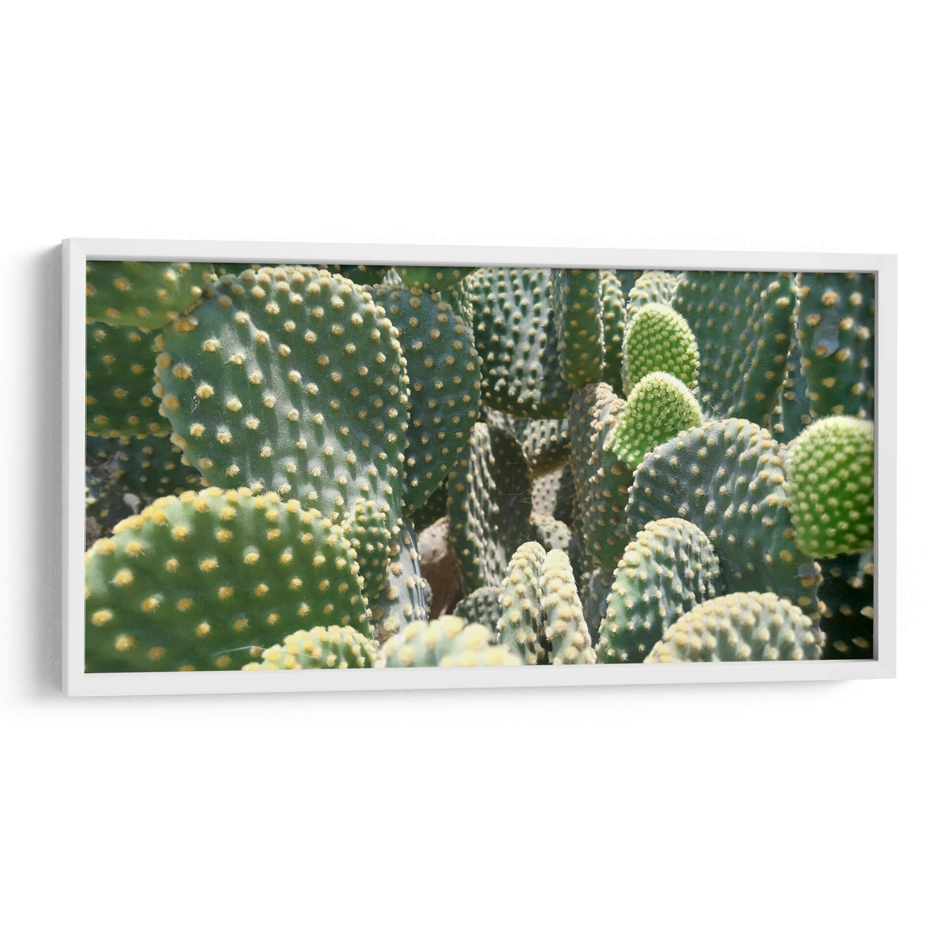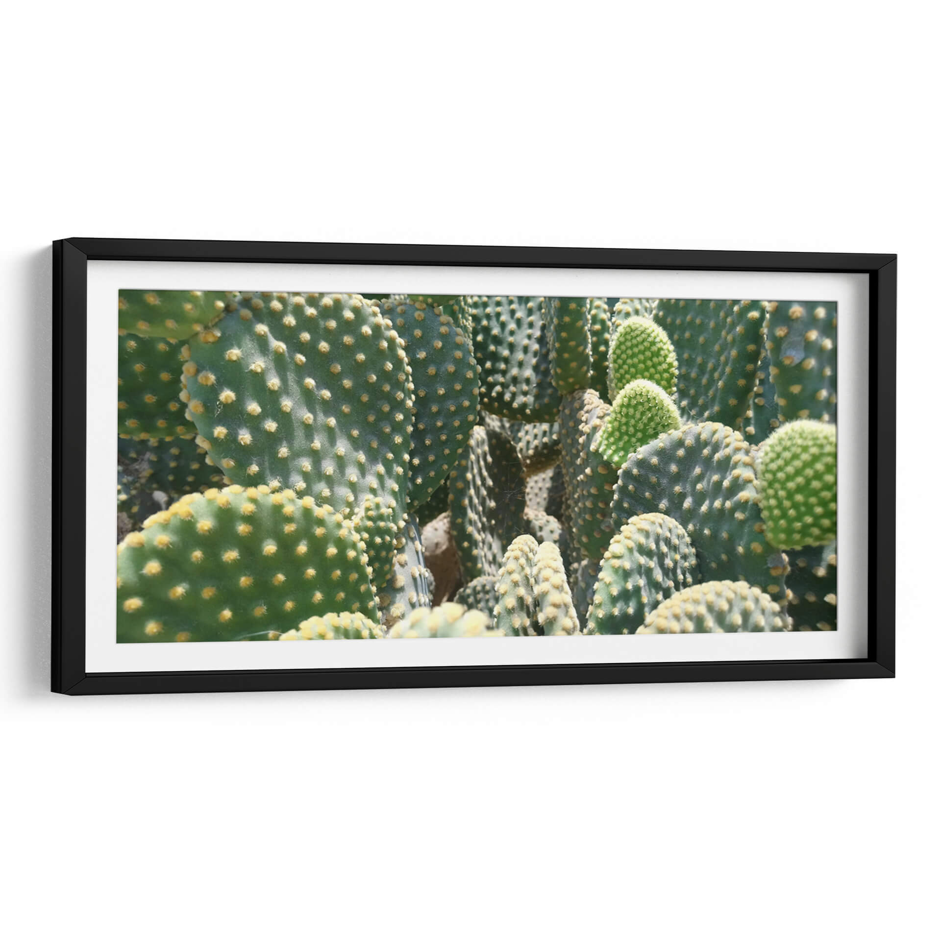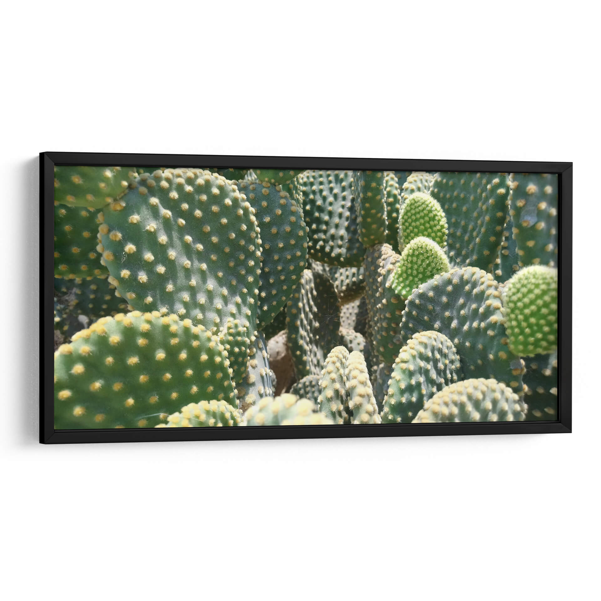 Sumérgete en la textura y la vitalidad de la naturaleza con este cautivador cuadro decorativo titulado 'El detalle de un cactus', obra del artista Salvador Gallardo. La imagen captura la esencia de múltiples nopales en un primer plano detallado, donde las tonalidades verdes profundas se entrelazan con los vibrantes puntos amarillos que salpican sus palas. La composición densa y orgánica crea una sensación de abundancia y resiliencia, evocando la fortaleza inherente de estas plantas desérticas. La luz juega un papel crucial, modelando las formas y resaltando la sutil pelusa de las areolas, confiriendo una dimensión casi táctil a la pieza. Este cuadro es ideal para añadir un toque de vida y un acento de color natural a cualquier espacio, ya sea una sala de estar moderna, una oficina serena o un dormitorio acogedor. Su estilo fotorealista y la temática botánica lo convierten en una elección perfecta para quienes buscan un arte que combine la belleza natural con una estética contemporánea. Descubre la elegancia discreta y la fuerza silenciosa que 'El detalle de un cactus' aportará a tu decoración, creando un ambiente fresco y lleno de vida.