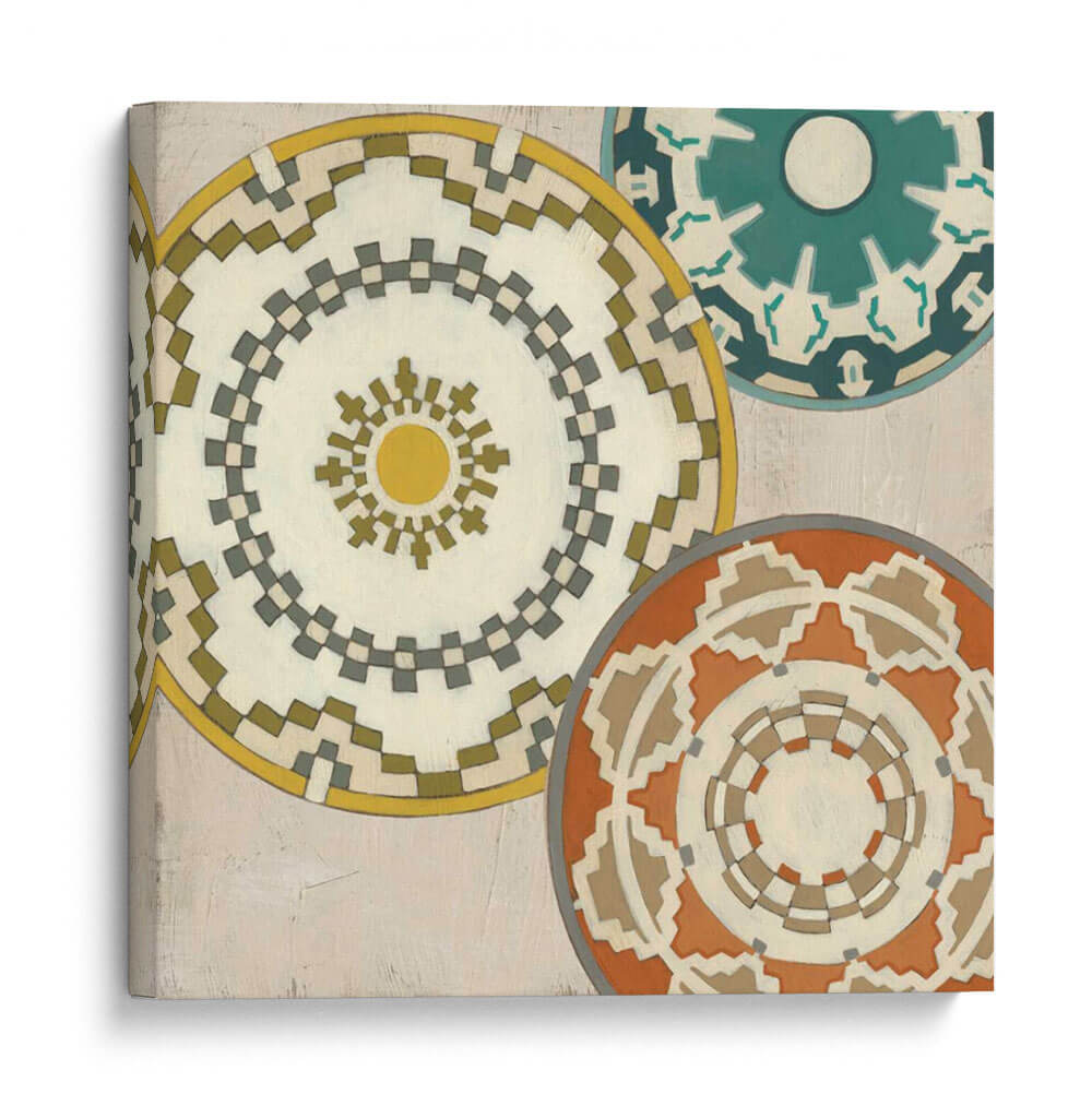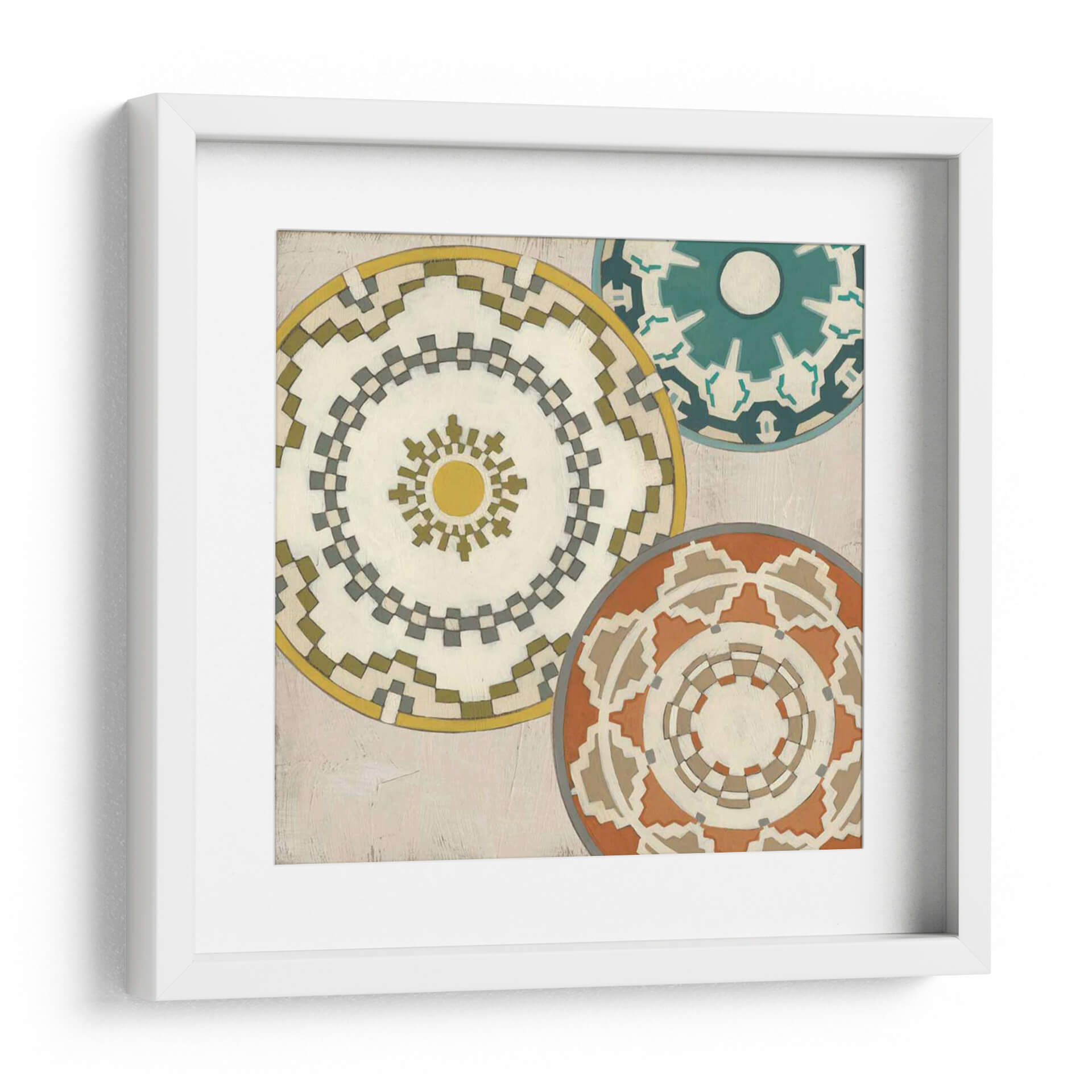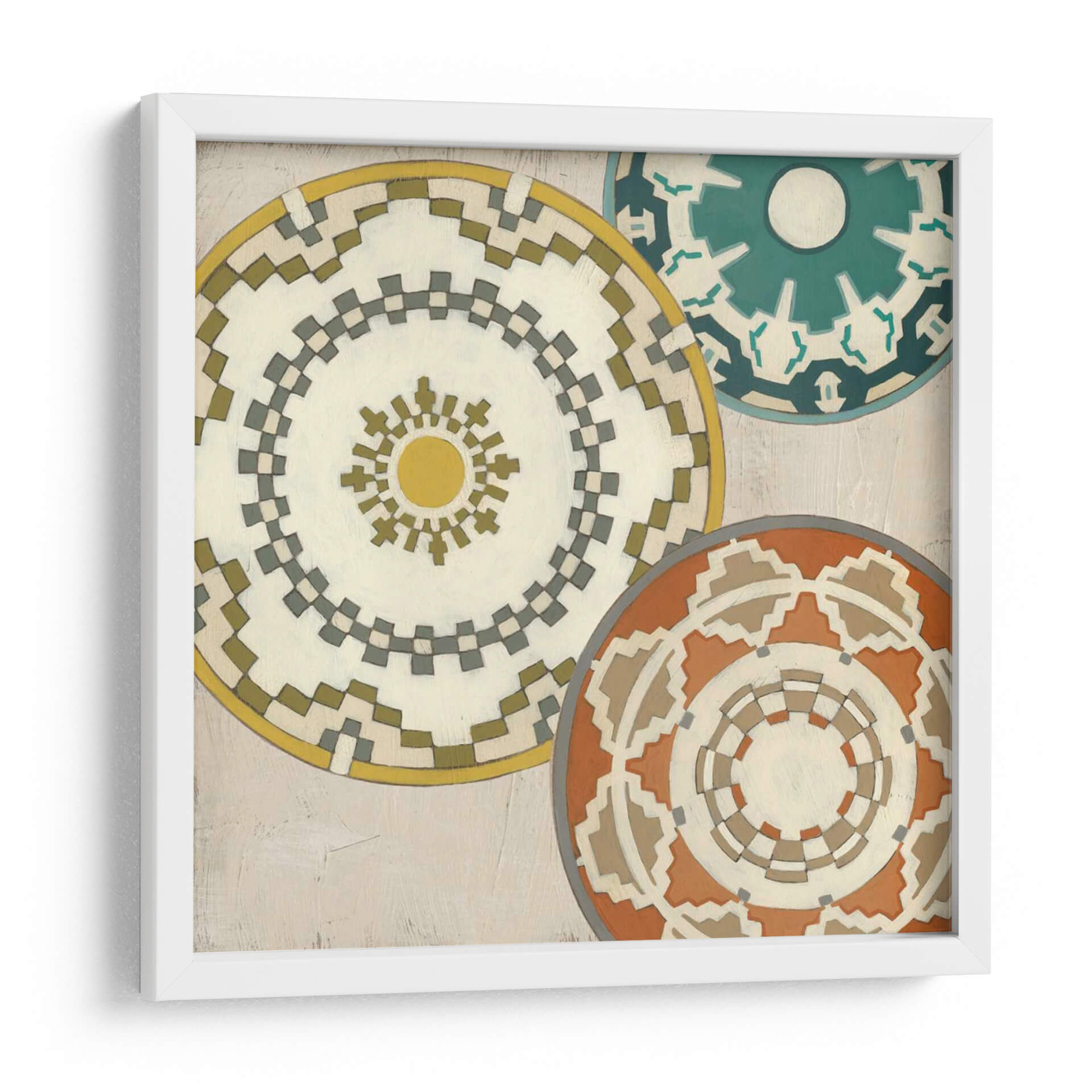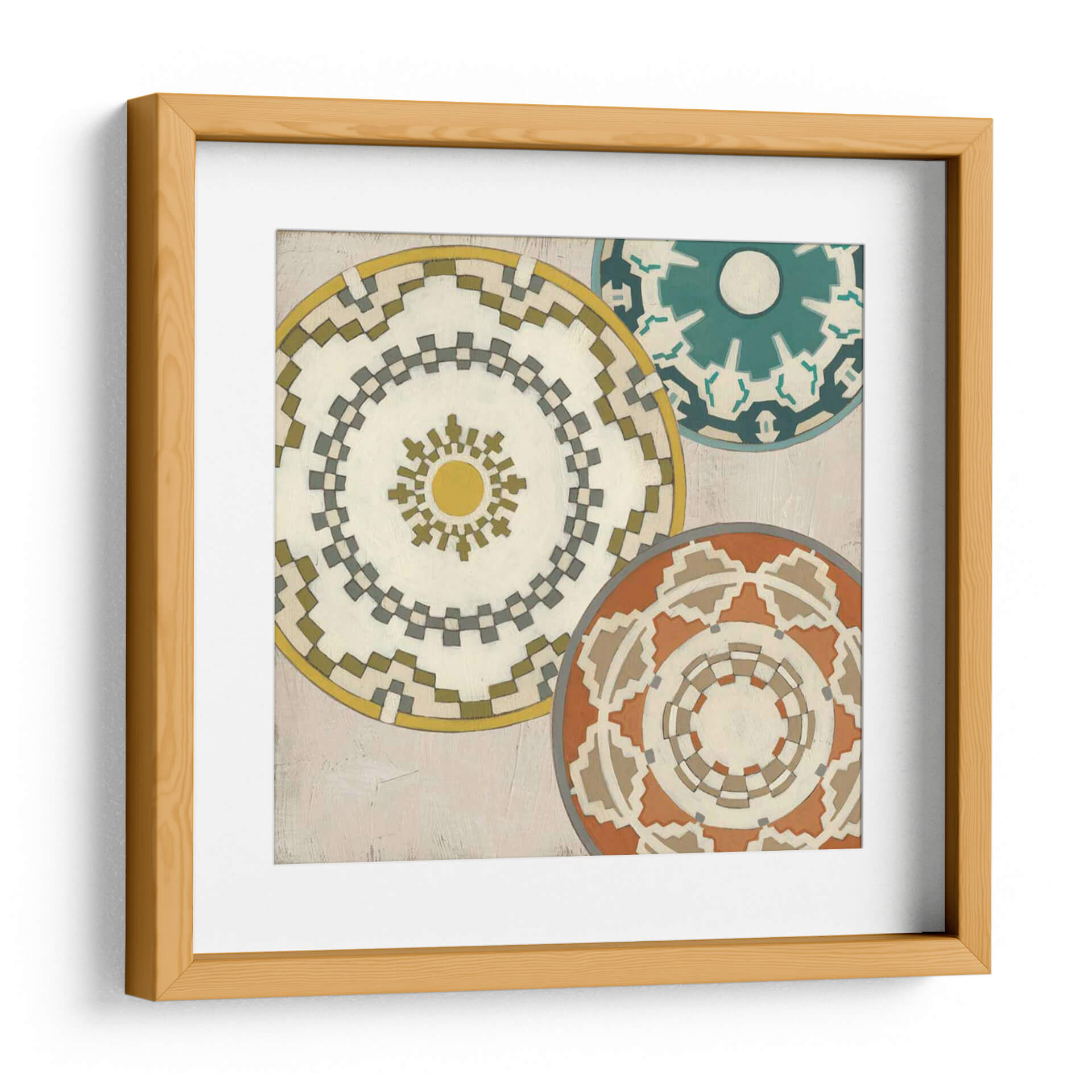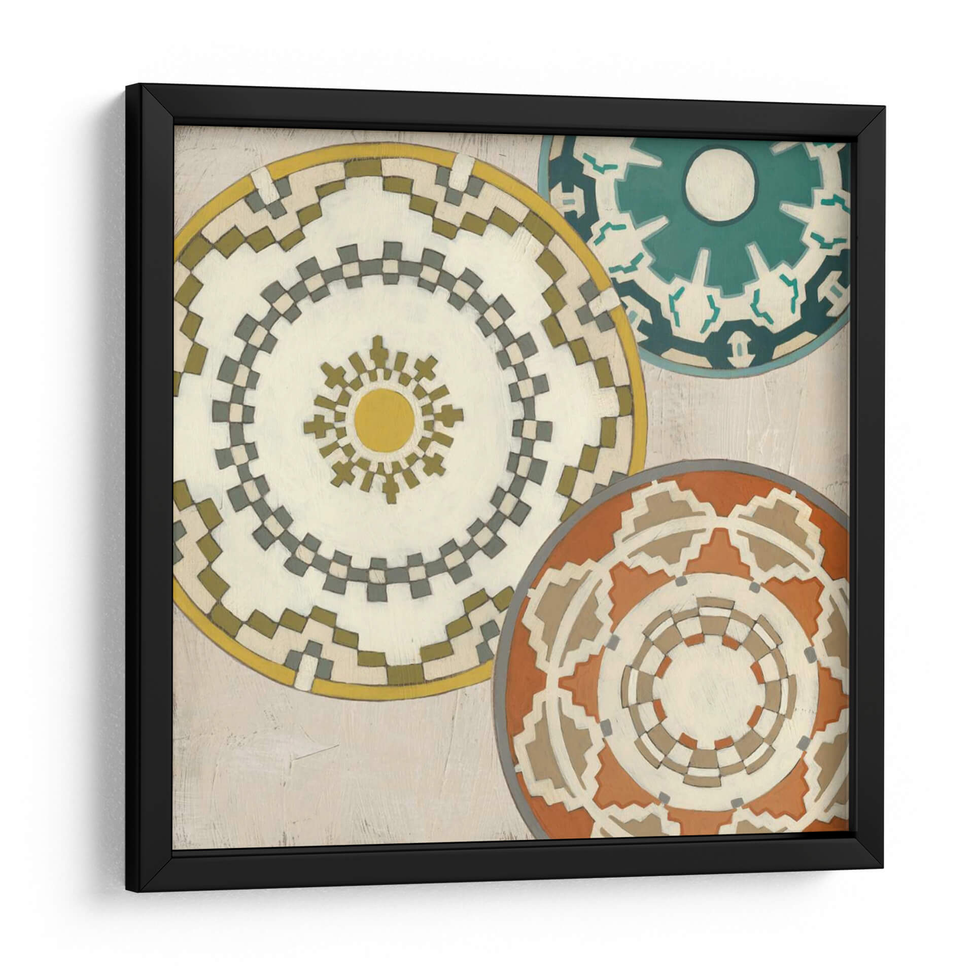Sumérgete en la calidez y el diseño intrincado de "Motivo De La Cesta Ii", una obra de arte que evoca tradición y estilo contemporáneo. Esta pieza presenta una composición cautivadora de tres motivos circulares superpuestos, reminiscentes de cestas tejidas o mandalas abstractos. La paleta de colores, dominada por tonos tierra como el ocre, terracota y beige, se complementa con acentos vibrantes de verde azulado y amarillo, creando un equilibrio visual armonioso y sofisticado. La textura sutil y el trazo delicado del artista, June Erica Vess, añaden profundidad y carácter, invitando a la contemplación. Ideal para quienes buscan infundir a su hogar u oficina un aire de serenidad, energía sutil y un toque bohemio-chic. "Motivo De La Cesta Ii" es perfecto para añadir un punto focal interesante a salones modernos, comedores acogedores o estudios creativos, transformando cualquier espacio en una galería personal. Una elección exquisita para los amantes del arte abstracto con influencias étnicas y un diseño atemporal que perdura.