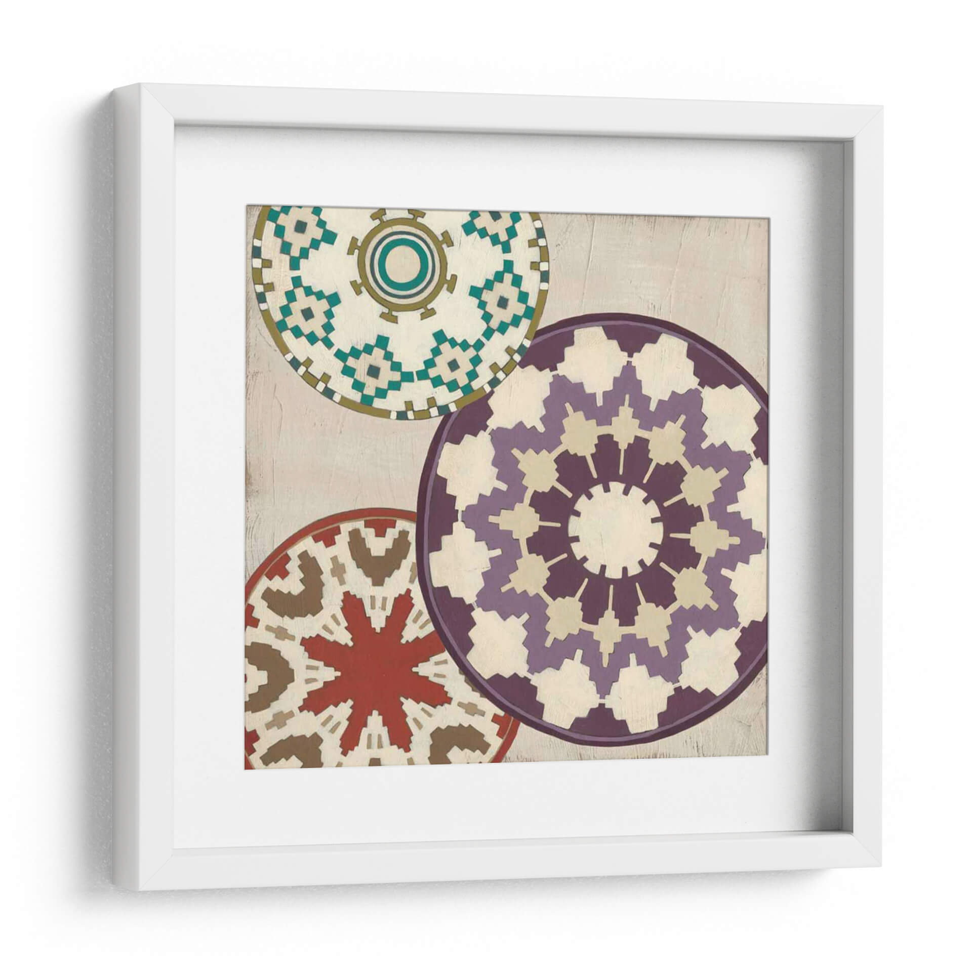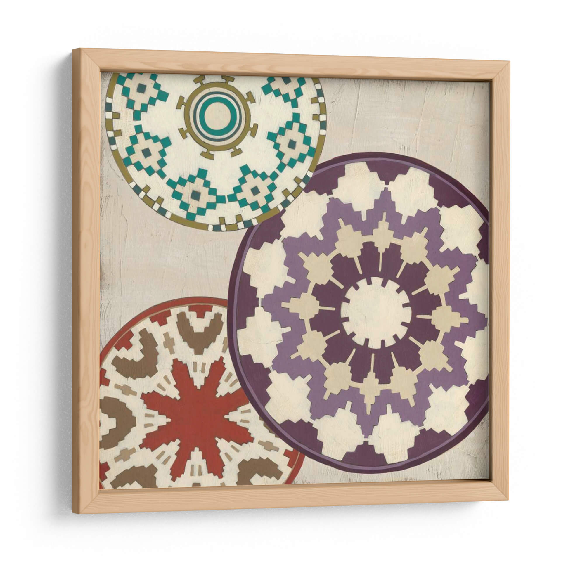 Transforma tu espacio con el cautivador cuadro decorativo "Motivo De La Cesta Iv" de June Erica Vess. Esta obra de arte contemporánea presenta un vibrante conjunto de mandalas superpuestos, cada uno con un diseño intrincado y patrones geométricos que evocan una sensación de orden y belleza armoniosa. La paleta de colores, que combina tonos tierra suaves con toques de púrpura, rojo óxido y verde azulado, crea una atmósfera acogedora y sofisticada. La composición circular de los motivos, contrastando con el fondo texturizado de tono neutro, aporta profundidad y un toque étnico chic a cualquier habitación. "Motivo De La Cesta Iv" es una pieza versátil, perfecta para añadir un elemento visualmente interesante a una sala de estar moderna, un estudio tranquilo o incluso un dormitorio sereno. Su diseño geométrico y los colores ricos invitan a la contemplación y añaden un carácter único a la decoración de tu hogar. Descubre la magia de las formas y los colores con este exquisito cuadro decorativo que fusiona arte contemporáneo y estilo bohemio.