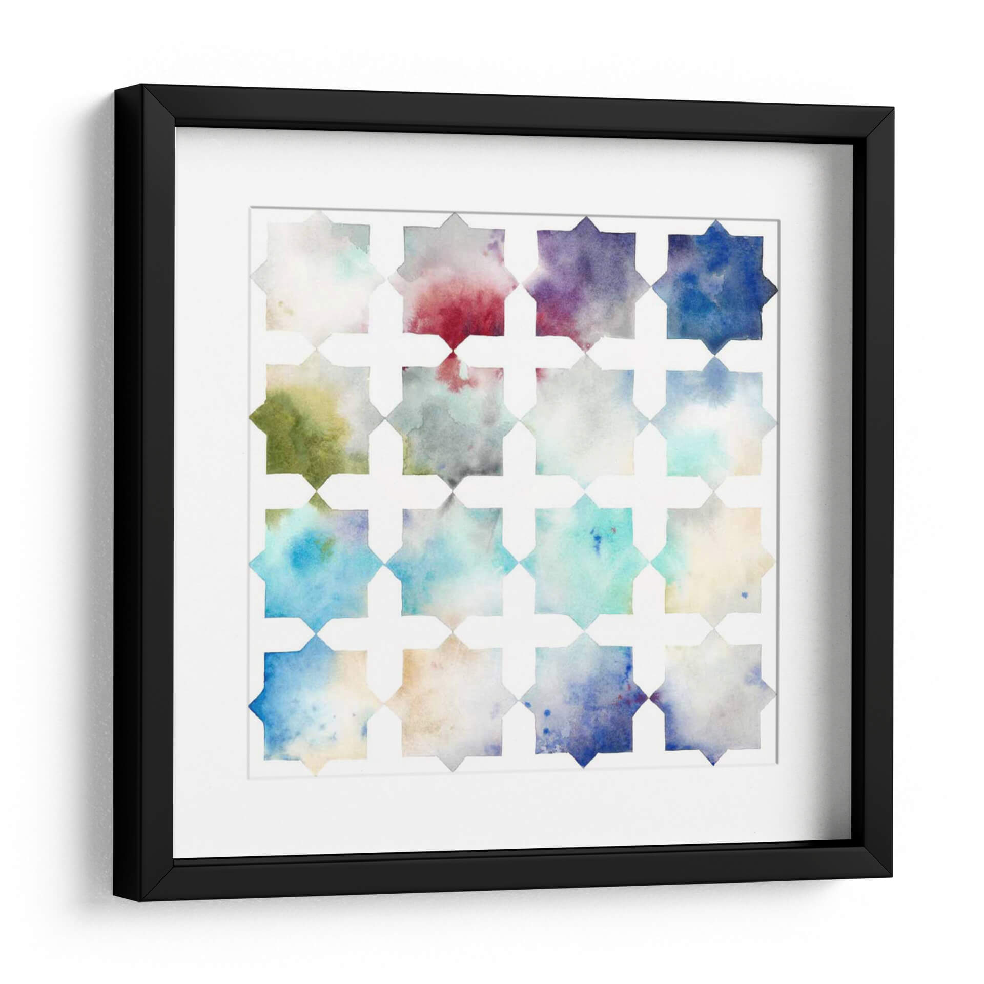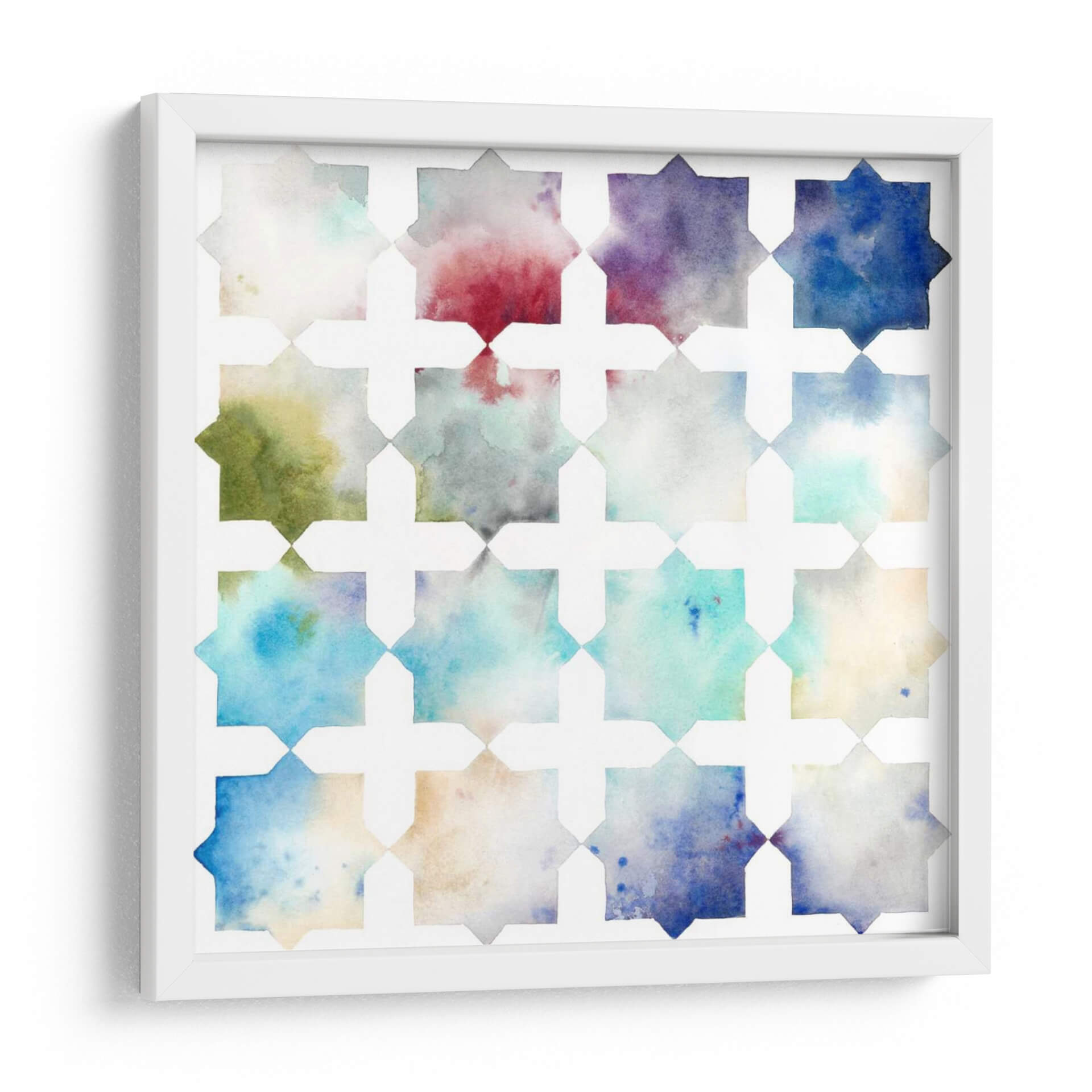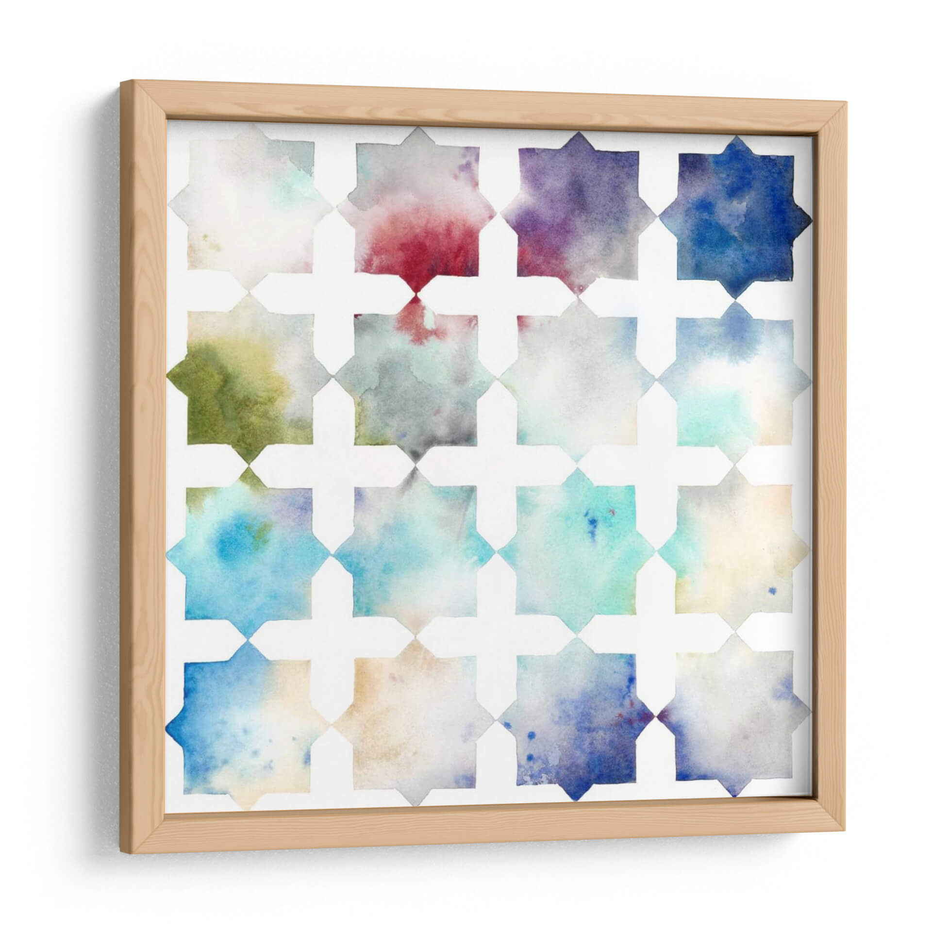Descubre "Patrón Borroso I", una cautivadora obra de arte de Megan Meagher que fusiona la delicadeza de la acuarela con una geometría moderna. Esta pieza presenta un intrincado patrón de estrellas superpuestas, donde cada forma se disuelve en explosiones de color etéreas y soñadoras. Los tonos van desde azules profundos y aguamarinas vibrantes hasta toques de rojo y verde musgo, creando una paleta de colores rica y armoniosa que evoca una sensación de calma y sofisticación. El estilo, que combina elementos abstractos con una estructura definida, lo convierte en un acento visual perfecto para cualquier espacio. Ideal para salones modernos, oficinas tranquilas o dormitorios que buscan un toque de serenidad y originalidad. La técnica de acuarela aporta una ligereza y fluidez únicas, haciendo que cada "cuadro decorativo" sea una ventana a un mundo de imaginación y paz. Transforma tu hogar con esta pieza única que invita a la contemplación y añade un carácter distintivo a tu decoración.