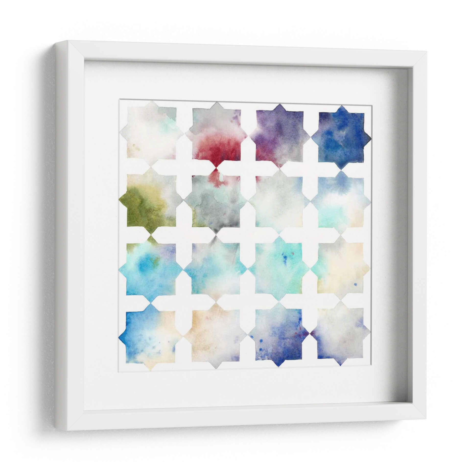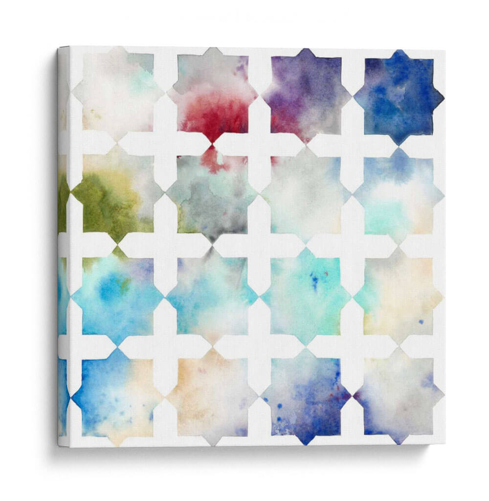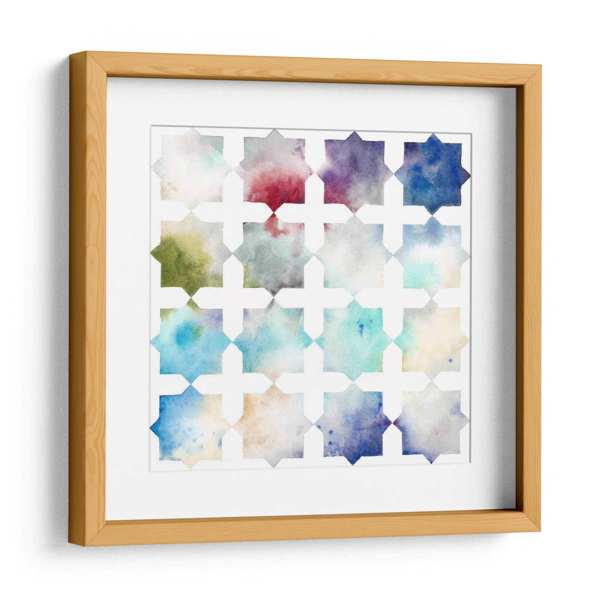 Descubre "Patrón Borroso I", una cautivadora obra de arte de Megan Meagher que fusiona la delicadeza de la acuarela con una geometría moderna. Esta pieza presenta un intrincado patrón de estrellas superpuestas, donde cada forma se disuelve en explosiones de color etéreas y soñadoras. Los tonos van desde azules profundos y aguamarinas vibrantes hasta toques de rojo y verde musgo, creando una paleta de colores rica y armoniosa que evoca una sensación de calma y sofisticación. El estilo, que combina elementos abstractos con una estructura definida, lo convierte en un acento visual perfecto para cualquier espacio. Ideal para salones modernos, oficinas tranquilas o dormitorios que buscan un toque de serenidad y originalidad. La técnica de acuarela aporta una ligereza y fluidez únicas, haciendo que cada "cuadro decorativo" sea una ventana a un mundo de imaginación y paz. Transforma tu hogar con esta pieza única que invita a la contemplación y añade un carácter distintivo a tu decoración.