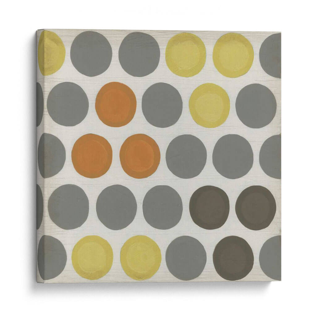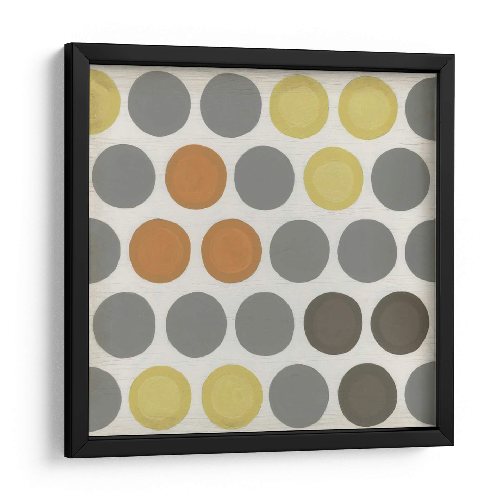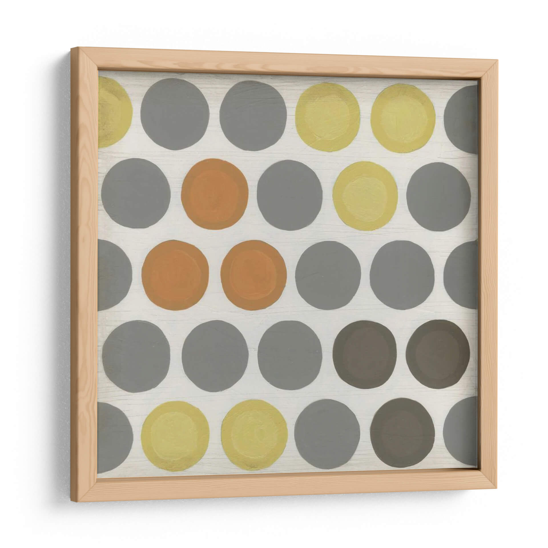 Sumérgete en la vibrante y juguetona composición de "Luces de Marquesina I", una obra de arte contemporáneo de June Erica Vess que transforma lo simple en extraordinario. Este cuadro decorativo presenta un patrón rítmico de círculos en una paleta de colores cuidadosamente seleccionada, que incluye tonos cálidos de naranja, alegres amarillos y serenos grises, todos sobre un fondo sutilmente texturizado que evoca la madera. La disposición de los círculos en filas y columnas crea una sensación de orden y modernidad, mientras que las variaciones en el tono y la aplicación de la pintura añaden una profundidad intrigante. Esta pieza abstracta es perfecta para inyectar personalidad y un toque de color controlado a cualquier espacio, desde una sala de estar contemporánea hasta una oficina moderna o un dormitorio acogedor. "Luces de Marquesina I" no es solo una decoración de pared, es una invitación a la contemplación visual, un punto focal que dialoga con el entorno y aporta una atmósfera de energía positiva y sofisticación discreta. Su diseño geométrico y su armonía cromática la convierten en una elección ideal para quienes buscan arte moderno que sea a la vez audaz y equilibrado, añadiendo un elemento de diseño único a su hogar u oficina.