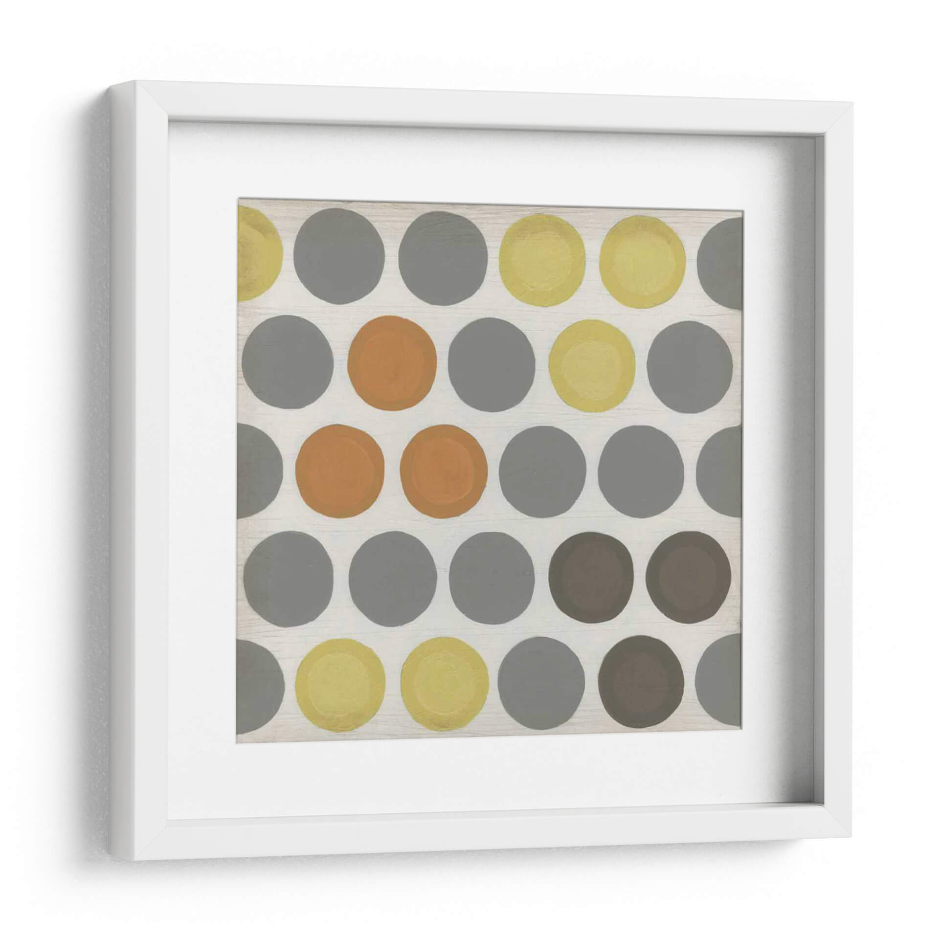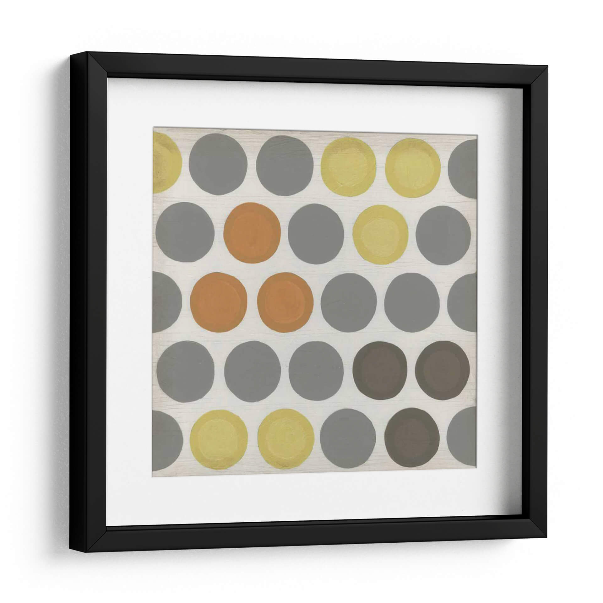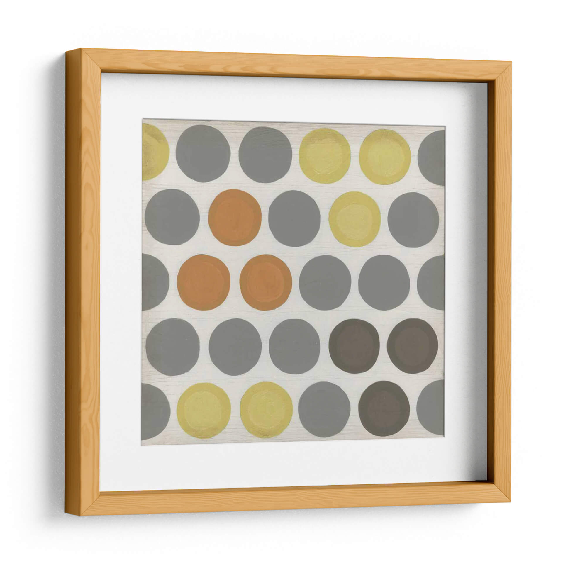 Sumérgete en la vibrante y juguetona composición de "Luces de Marquesina I", una obra de arte contemporáneo de June Erica Vess que transforma lo simple en extraordinario. Este cuadro decorativo presenta un patrón rítmico de círculos en una paleta de colores cuidadosamente seleccionada, que incluye tonos cálidos de naranja, alegres amarillos y serenos grises, todos sobre un fondo sutilmente texturizado que evoca la madera. La disposición de los círculos en filas y columnas crea una sensación de orden y modernidad, mientras que las variaciones en el tono y la aplicación de la pintura añaden una profundidad intrigante. Esta pieza abstracta es perfecta para inyectar personalidad y un toque de color controlado a cualquier espacio, desde una sala de estar contemporánea hasta una oficina moderna o un dormitorio acogedor. "Luces de Marquesina I" no es solo una decoración de pared, es una invitación a la contemplación visual, un punto focal que dialoga con el entorno y aporta una atmósfera de energía positiva y sofisticación discreta. Su diseño geométrico y su armonía cromática la convierten en una elección ideal para quienes buscan arte moderno que sea a la vez audaz y equilibrado, añadiendo un elemento de diseño único a su hogar u oficina.