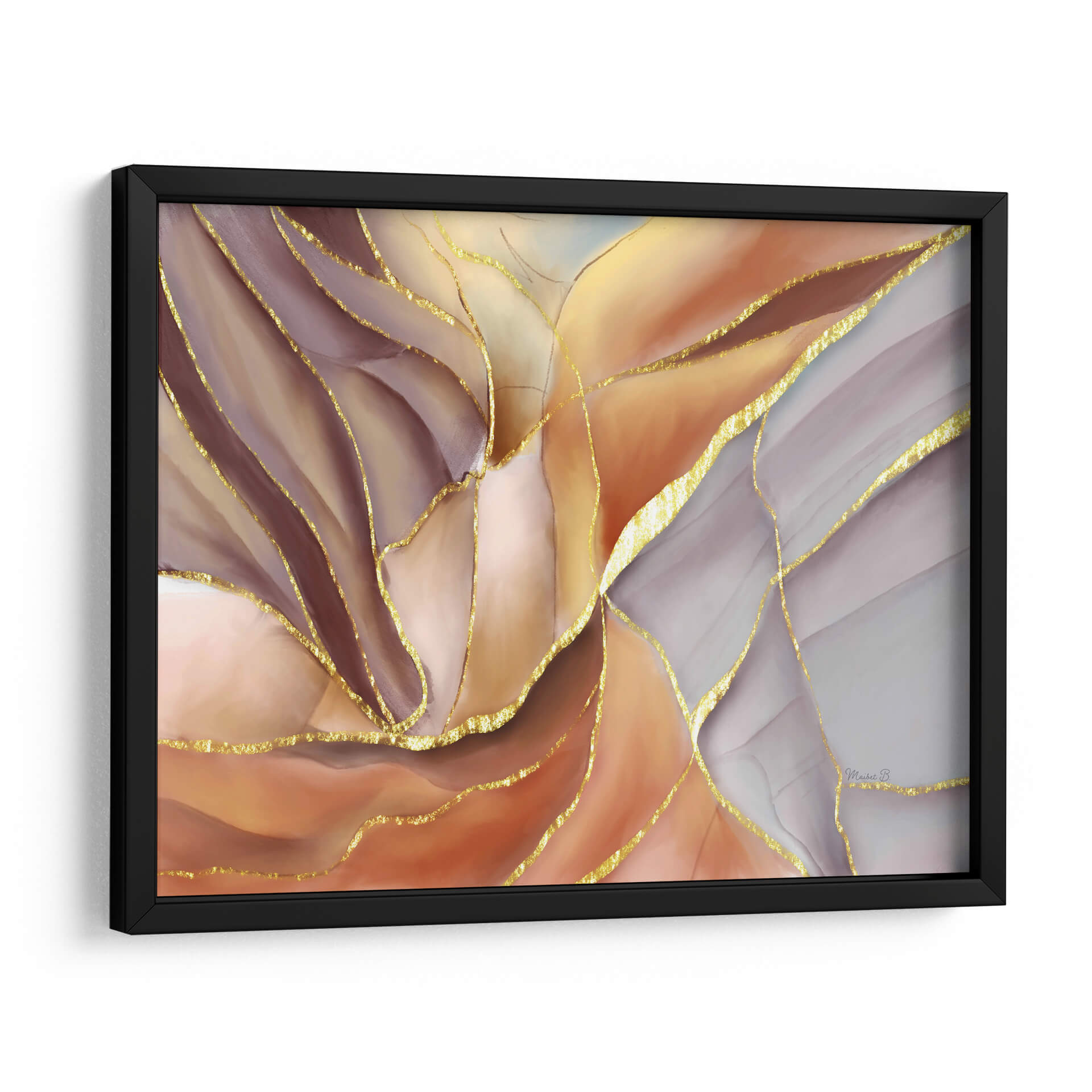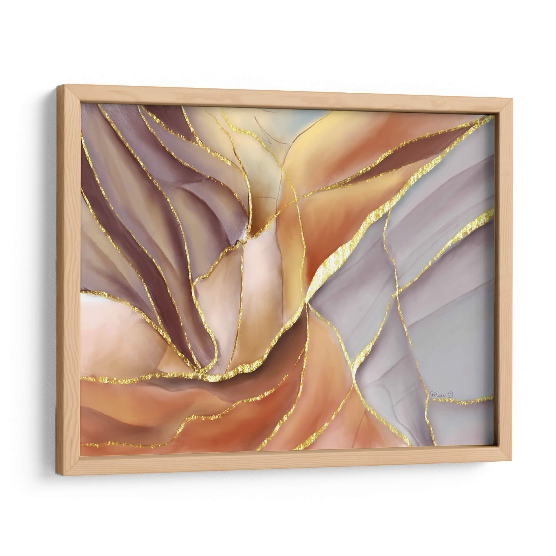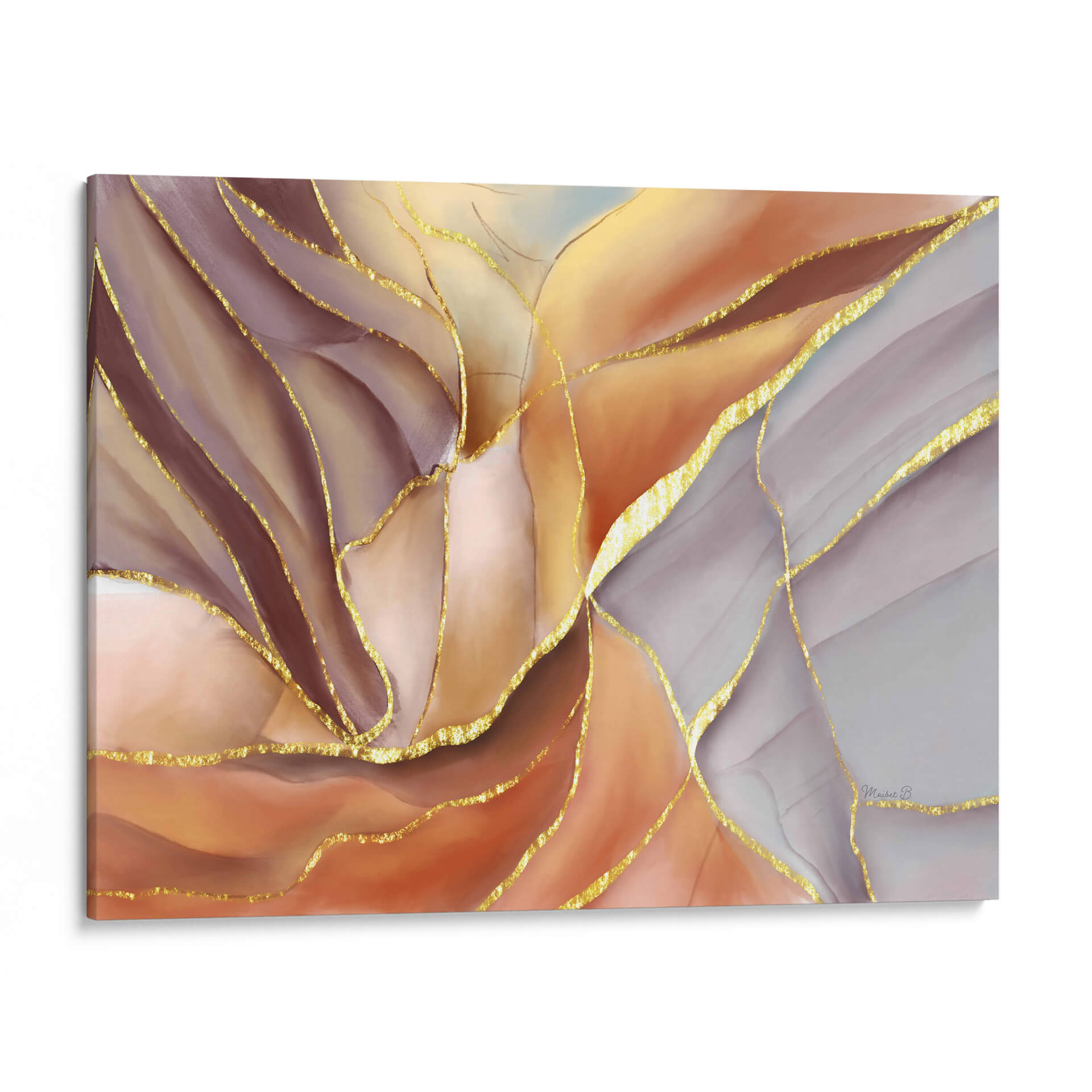 Sumérgete en la serenidad y la sofisticación con "Montaña Desértica Abstracta", una obra de arte contemporáneo que evoca la majestuosidad de los paisajes áridos transformados por la mano del artista Maibet Boenka. Las suaves curvas y las formas orgánicas se entrelazan, creando una sensación de movimiento y profundidad que invita a la contemplación. La paleta de colores, dominada por tonos tierra cálidos como terracota, ocre y beige suave, se ve realzada por sutiles toques de gris y un delicado cielo azul pálido, creando un equilibrio visual armonioso. El toque distintivo de líneas doradas brillantes que serpentean a través de la composición añade un elemento de lujo y modernidad, capturando la luz y añadiendo una dimensión de riqueza a la pieza. Este cuadro decorativo abstracto es perfecto para infundir calma y elegancia en cualquier espacio, ya sea en tu sala de estar, dormitorio u oficina. Su diseño abstracto lo convierte en un punto focal versátil que complementa una amplia gama de estilos decorativos, desde el moderno hasta el bohemio o el minimalista. Transforma tu hogar en un oasis de tranquilidad y estilo con esta pieza única.