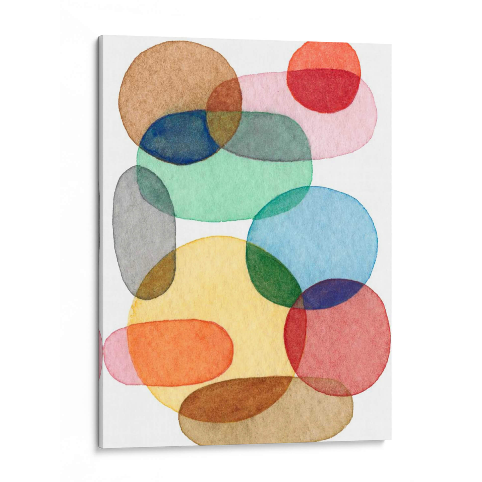 Sumérgete en un mundo de formas y colores vibrantes con "Orbs Entintados II" de Nikki Galapon, una obra de arte contemporáneo que evoca una sensación de alegría lúdica y serenidad. Esta pieza abstracta presenta una superposición de círculos y óvalos en acuarela, creando una composición dinámica que juega con la transparencia y la profundidad. Los tonos terrosos se entrelazan con toques audaces de azul, verde, rojo y amarillo, generando un equilibrio visual armonioso que atrae la mirada y estimula la imaginación. Ideal para espacios que buscan un acento de color y una atmósfera acogedora, este cuadro decorativo es perfecto para salones modernos, oficinas creativas o dormitorios que anhelan un toque de sofisticación contemporánea. La técnica de acuarela aporta una suavidad etérea, invitando a la contemplación y al disfrute estético. Añade una pieza única a tu colección que inspire conversaciones y refleje tu gusto por el arte abstracto y moderno, transformando cualquier pared en una declaración de estilo.