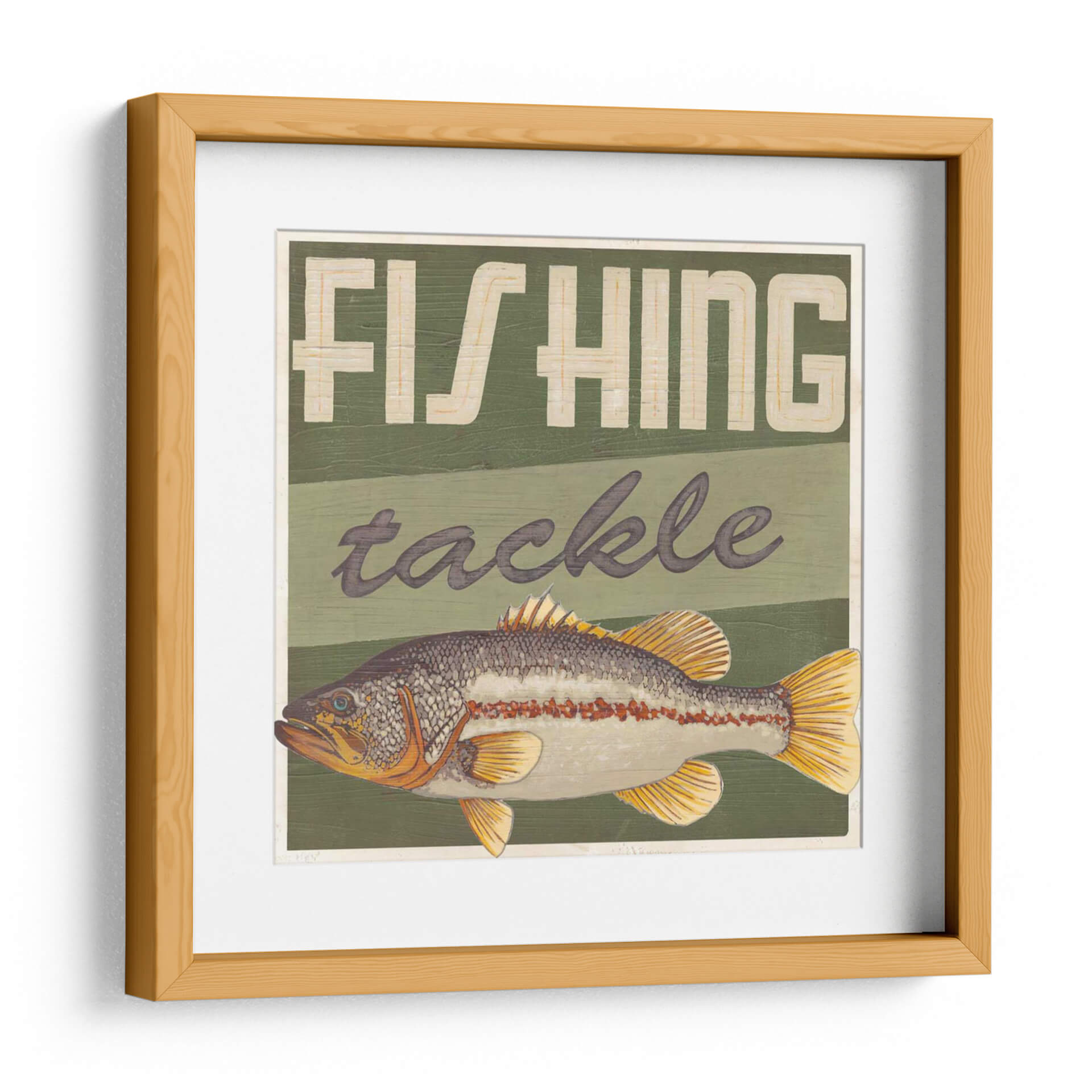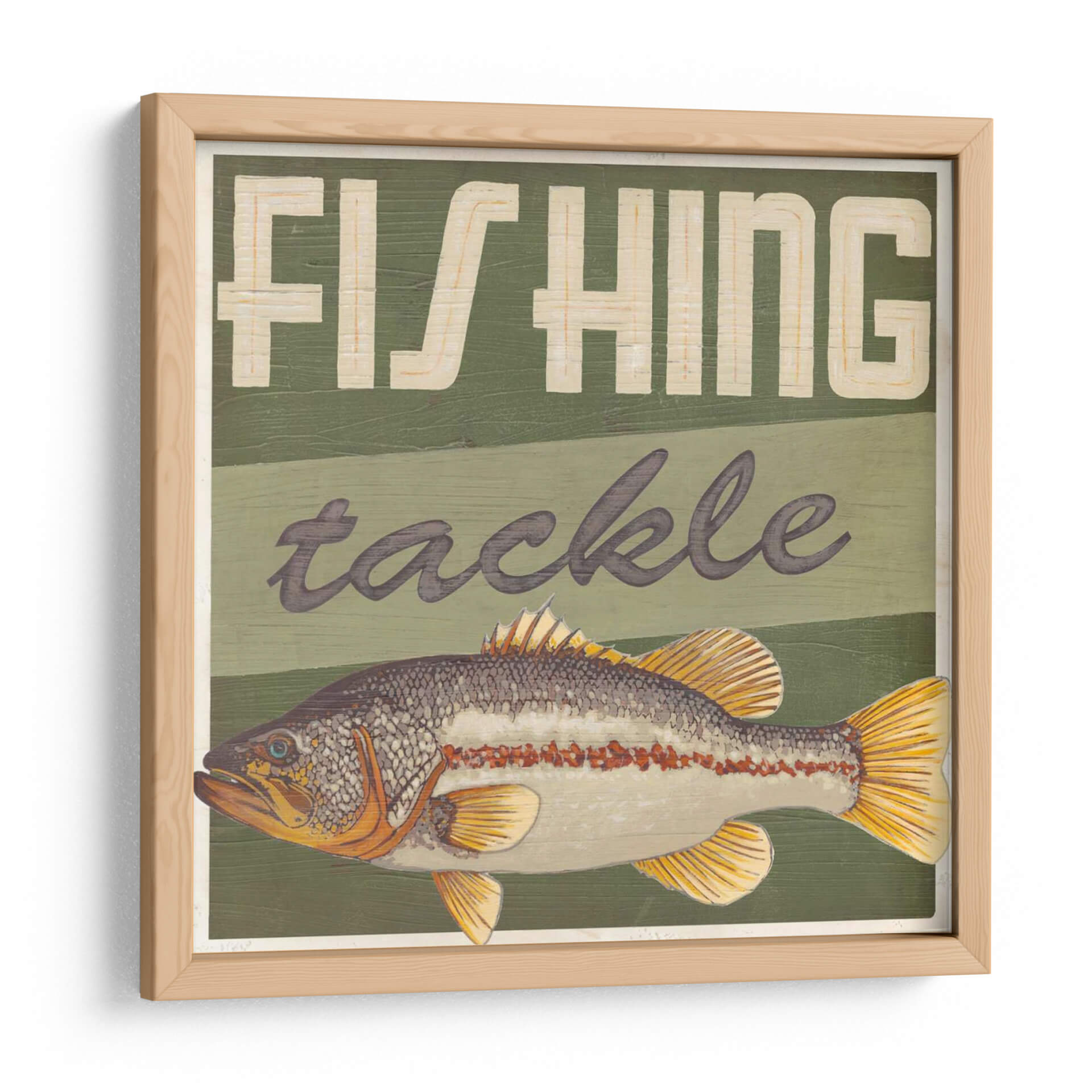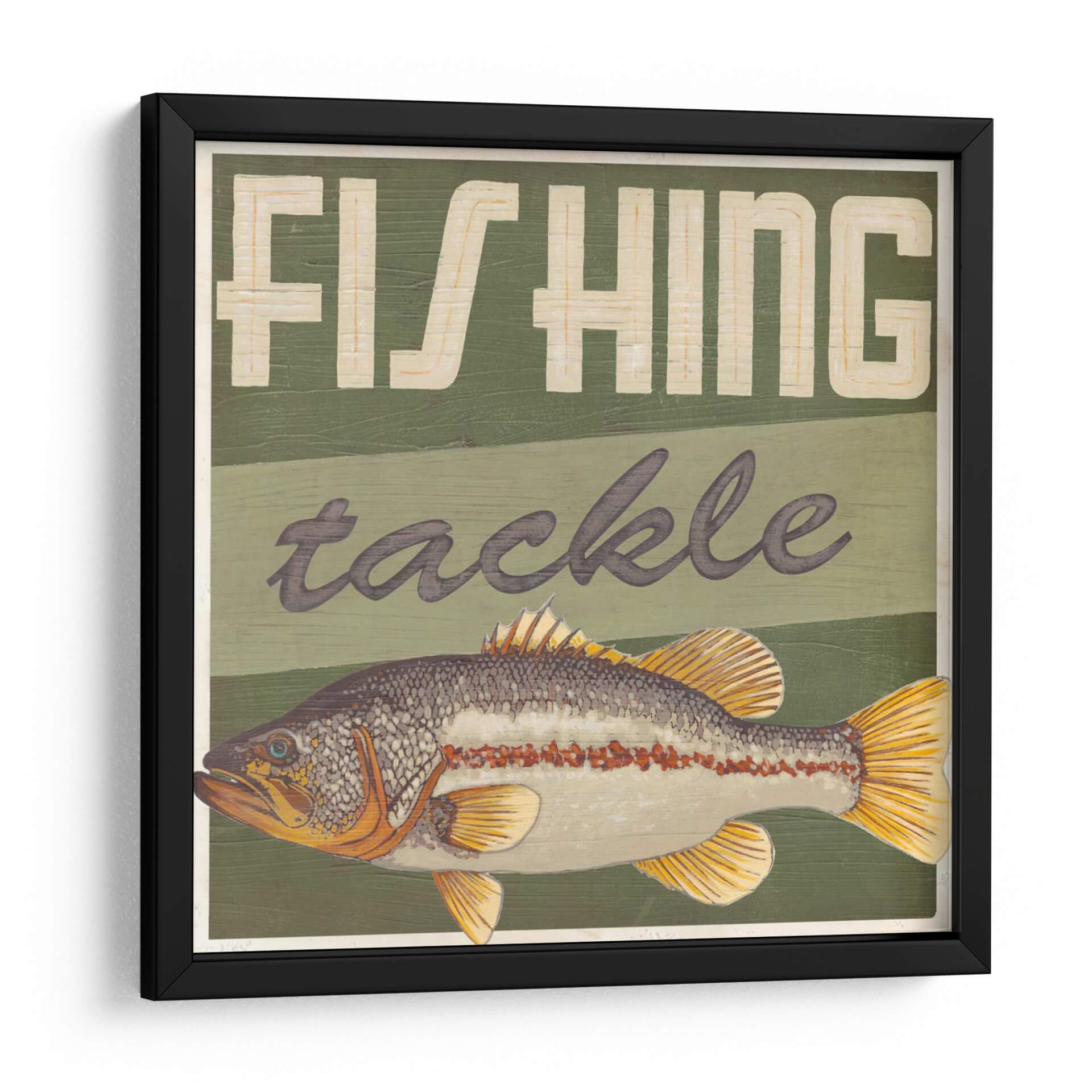 Embellece tu espacio con "Cabina Life III", una obra de arte cautivadora del artista June Erica Vess. Este cuadro decorativo captura la esencia de la pesca con un detallado bajo de línea como protagonista, rodeado de un diseño rústico que evoca la nostalgia de los días de campo. La paleta de colores, dominada por verdes profundos y acentos dorados y anaranjados en el pez, crea una atmósfera de tranquilidad y conexión con la naturaleza. Las letras estilizadas que dicen "FISHING tackle" añaden un toque vintage y temático, ideal para los amantes de la pesca y aquellos que buscan una decoración con carácter. La composición, con el pez en primer plano y las bandas de color de fondo, aporta profundidad y un atractivo visual dinámico. Este cuadro decorativo es perfecto para dar vida a salas de estar, estudios, cabañas o cualquier rincón que necesite un toque de aventura y serenidad. Su estilo rústico y temático lo convierte en una pieza única para salones de estilo campestre, rústico o incluso moderno, añadiendo un punto focal intrigante y lleno de personalidad. Descubre la belleza de la naturaleza y la emoción de la pesca a través de esta pieza excepcional que seguro inspirará conversaciones y admiración.