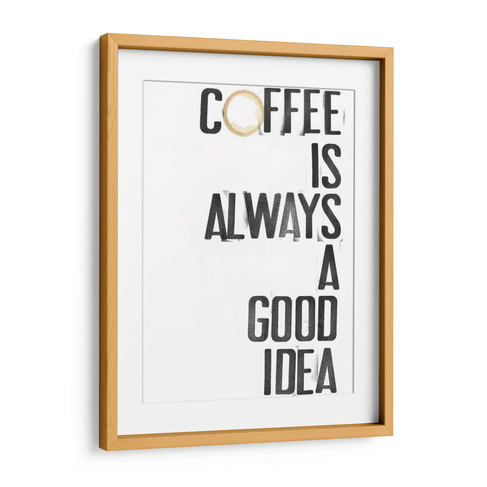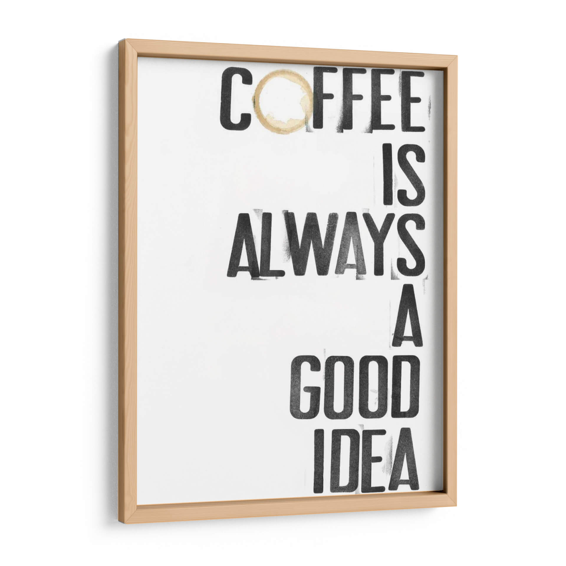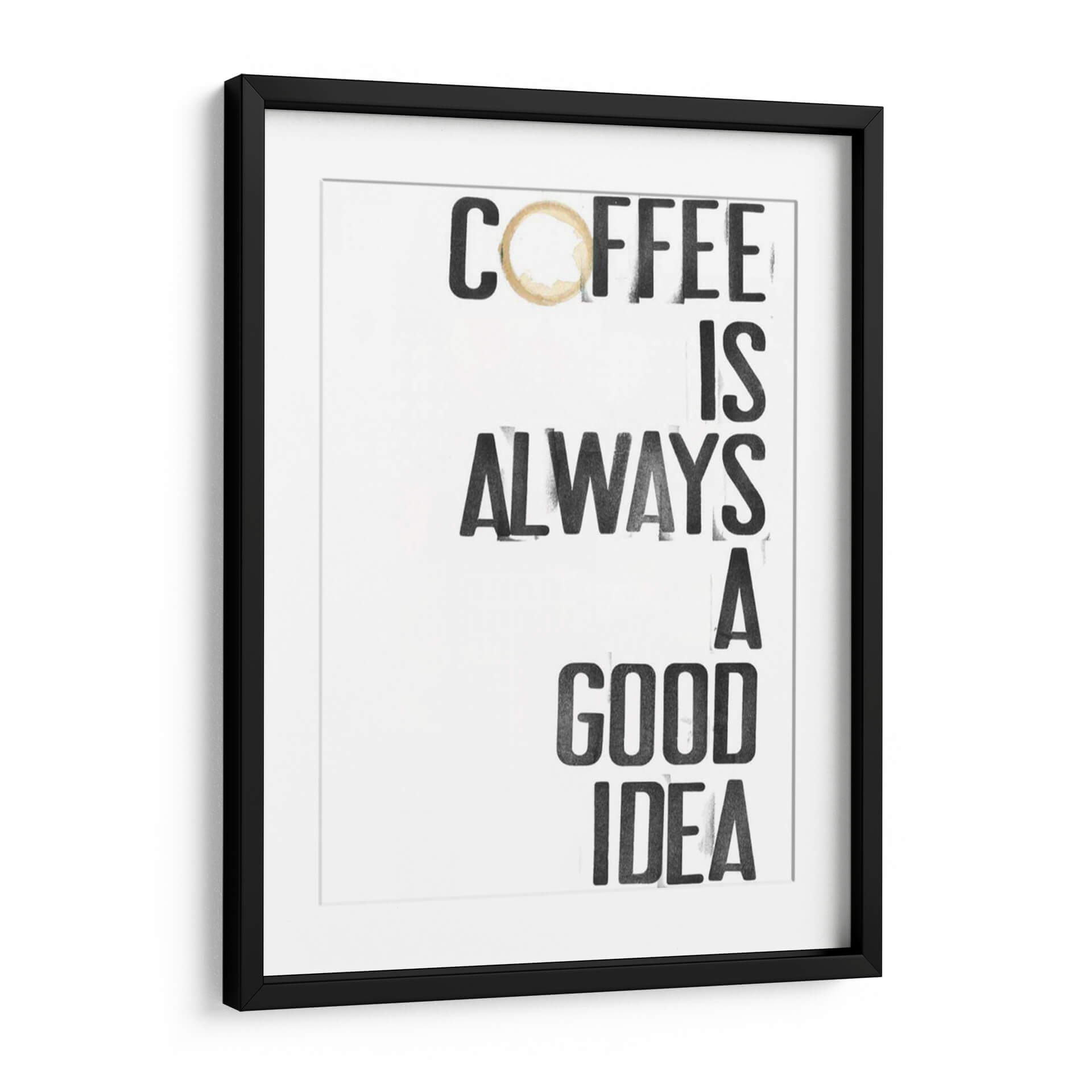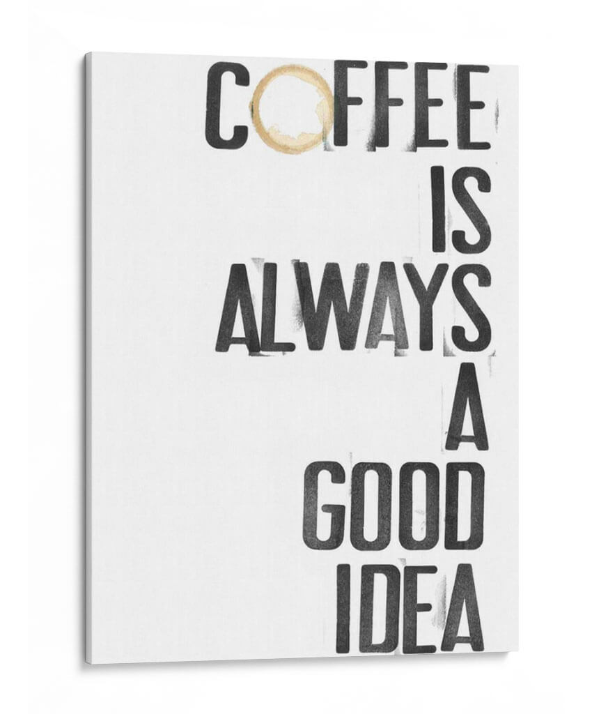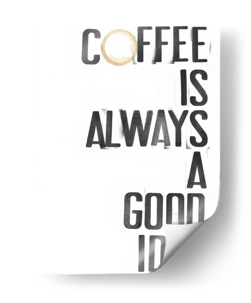 Inyecta una dosis de optimismo y calidez a tu espacio con "Hospitality III", una obra de arte decorativo de Deborah Velasquez. Este cuadro presenta un mensaje inspirador y audaz: "Coffee is always a good idea", presentado con una tipografía robusta y moderna que evoca la energía y el carácter distintivo de una taza de café recién hecha. La imperfección sutil de un anillo de café sobre la palabra "Coffee" añade un toque de autenticidad y realismo, invitando a la reflexión sobre los pequeños placeres de la vida. La paleta de colores, predominantemente en blanco y negro con un acento cálido en el anillo de café, crea un contraste visual impactante y versátil, fácil de integrar en cualquier esquema decorativo, desde el minimalista hasta el más ecléctico. Ideal para cocinas, cafeterías, comedores o cualquier rincón donde busques una chispa de inspiración matutina o un recordatorio acogedor. "Hospitality III" no es solo un cuadro, es una declaración de intenciones, un punto focal que aporta personalidad y estilo a tu hogar u oficina. Transforma tu ambiente con este diseño gráfico contemporáneo que celebra la universalidad de una buena taza de café, convirtiendo lo cotidiano en arte.