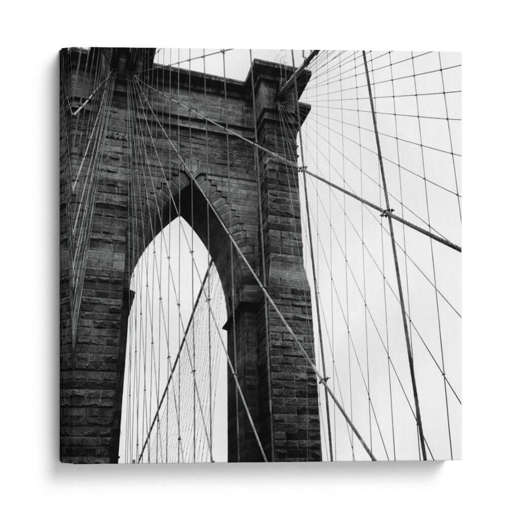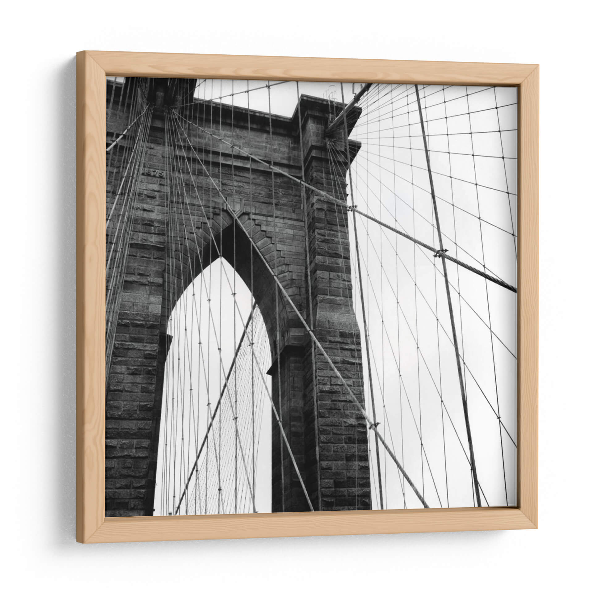Captura la majestuosidad arquitectónica de Nueva York con este impresionante cuadro decorativo del Puente de Brooklyn. La obra "Brooklyn Bridge II" de Laura DeNardo te transporta al corazón de la ciudad con su enfoque dramático en las imponentes torres de piedra y la intrincada red de cables que definen este icónico hito. Presentada en un elegante blanco y negro, la fotografía resalta las texturas rugosas de la piedra y la delicadeza de las líneas metálicas, creando un contraste visual cautivador. La composición, que se inclina hacia arriba, enfatiza la grandeza y la ingeniería audaz del puente, evocando una sensación de admiración y solidez. Este cuadro decorativo es perfecto para añadir un toque de sofisticación urbana y un punto focal arquitectónico a cualquier espacio, ya sea una sala de estar moderna, un despacho profesional o un pasillo. Su estética atemporal en blanco y negro asegura que se integre a la perfección con diversas paletas de colores y estilos de decoración, desde lo industrial hasta lo contemporáneo. Deja que la historia y la fuerza del Puente de Brooklyn inspiren tu hogar u oficina con esta pieza única de arte de pared.