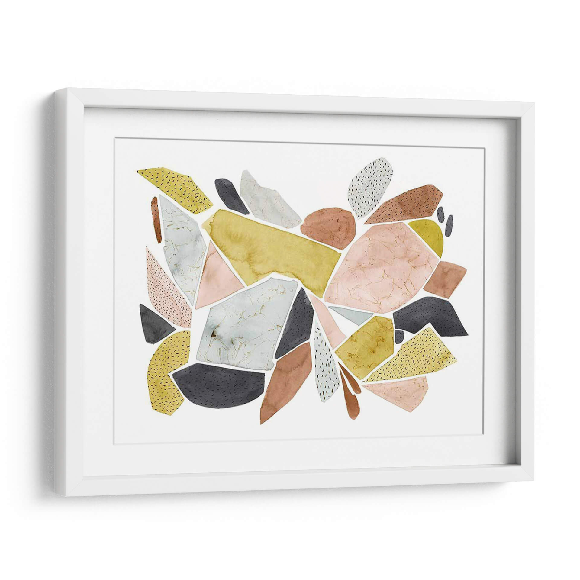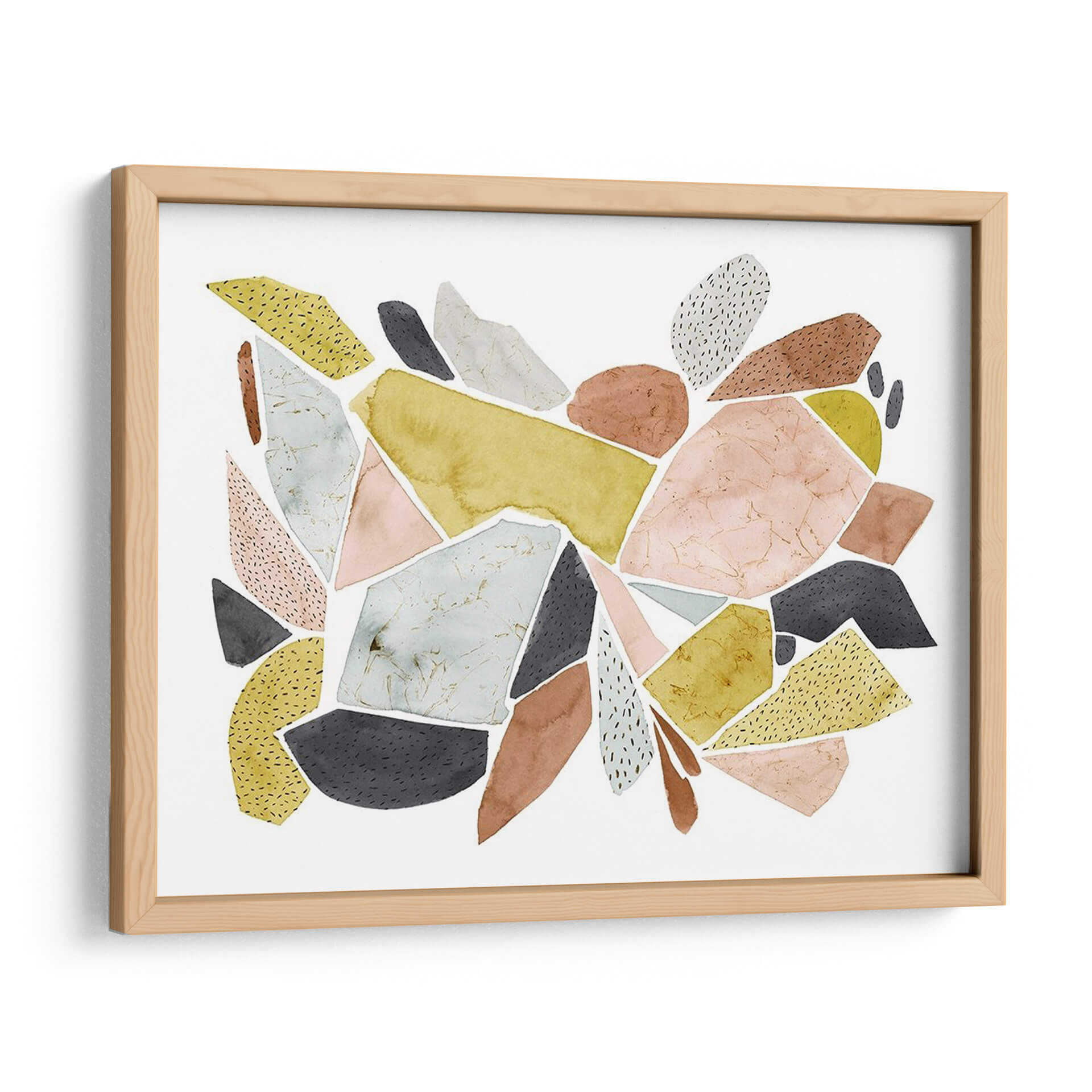 Embellece tu espacio con el cuadro decorativo "Toscano Terazzo II", una obra abstracta y contemporánea de la artista Grace Popp. Esta pieza cautiva con su composición dinámica de formas geométricas irregulares, reminiscentes de un mosaico moderno o de teselas artesanales. La paleta de colores, dominada por tonos tierra suaves como terracota, ocre y rosa pálido, se complementa con toques de gris piedra y un vibrante amarillo mostaza, creando una atmósfera cálida, serena y orgánicamente equilibrada. Las texturas sutiles y los patrones de puntos dispersos añaden profundidad y un encanto artesanal que invita a la contemplación. Ideal para infundir carácter y sofisticación en salones, comedores u oficinas, este cuadro decorativo es perfecto para quienes buscan una pieza de arte versátil que combine la abstracción moderna con la calidez terrenal. Su diseño abstracto permite una integración fluida en diversos estilos decorativos, desde el escandinavo y el bohemio hasta el minimalista y el contemporáneo, aportando un toque de originalidad y serenidad. Descubre la belleza de la abstracción geométrica y transforma tu hogar en una galería personal con esta impresionante obra de Grace Popp, un acierto seguro para añadir estilo y personalidad a cualquier rincón.
