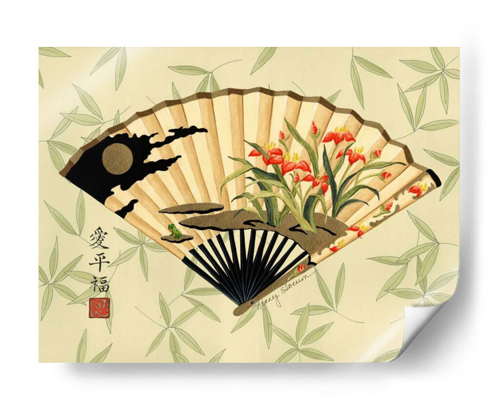 Sumérgete en la serenidad y la elegancia oriental con este cautivador cuadro decorativo "Arte Del Geisha II" de Nancy Slocum. La obra presenta un abanico japonés desplegado, meticulosamente ilustrado con delicados detalles que evocan la tradición y la belleza. Los tonos cálidos del abanico, que van desde el beige hasta el marrón claro, se contrastan armoniosamente con vibrantes toques de color rojo intenso de las flores y el verde suave del follaje de bambú que sirve de fondo. Un pequeño sapo y siluetas oscuras añaden un toque de misterio y profundidad a la composición. Este cuadro es una pieza de arte contemporáneo que captura la esencia de la cultura japonesa con un estilo refinado y evocador. Ideal para quienes buscan infundir calma y un aire de sofisticación en su hogar u oficina, este cuadro decorativo es perfecto para salones, dormitorios o espacios de meditación. Su composición equilibrada y su paleta de colores suave pero impactante lo convierten en un punto focal que invita a la contemplación y al aprecio por la belleza sutil. Añade un toque de arte oriental y serenidad a tu decoración.