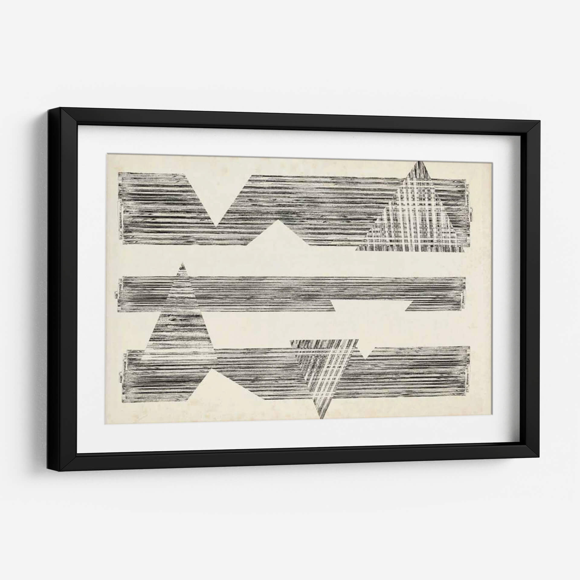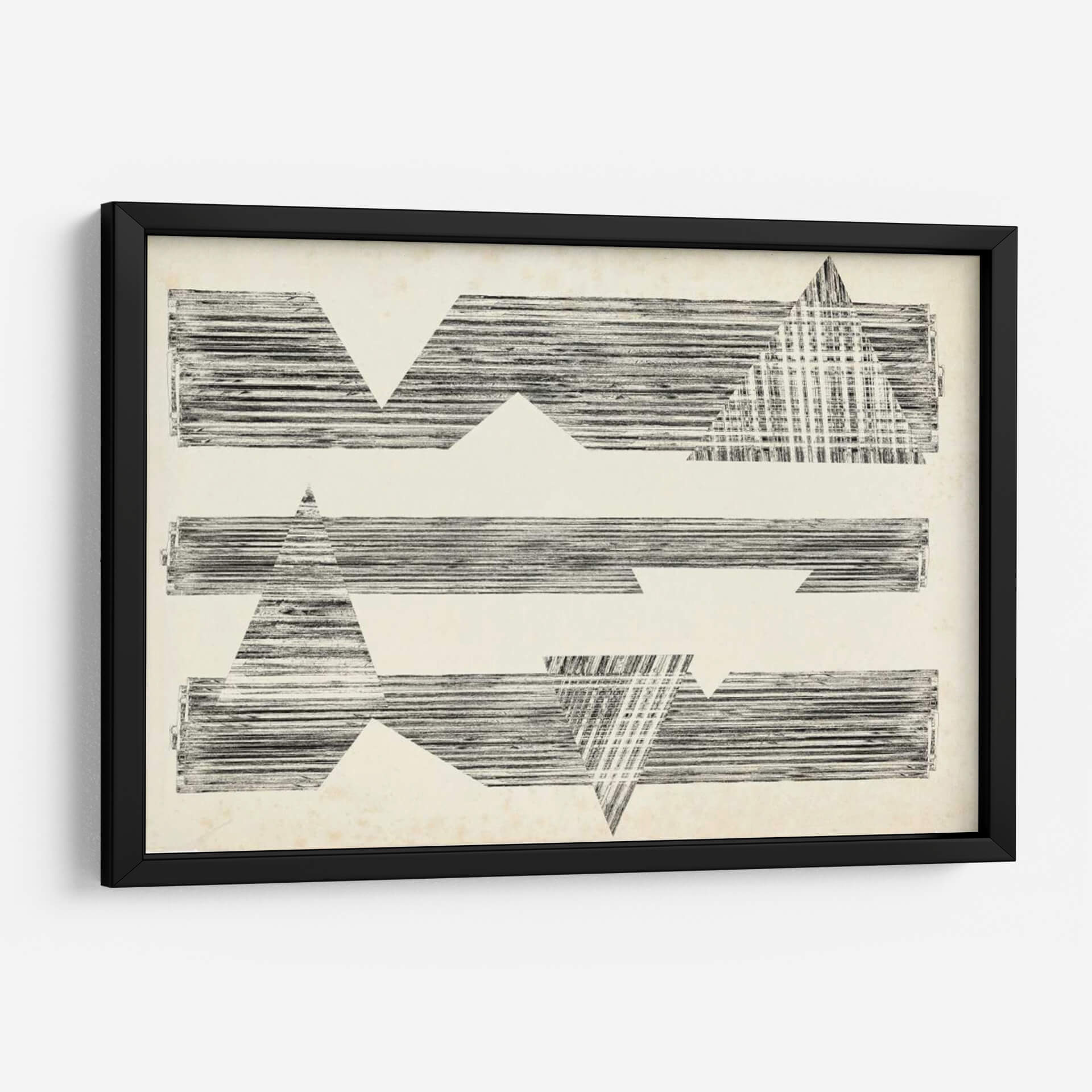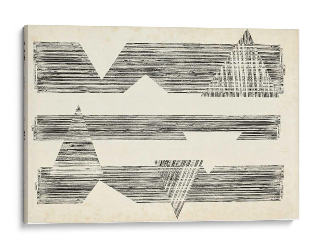 Sumérgete en la enigmática belleza de "Asombra Triángulos I" de Jennifer Goldberger, una obra de arte abstracto que redefine la elegancia moderna. Esta pieza cautivadora presenta una composición audaz de formas geométricas, predominantemente triángulos y rectángulos, intersecadas por líneas finas y texturizadas que evocan una sensación de profundidad y dinamismo. La paleta de colores neutros, basada en tonos crudos y negros, otorga a la obra una sofisticación atemporal y versátil, permitiendo que se integre armoniosamente en cualquier esquema decorativo. El estilo distintivo de Goldberger se manifiesta en la manera en que las formas sólidas se fusionan con patrones lineales, creando un juego visual de luz y sombra que invita a la contemplación. "Asombra Triángulos I" es más que un simple cuadro; es una declaración de estilo, una invitación a explorar la relación entre forma y espacio. Ideal para espacios que buscan un toque de arte contemporáneo y un punto focal intrigante, ya sea en un estudio minimalista, una sala de estar vanguardista o un pasillo que requiere una dosis de carácter.
