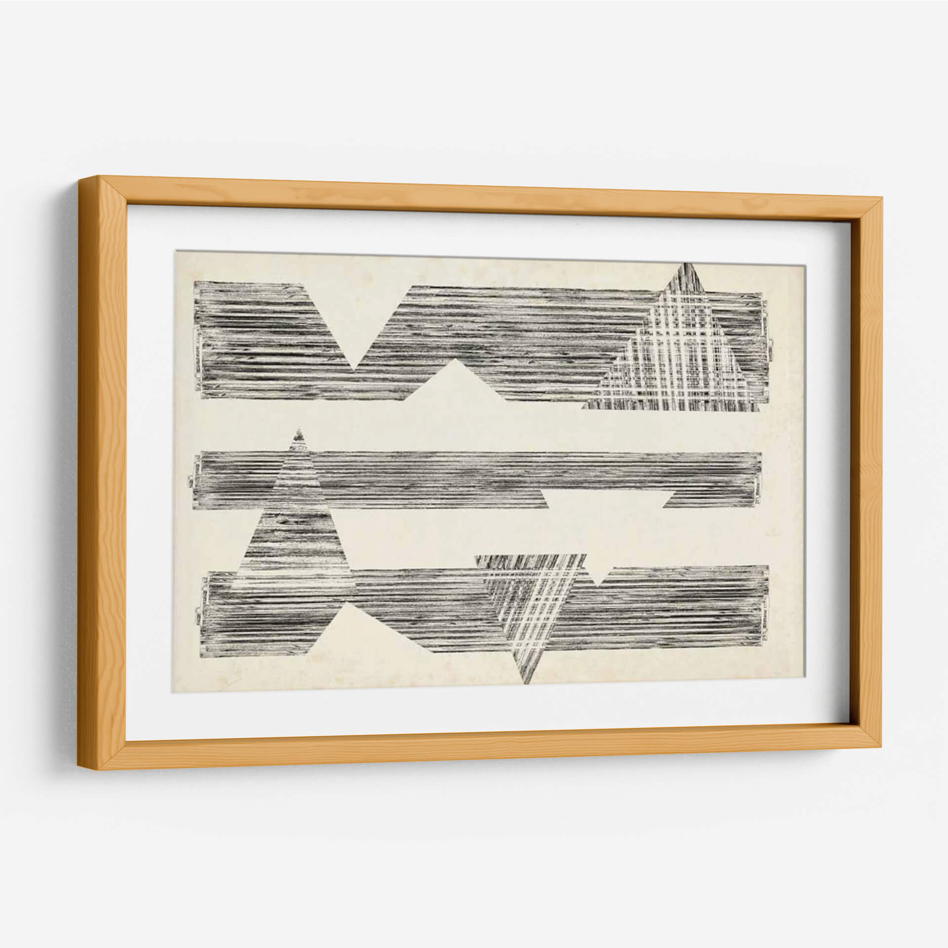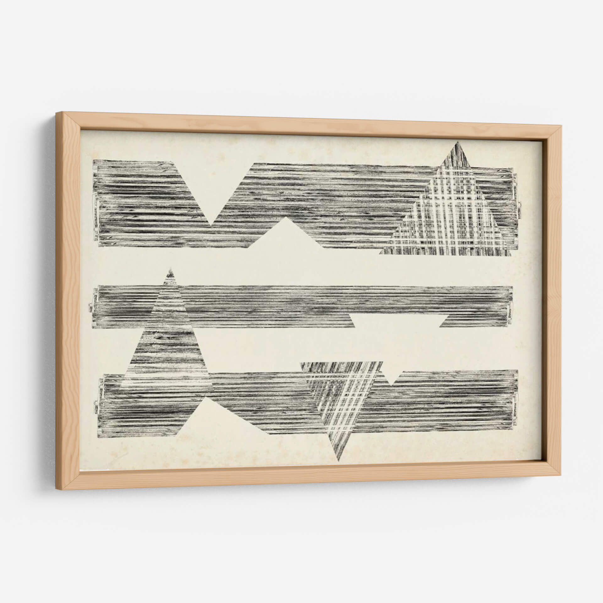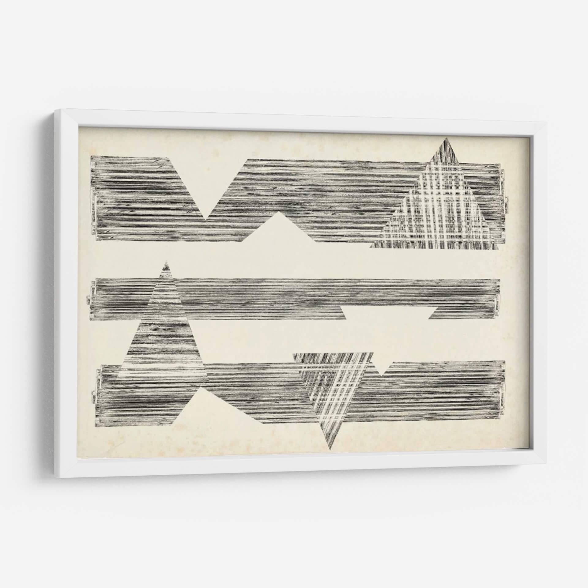 Sumérgete en la enigmática belleza de "Asombra Triángulos I" de Jennifer Goldberger, una obra de arte abstracto que redefine la elegancia moderna. Esta pieza cautivadora presenta una composición audaz de formas geométricas, predominantemente triángulos y rectángulos, intersecadas por líneas finas y texturizadas que evocan una sensación de profundidad y dinamismo. La paleta de colores neutros, basada en tonos crudos y negros, otorga a la obra una sofisticación atemporal y versátil, permitiendo que se integre armoniosamente en cualquier esquema decorativo. El estilo distintivo de Goldberger se manifiesta en la manera en que las formas sólidas se fusionan con patrones lineales, creando un juego visual de luz y sombra que invita a la contemplación. "Asombra Triángulos I" es más que un simple cuadro; es una declaración de estilo, una invitación a explorar la relación entre forma y espacio. Ideal para espacios que buscan un toque de arte contemporáneo y un punto focal intrigante, ya sea en un estudio minimalista, una sala de estar vanguardista o un pasillo que requiere una dosis de carácter.