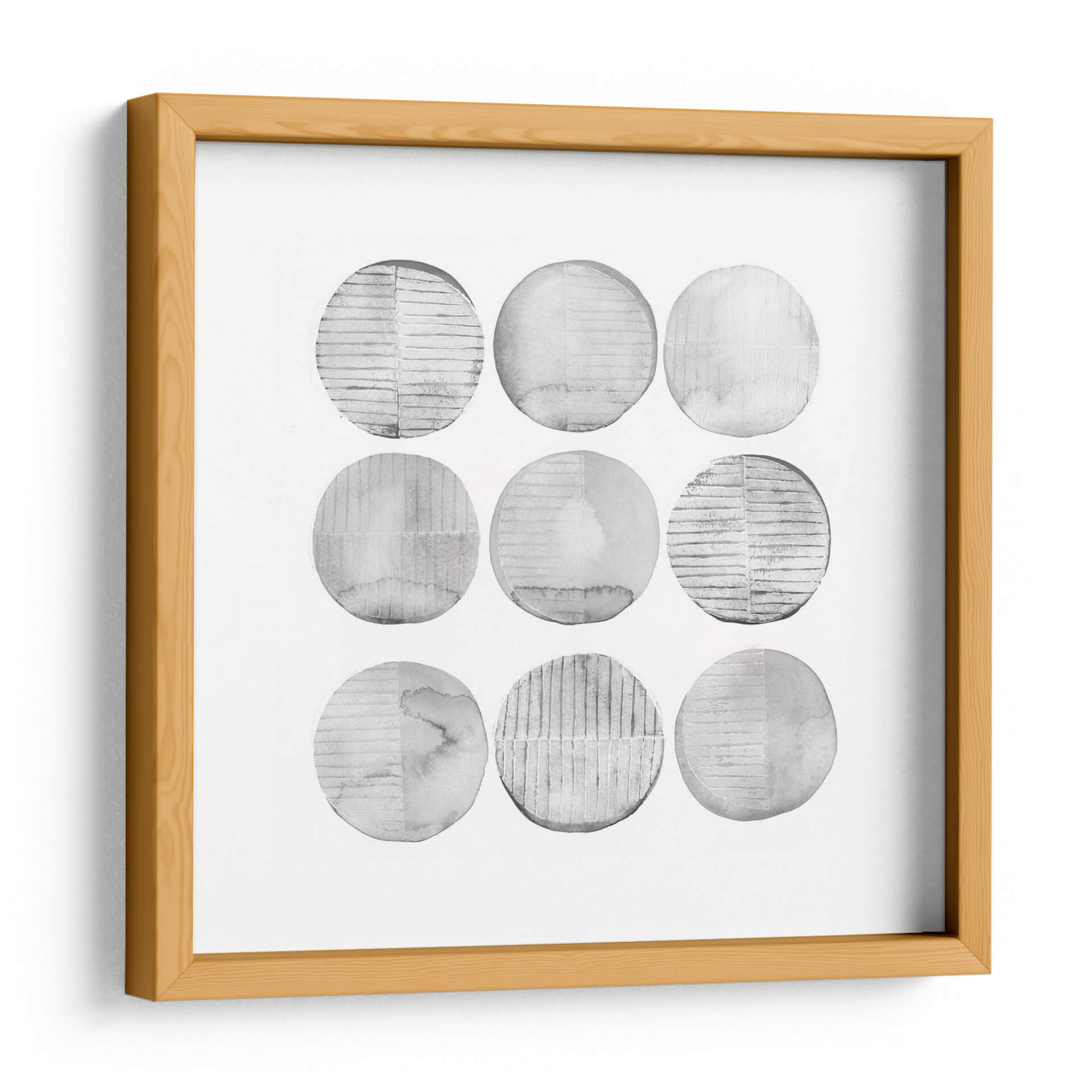 Sumérgete en la serenidad y el minimalismo moderno con "Círculos Blandos II" de Grace Popp, una obra de arte que redefine la elegancia abstracta. Este cautivador cuadro decorativo presenta una composición armoniosa de nueve círculos, cada uno con texturas sutiles y variaciones de grises que invitan a la contemplación. La paleta de colores en escala de grises, con toques de acuarela y líneas delicadas, crea una atmósfera de calma y sofisticación, perfecta para cualquier espacio que busque un toque de refinamiento contemporáneo. "Círculos Blandos II" es ideal para añadir profundidad visual y un sentido de equilibrio a tu sala de estar, dormitorio o estudio. Su diseño abstracto y texturizado lo convierte en un punto focal intrigante sin abrumar el entorno. Descubre cómo esta pieza única puede transformar tu hogar u oficina, aportando una sensación de paz y un estilo artístico innegable. Es la elección perfecta para quienes aprecian el arte sutil y la belleza en la simplicidad. Añade esta obra maestra a tu colección y experimenta la tranquilidad que solo el arte de Grace Popp puede ofrecer, creando un ambiente acogedor y con carácter.
