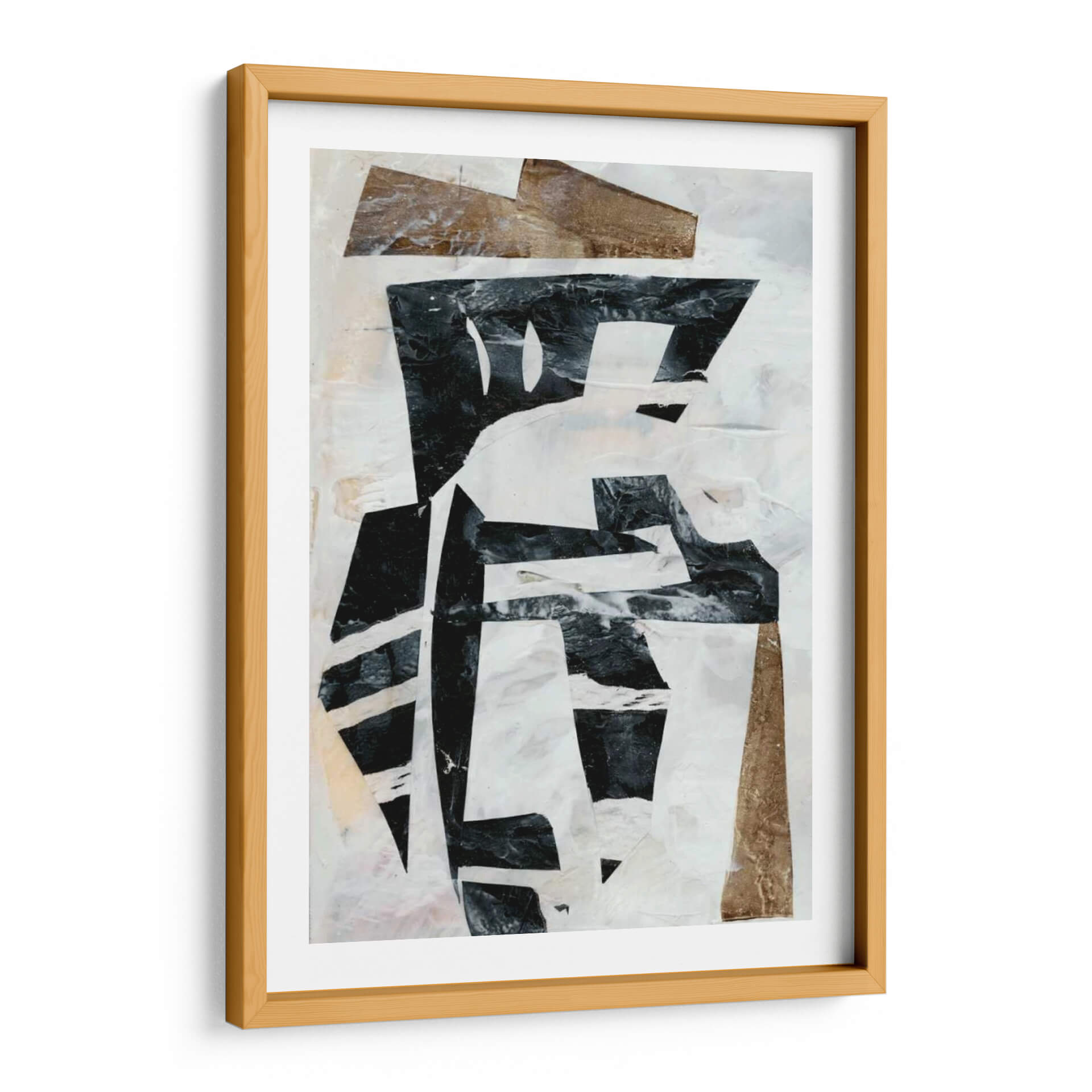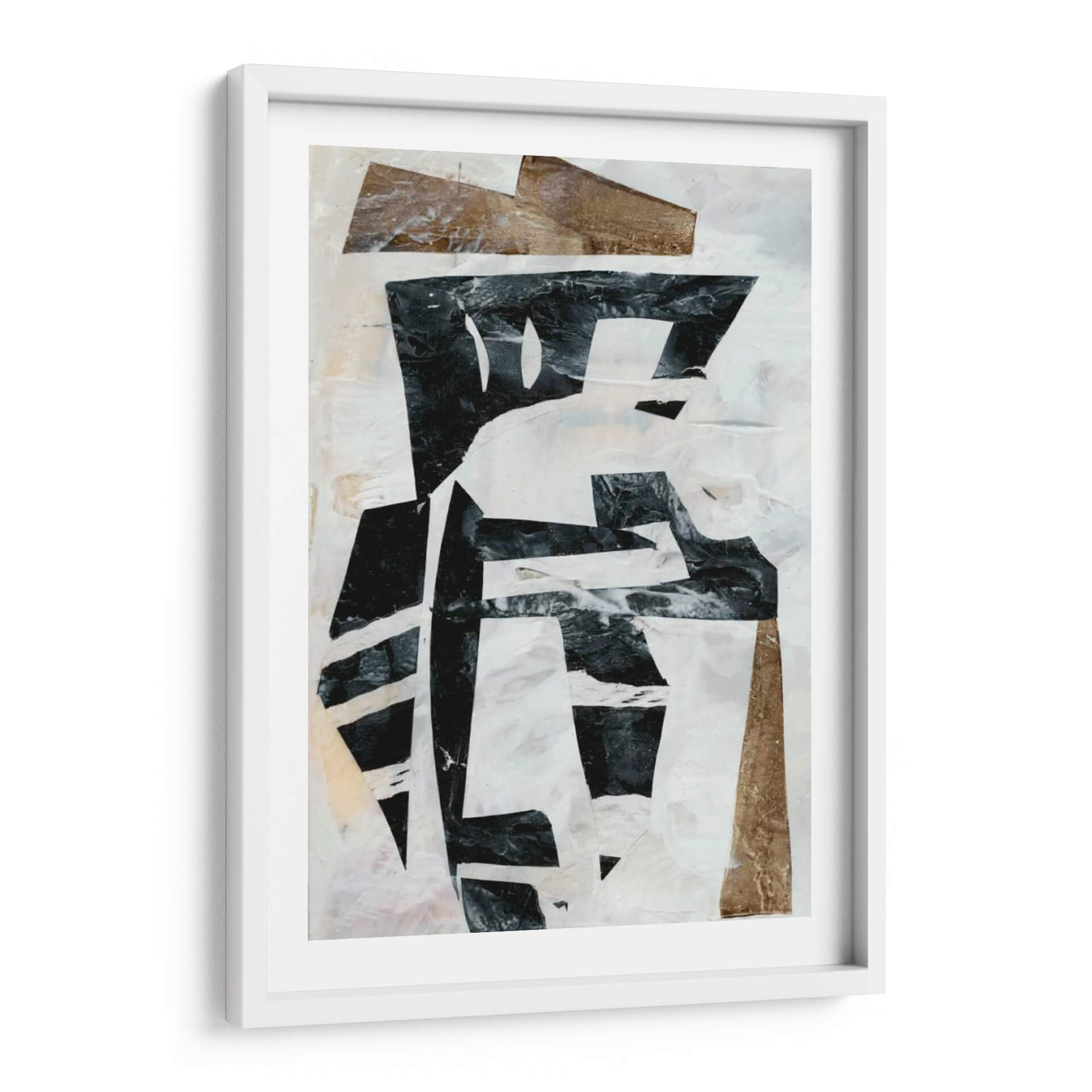 Sumérgete en la intrigante composición de "Collage Tribal I", una obra de arte contemporáneo que redefine la estética moderna. Jennifer Goldberger fusiona audazmente formas geométricas y texturas orgánicas en un cautivador collage que evoca una sensación de profundidad y misterio. La paleta de colores, dominada por blancos puros, negros intensos y acentos de tonos tierra y dorados texturizados, crea un contraste dinámico que atrae la mirada y estimula la imaginación. Los elementos superpuestos y rasgados sugieren una narrativa oculta, invitando al espectador a interpretar su propio significado. Este cuadro decorativo es una pieza versátil, perfecta para añadir un toque de sofisticación abstracta a cualquier espacio, desde una sala de estar minimalista hasta una oficina vanguardista. Su diseño atemporal y su aire tribal moderno lo convierten en un punto focal inigualable, capaz de complementar una variedad de estilos decorativos, aportando carácter y una dosis de arte genuino a tu hogar u oficina. Descubre la belleza de la abstracción con esta pieza única que dialoga entre lo primitivo y lo contemporáneo, creando un ambiente de elegancia y profundidad.