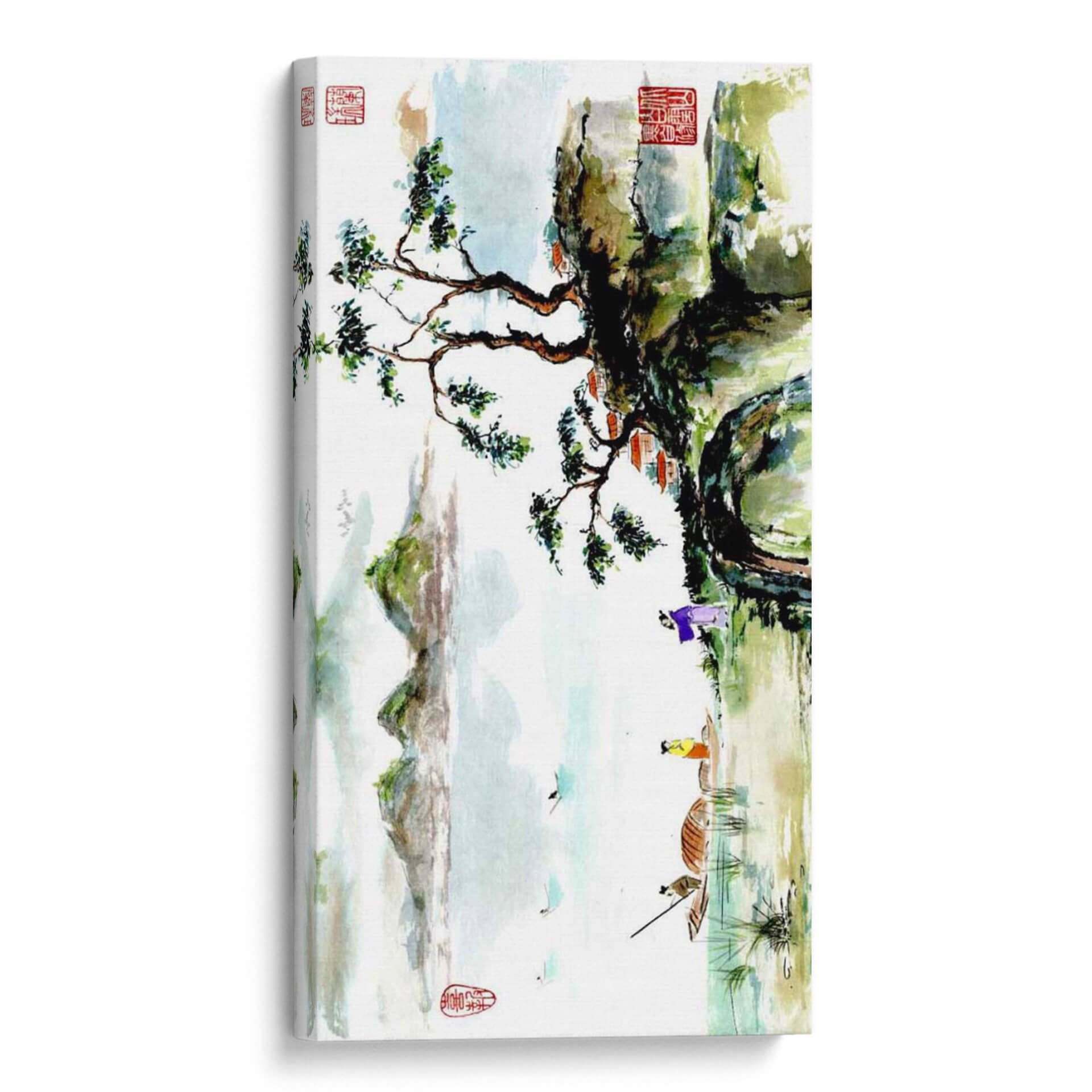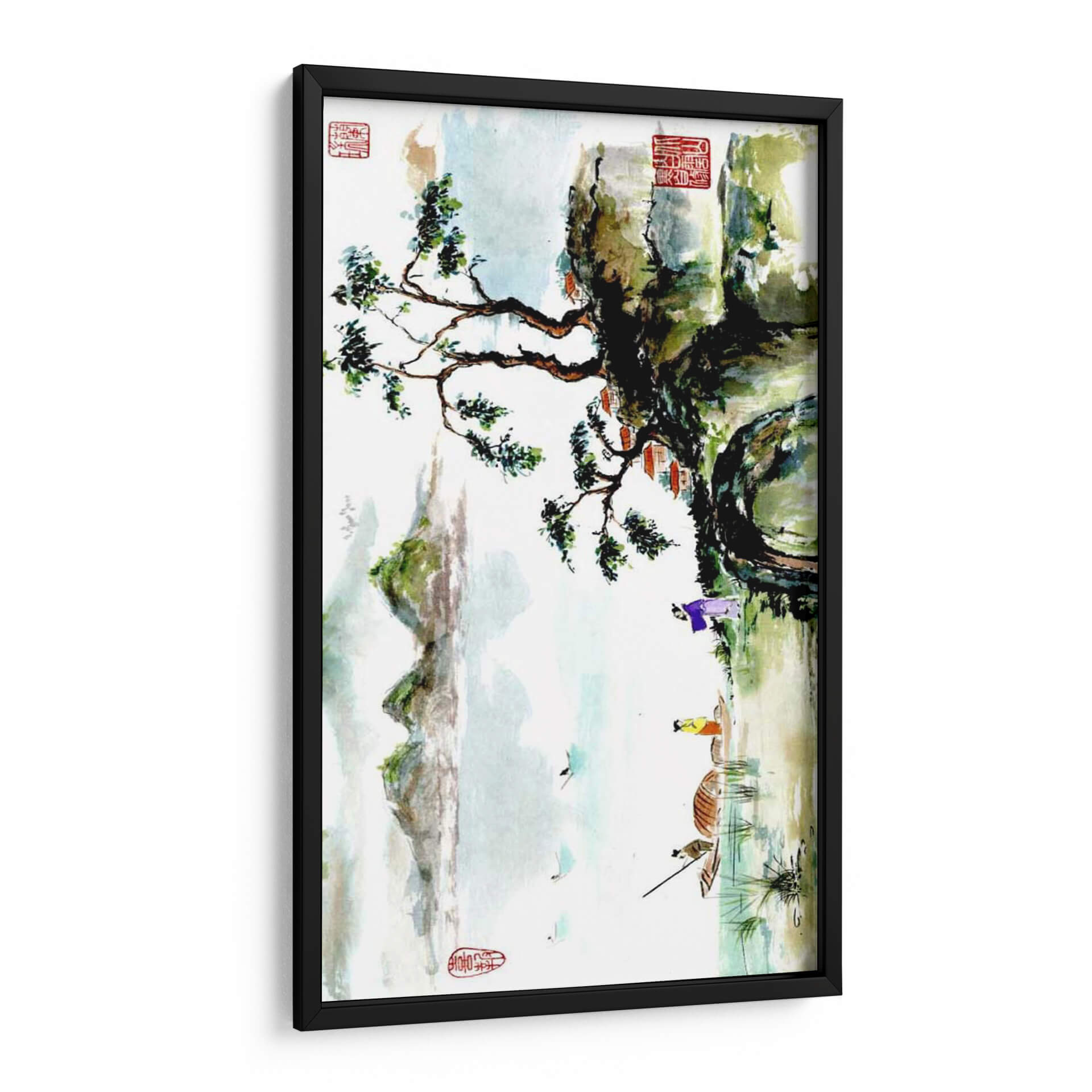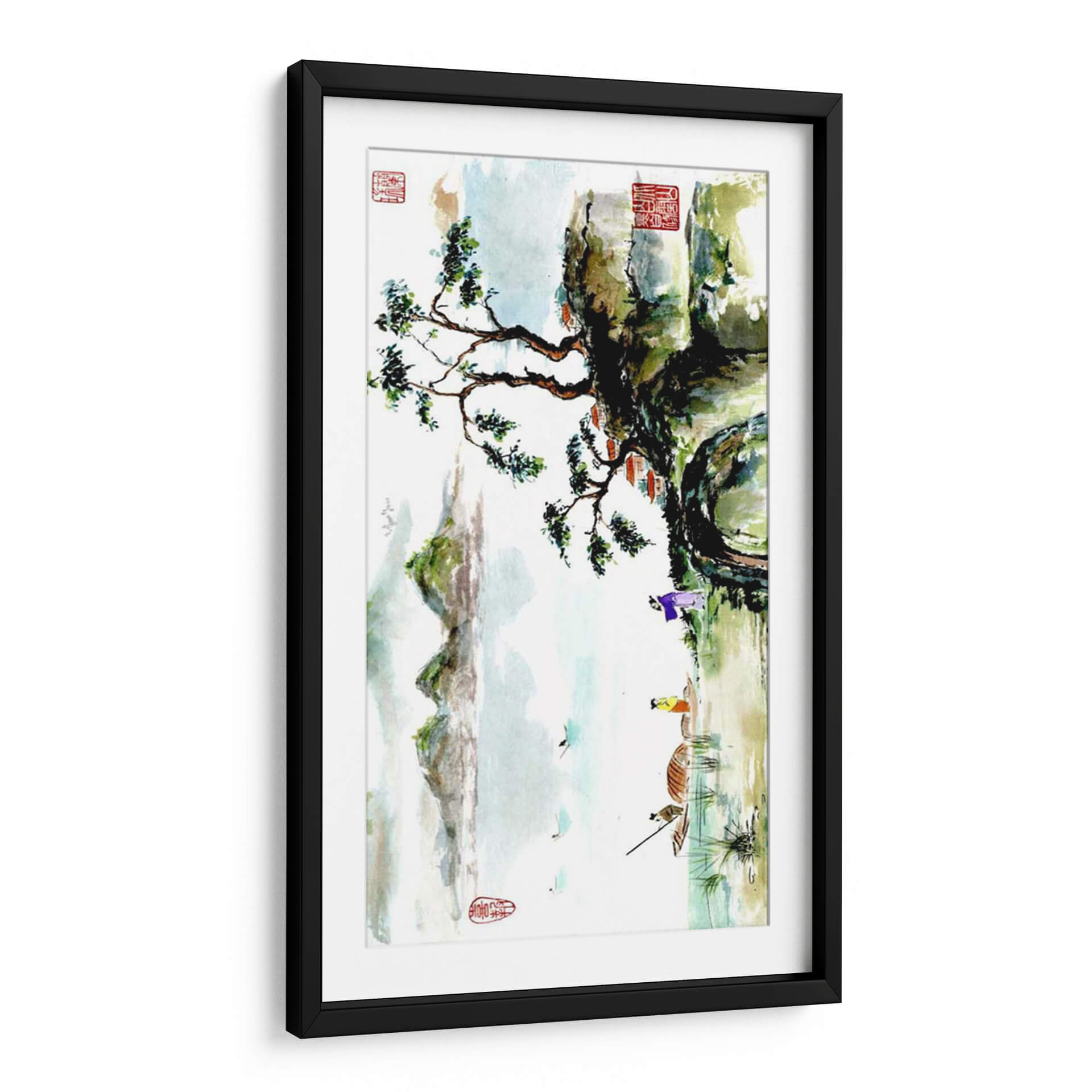 Sumérgete en la serena belleza de 'El Saludo', una obra de arte que evoca la tranquilidad de la naturaleza y la contemplación. Esta pieza, del artista Nan Rae, captura un momento de paz con su delicada pincelada y su paleta de colores suaves. Se aprecian figuras humanas en armonía con el entorno, sugiriendo una conexión profunda con el paisaje. Las montañas etéreas, el árbol frondoso y el sereno cuerpo de agua crean una atmósfera de calma y reflexión. El estilo artístico, inspirado en la pintura tradicional asiática, utiliza trazos fluidos y una composición que guía la mirada a través de la escena. Los sutiles toques de color, como los acentos en las vestimentas de las figuras y las linternas, añaden un punto de interés sin romper la armonía general. Este cuadro decorativo es ideal para espacios que buscan transmitir serenidad y un toque de elegancia atemporal, como dormitorios, salas de estar o estudios. Transforma tu hogar en un santuario de paz con esta obra que invita a la meditación y al disfrute de la belleza simple.