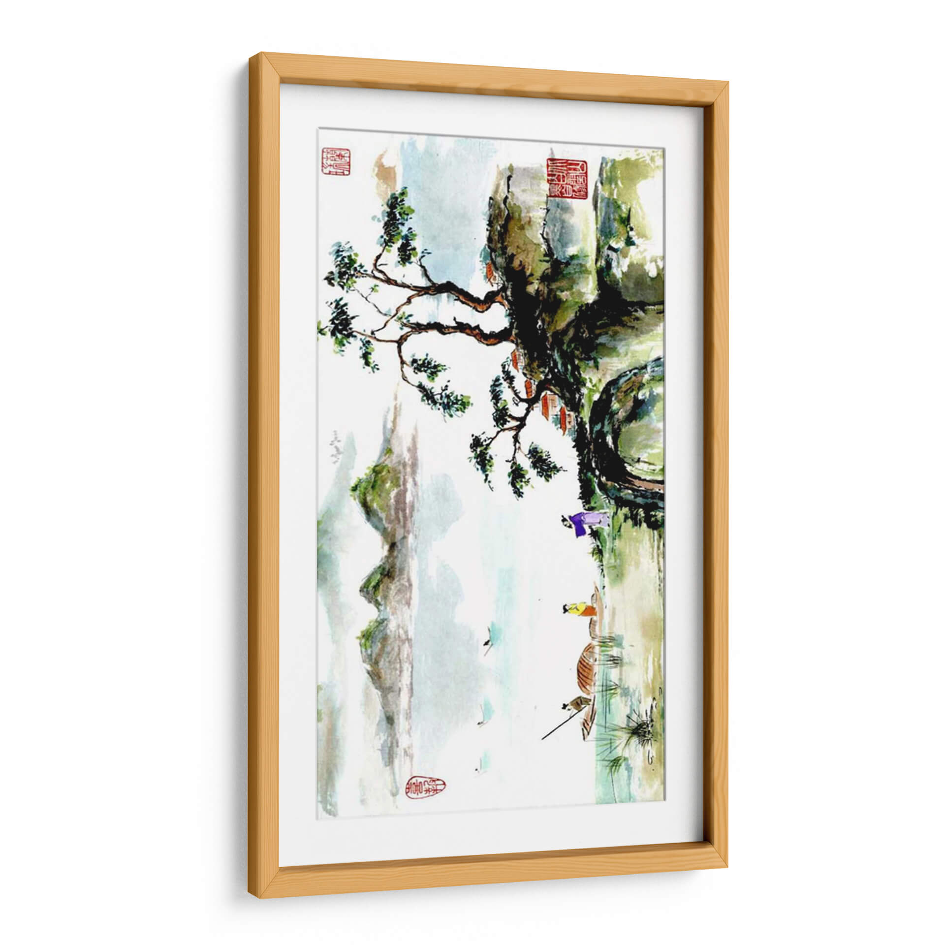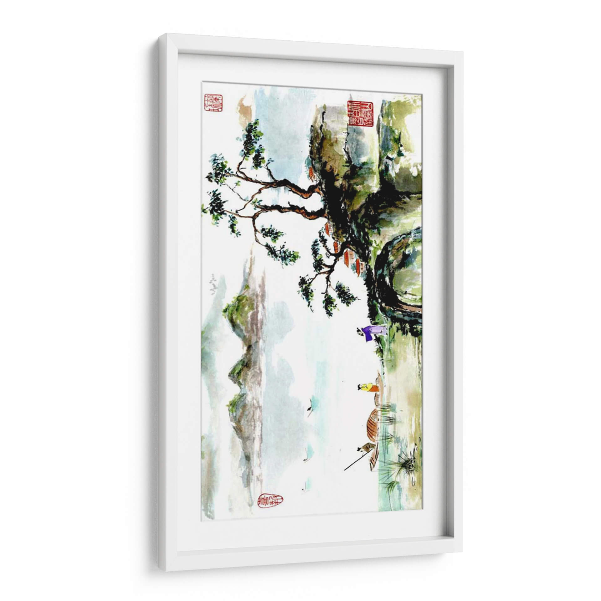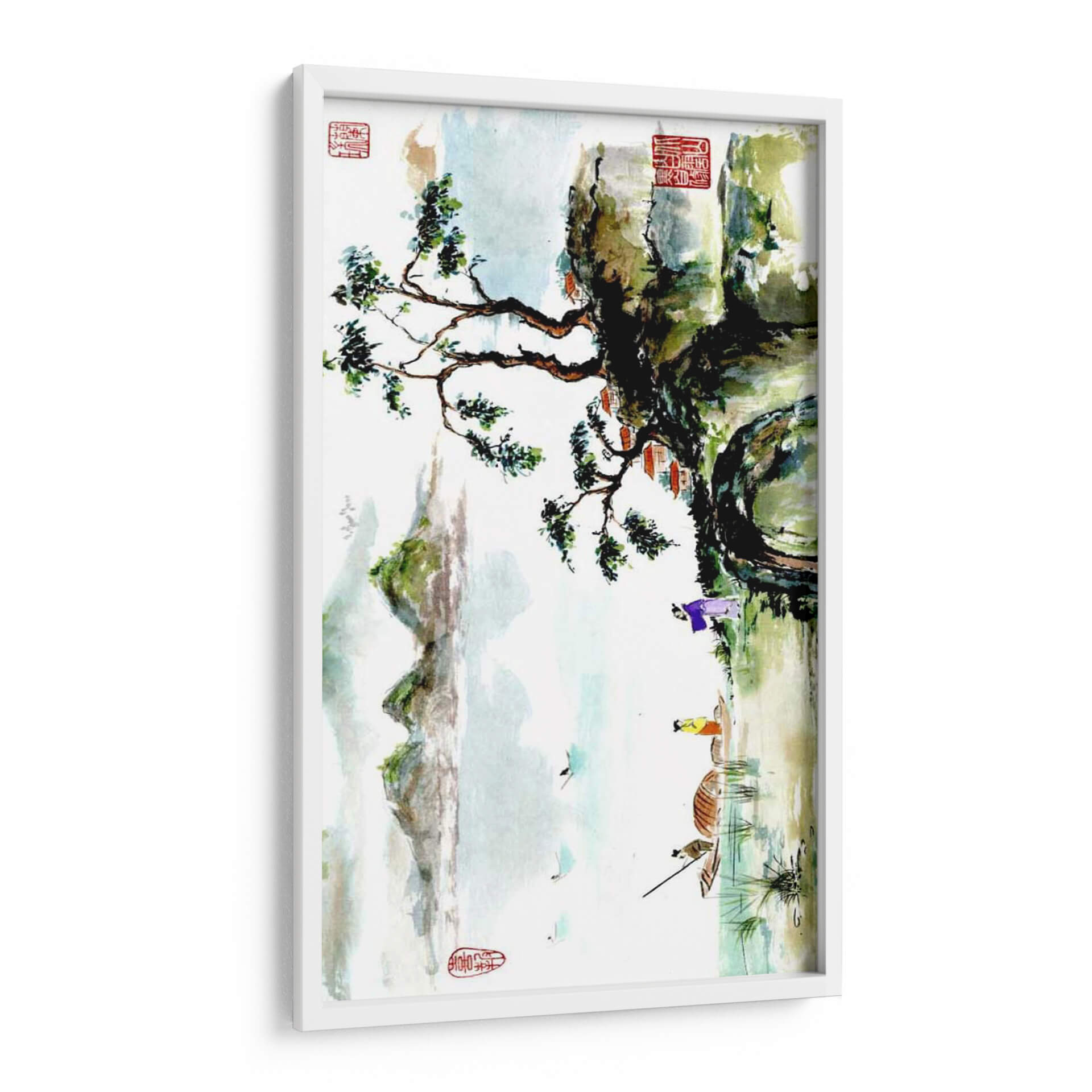 Sumérgete en la serena belleza de 'El Saludo', una obra de arte que evoca la tranquilidad de la naturaleza y la contemplación. Esta pieza, del artista Nan Rae, captura un momento de paz con su delicada pincelada y su paleta de colores suaves. Se aprecian figuras humanas en armonía con el entorno, sugiriendo una conexión profunda con el paisaje. Las montañas etéreas, el árbol frondoso y el sereno cuerpo de agua crean una atmósfera de calma y reflexión. El estilo artístico, inspirado en la pintura tradicional asiática, utiliza trazos fluidos y una composición que guía la mirada a través de la escena. Los sutiles toques de color, como los acentos en las vestimentas de las figuras y las linternas, añaden un punto de interés sin romper la armonía general. Este cuadro decorativo es ideal para espacios que buscan transmitir serenidad y un toque de elegancia atemporal, como dormitorios, salas de estar o estudios. Transforma tu hogar en un santuario de paz con esta obra que invita a la meditación y al disfrute de la belleza simple.