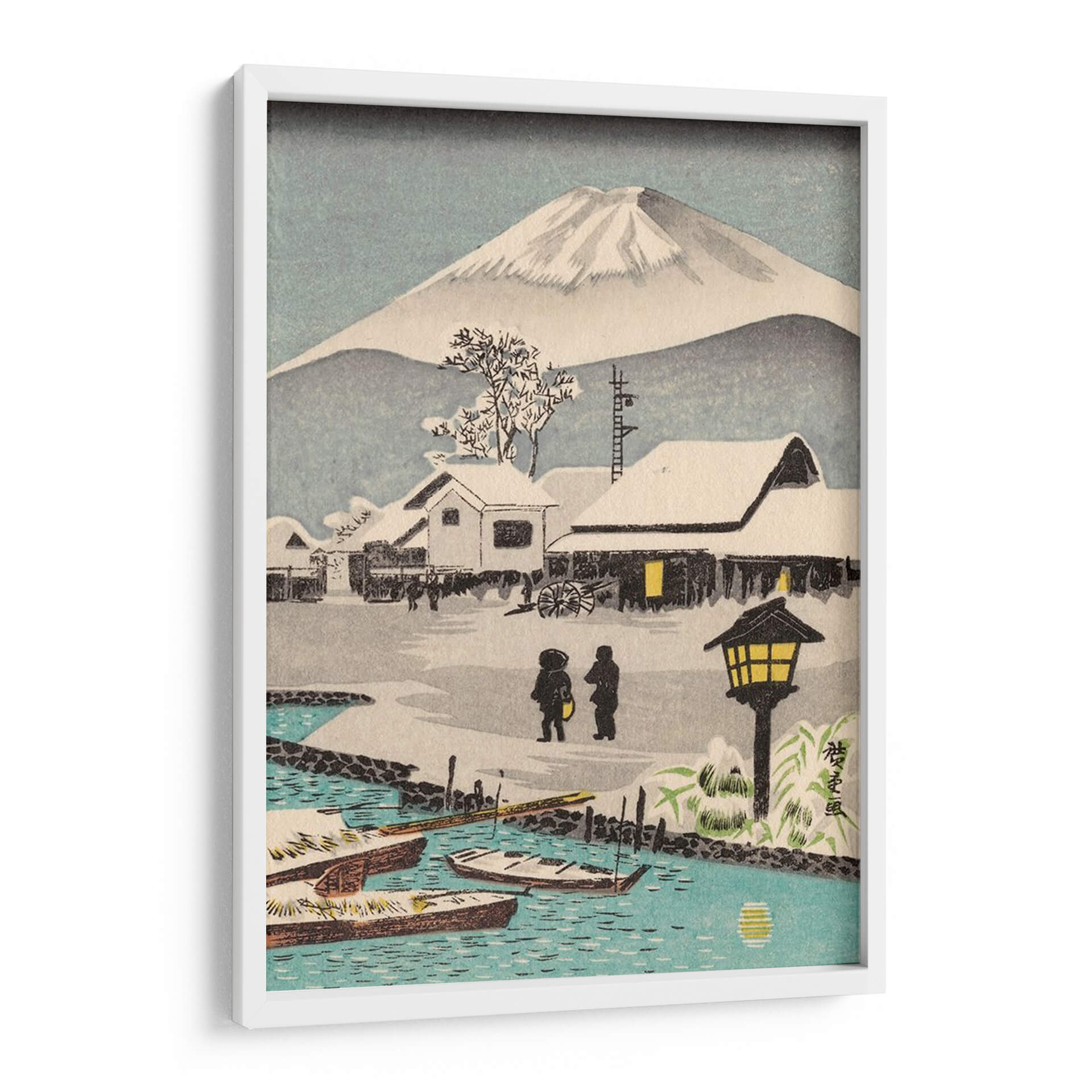 Sumérgete en la serena belleza del "Icónico Japón Xi", un cuadro decorativo que captura la esencia de un invierno japonés con una paleta de colores sutil y evocadora. Esta obra maestra representa un paisaje nevado con el majestuoso Monte Fuji como telón de fondo, flanqueado por humildes casas cubiertas de blanco y un río sereno donde descansan barcas tradicionales. La luz cálida que emana de las ventanas y la linterna crea un contraste acogedor con la frialdad del invierno, invitando a la contemplación y la paz. El estilo artístico, inspirado en las estampas japonesas clásicas, se caracteriza por sus líneas limpias, su composición equilibrada y su atmósfera tranquila. Es la pieza perfecta para añadir un toque de sofisticación y serenidad a cualquier espacio, ya sea un salón moderno, un dormitorio acogedor o una oficina que busque inspiración. "Icónico Japón Xi" no es solo decoración, es una ventana a un mundo de calma y belleza atemporal que transformará tu hogar en un santuario de tranquilidad y estilo.