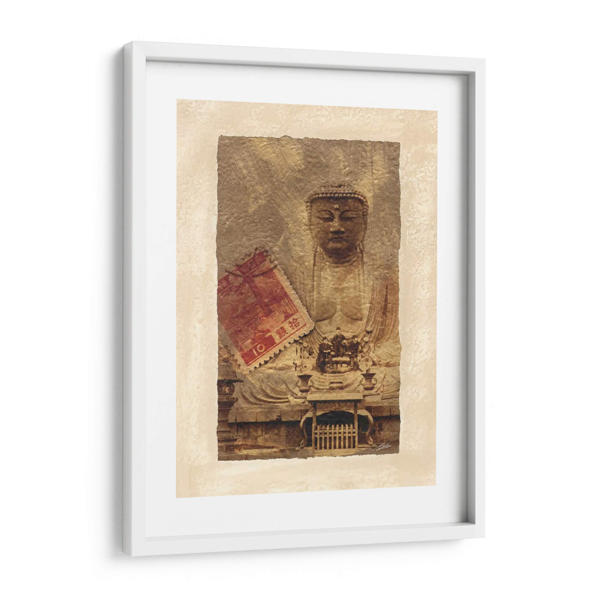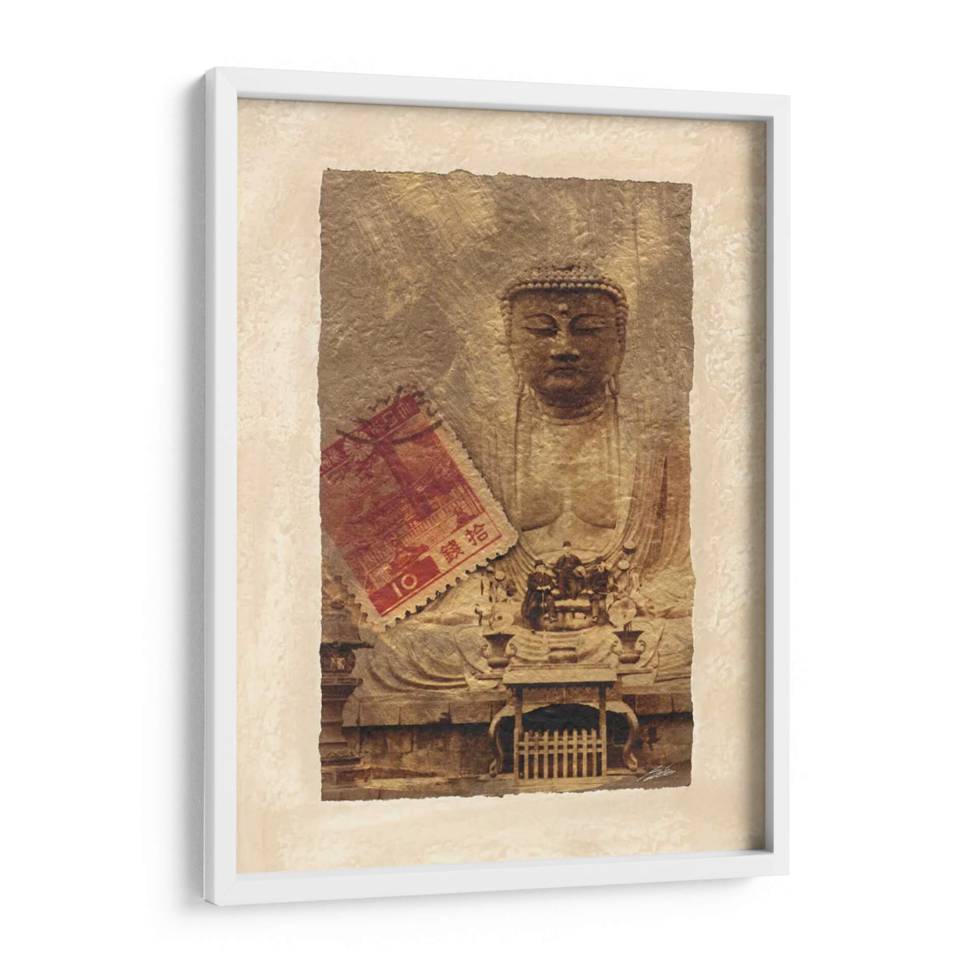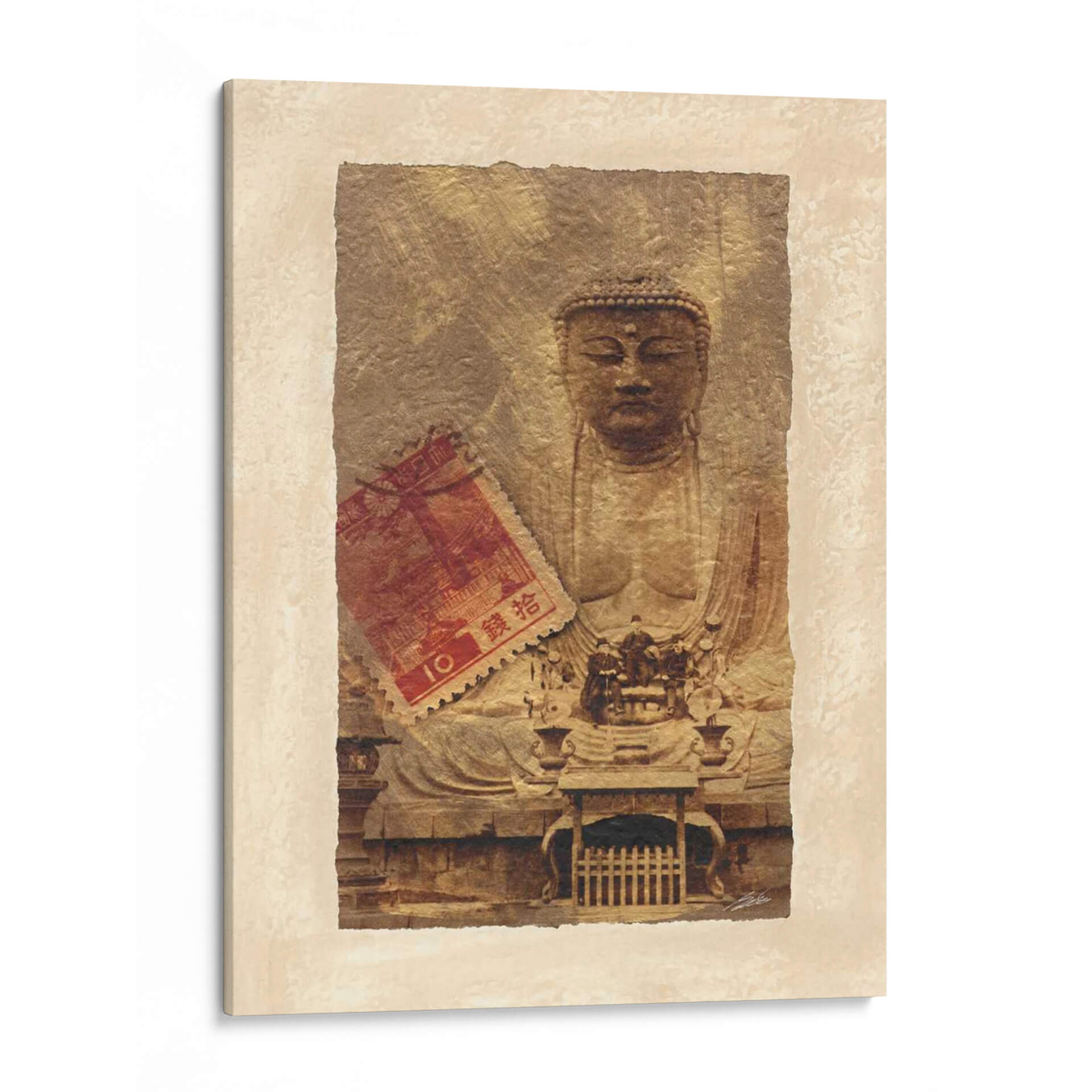 Sumérgete en la serenidad y el misterio de "Instantáneas De Viaje Vi", una obra de arte que combina elementos históricos y espirituales para crear una pieza decorativa única. El cuadro presenta una imponente imagen de una estatua de Buda, evocando paz y contemplación, superpuesta con un sello postal vintage de color rojo vibrante, añadiendo un toque de nostalgia y aventura. La paleta de colores se centra en tonos tierra, dorados y ocres, creando una atmósfera cálida y atemporal que se adapta a diversos estilos de decoración. La textura detallada y el estilo de collage digital sugieren una narrativa visual rica, invitando a la reflexión sobre los viajes, la cultura y la espiritualidad. Este cuadro decorativo es perfecto para añadir un punto focal de calma y sofisticación a tu sala de estar, estudio u oficina. Su diseño evocador y su rica simbología lo convierten en una pieza de conversación ideal para aquellos que aprecian el arte con profundidad y carácter. Ideal para crear un rincón de meditación o para infundir serenidad en cualquier espacio. Descubre la fusión de lo antiguo y lo moderno en esta cautivadora obra de John Butler.