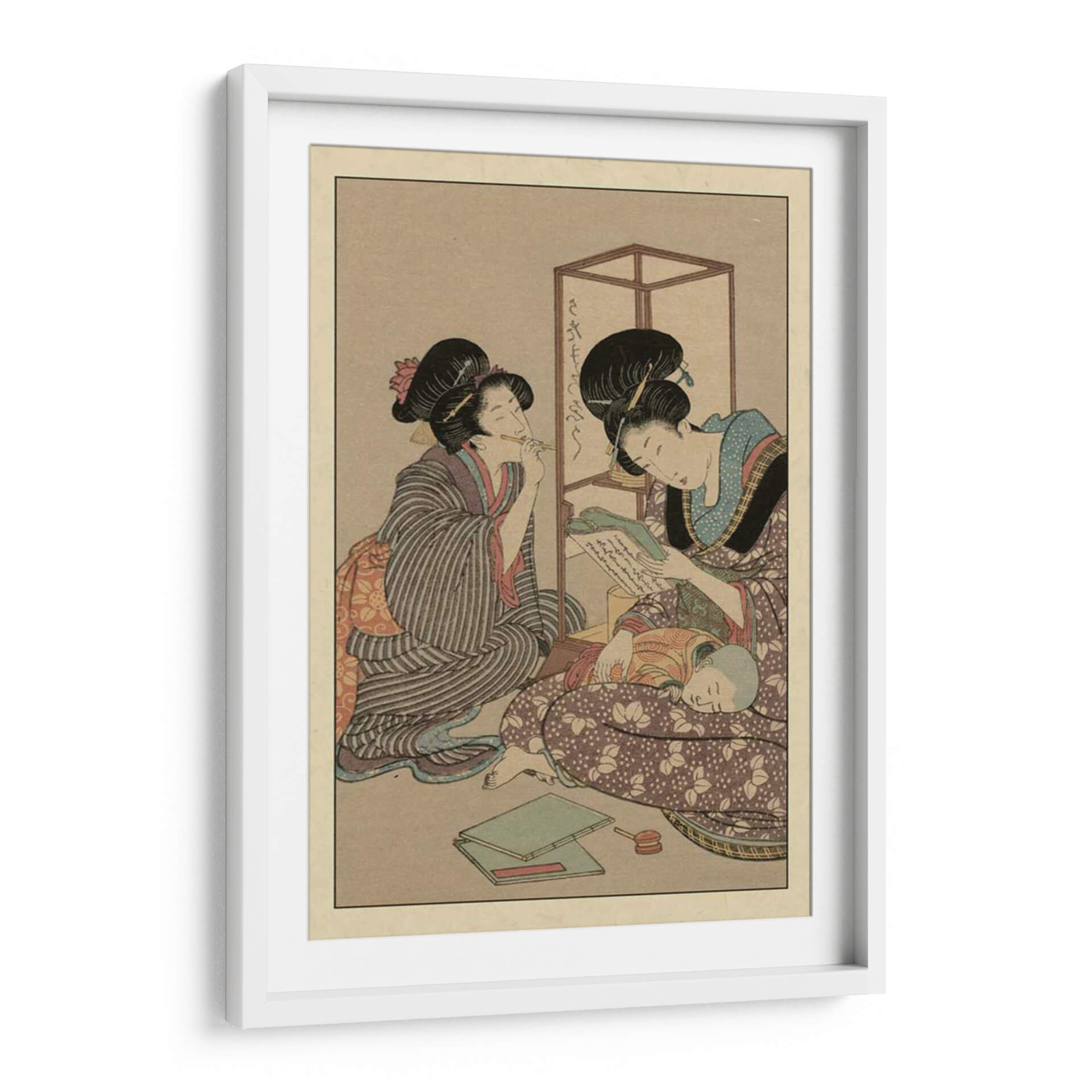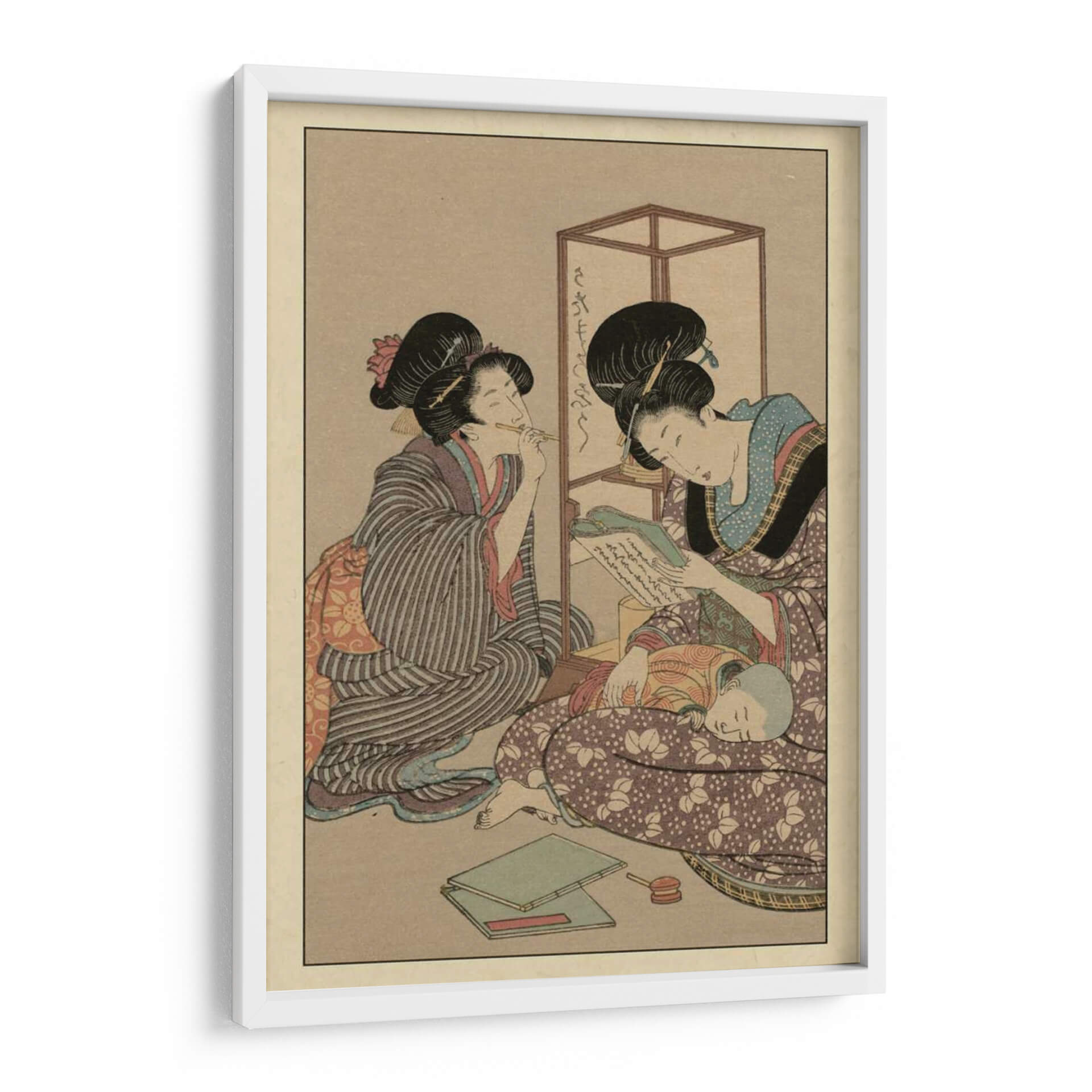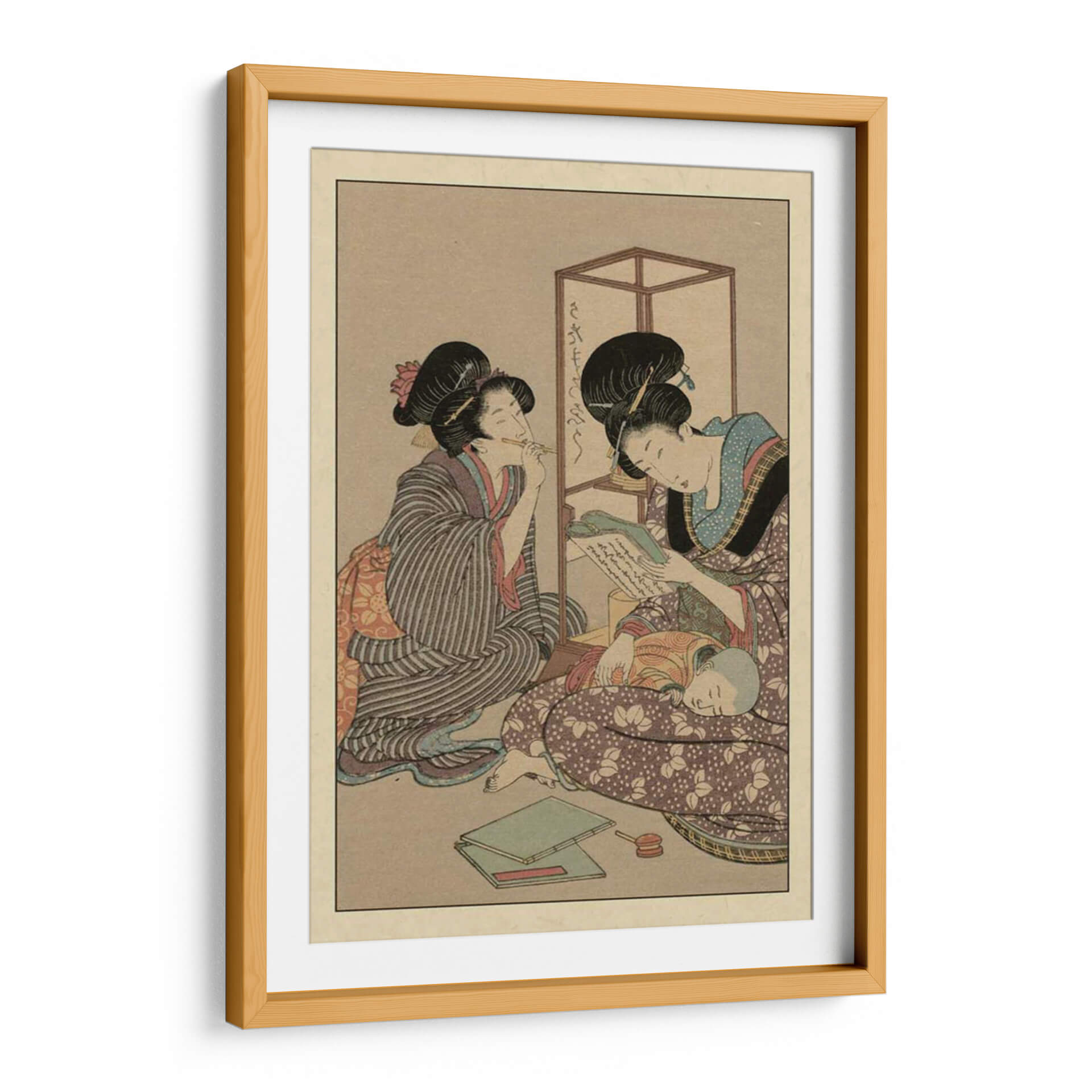 Sumérgete en la serenidad y la elegancia de "Las Mujeres En Japón II", una obra de arte que captura un momento íntimo y cotidiano de la vida japonesa. Este cuadro decorativo, creado por Vision Studio, transporta al espectador a través de su detallada representación de dos mujeres vestidas con kimonos tradicionales, absortas en sus actividades. Una de ellas se arregla el cabello con delicadeza mientras la otra se inclina sobre un documento, quizás leyendo o escribiendo, con un niño dormido plácidamente a su lado. La paleta de colores, dominada por tonos tierra, grises y acentos de coral y azul, evoca una atmósfera de calma y contemplación, propia del arte ukiyo-e. La composición, con sus líneas fluidas y la atención al detalle en los patrones de las vestimentas, invita a la admiración. Esta pieza es ideal para añadir un toque de sofisticación y cultura a cualquier espacio, ya sea un salón, un dormitorio o un estudio. "Las Mujeres En Japón II" no es solo una decoración de pared, sino una ventana a una tradición y una escena de profunda tranquilidad, perfecta para quienes buscan un arte que inspire paz y belleza en su hogar u oficina.