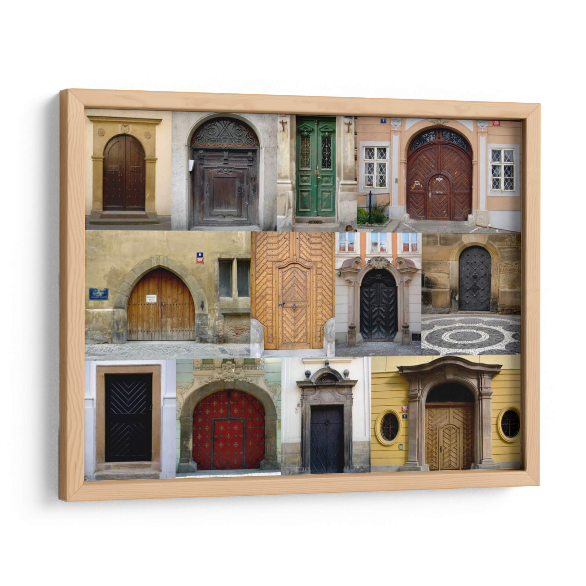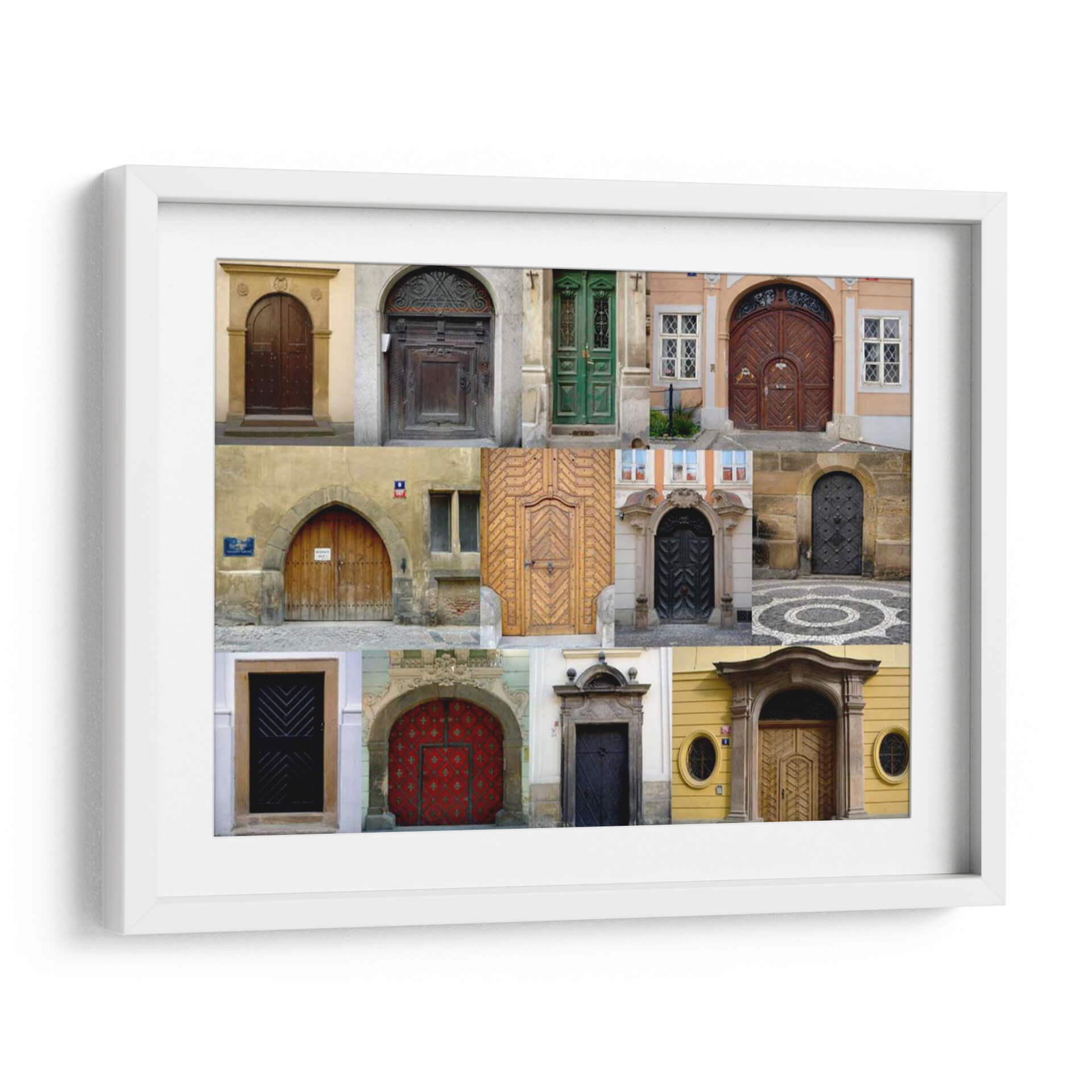 Adéntrate en un viaje arquitectónico y temporal con "Me Puertas", una cautivadora obra de arte de Jim Christensen. Esta pieza visualmente rica es un collage de doce puertas distintas, cada una contando su propia historia de diseño, materialidad y carácter. Desde las robustas puertas de madera tallada y las elegantes entradas de estilo europeo hasta las discretas puertas modernas con patrones geométricos, la obra celebra la diversidad y la artesanía que se encuentra en los accesos que definen nuestros espacios. La paleta de colores es variada, abarcando desde cálidos tonos tierra y maderas naturales hasta el vibrante rojo de una puerta central y el oscuro misterio de otras. La composición, organizada en una cuadrícula armónica, permite que cada puerta destaque individualmente mientras contribuye a un todo cohesionado. "Me Puertas" evoca una sensación de curiosidad, de posibilidades y de la historia que reside detrás de cada umbral. Es una elección excepcional para quienes buscan añadir un toque de carácter, intriga y sofisticación a su hogar u oficina, transformando cualquier pared en una ventana a la imaginación y al arte de la entrada.