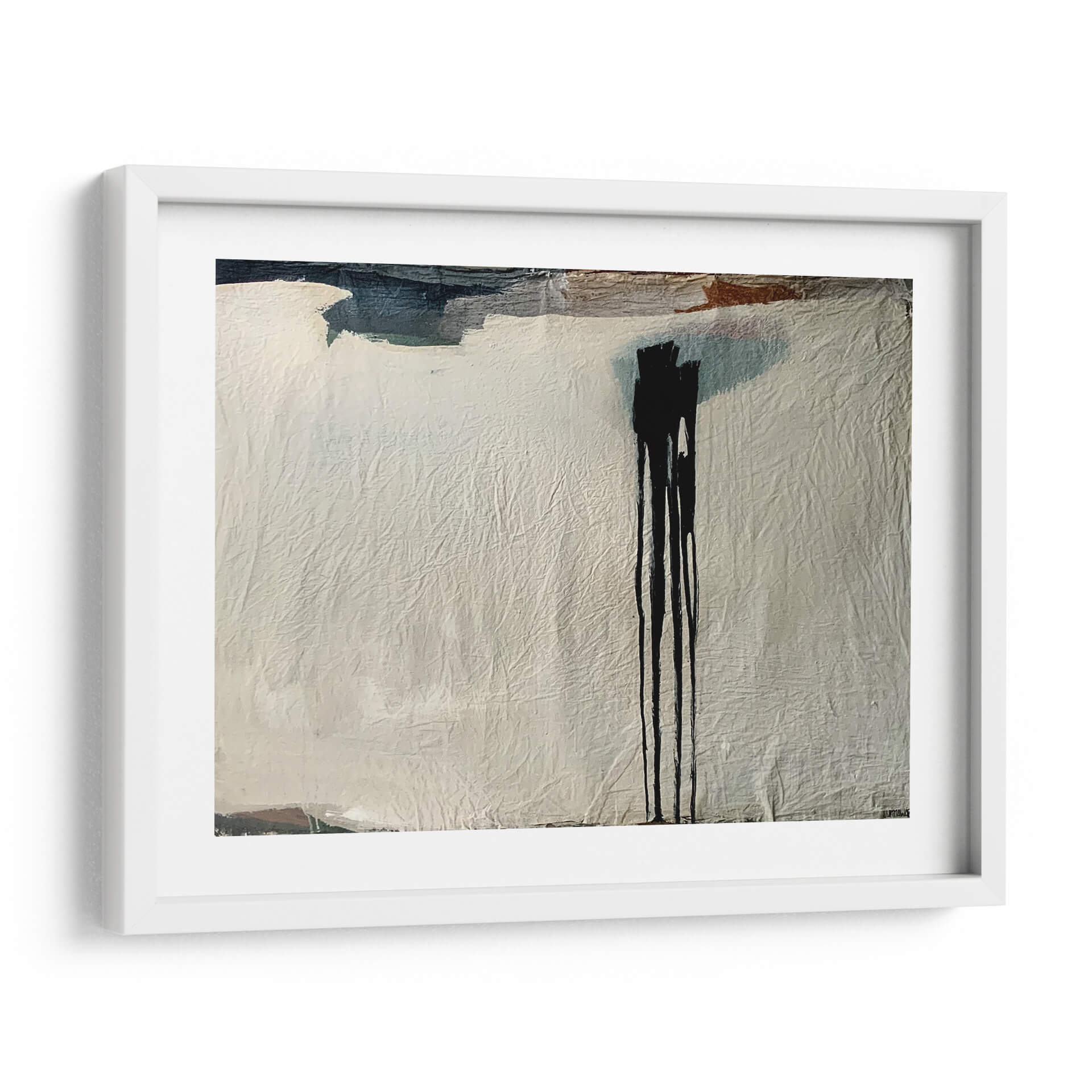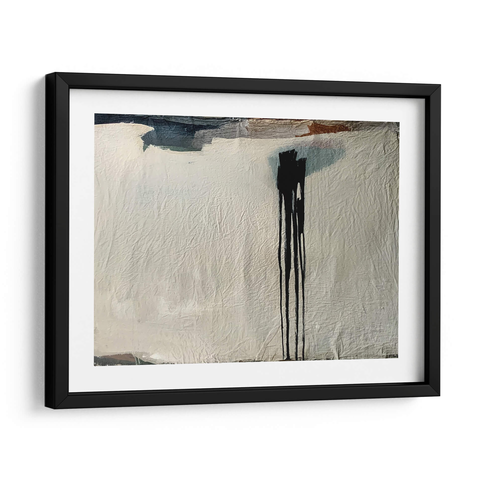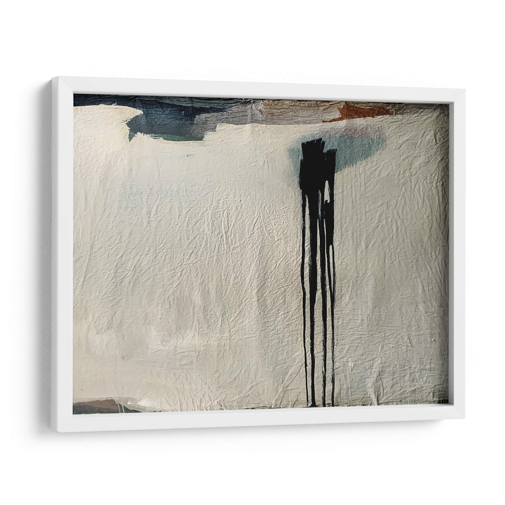 Sumérgete en la enigmática belleza de "Nieve Negra", una obra de arte abstracto contemporáneo de LUNNAWABI que desafía las convenciones. Esta pieza cautiva con su textura rica y su dramático contraste, donde pinceladas audaces en tonos oscuros, incluyendo un negro profundo e intenso, se despliegan sobre un fondo de suaves grises y blancos texturizados. Las sutiles inclusiones de tonos tierra y azules añaden profundidad y un matiz inesperado, creando una composición visualmente rica que invita a la contemplación. La técnica del dripping, evident en las caídas verticales de tinta negra, aporta un dinamismo crudo y una sensación de movimiento, como si la nieve estuviera cayendo o la tinta fluyendo libremente. "Nieve Negra" es más que una simple decoración; es una declaración de estilo que evoca misterio, introspección y una elegancia moderna. Ideal para espacios que buscan un toque de sofisticación y un punto focal intrigante, este cuadro decorativo se adapta perfectamente a salones contemporáneos, estudios minimalistas o incluso como una pieza de acento en una oficina. Permite que la intensidad y la sutileza de esta obra transformen tu entorno, añadiendo una dimensión artística única y una atmósfera de reflexión serena.