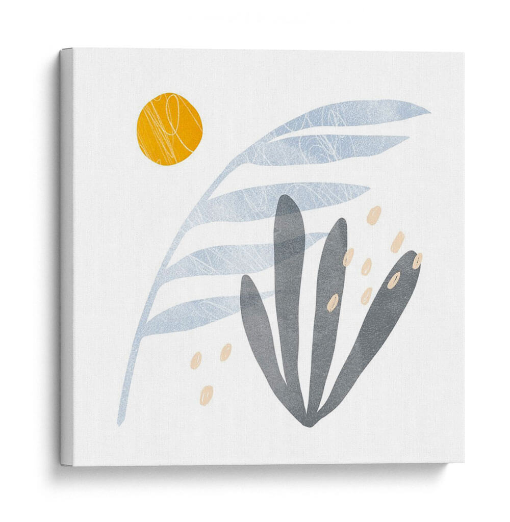 Sumérgete en la serenidad de 'Matisse Daydream II', una obra de arte contemporáneo de Emma Scarvey que evoca la calma y la belleza de la naturaleza abstracta. Este cuadro decorativo presenta una composición minimalista donde formas orgánicas en tonos grises y azules se entrelazan suavemente, coronadas por un sol ocre vibrante. Pequeñas motas de color arena salpican el lienzo, añadiendo un toque de textura y detalle sutil. La paleta de colores, dominada por azules pálidos, grises profundos y toques cálidos de amarillo y arena, crea una atmósfera relajante y etérea, perfecta para cualquier espacio que busque un refugio de paz. El estilo distintivo de Scarvey, que fusiona lo abstracto con elementos botánicos estilizados, resulta en una pieza visualmente atractiva y llena de matices. Ideal para tu sala de estar, dormitorio o estudio, este cuadro moderno infunde tranquilidad y un toque de sofisticación natural. Transforma tu hogar en una galería personal con esta pieza única que invita a la contemplación y al ensueño, capturando la esencia de un día sereno a través del arte.