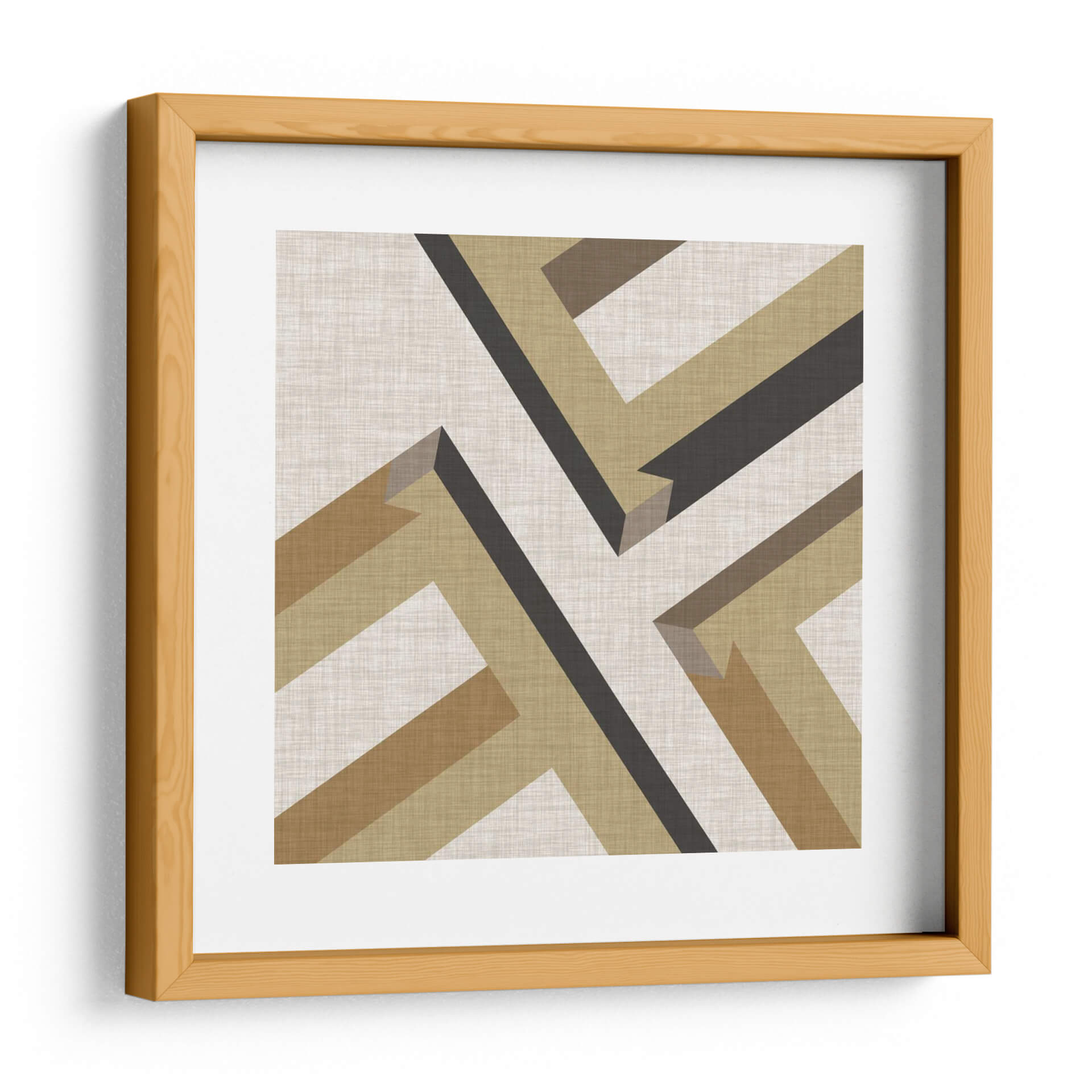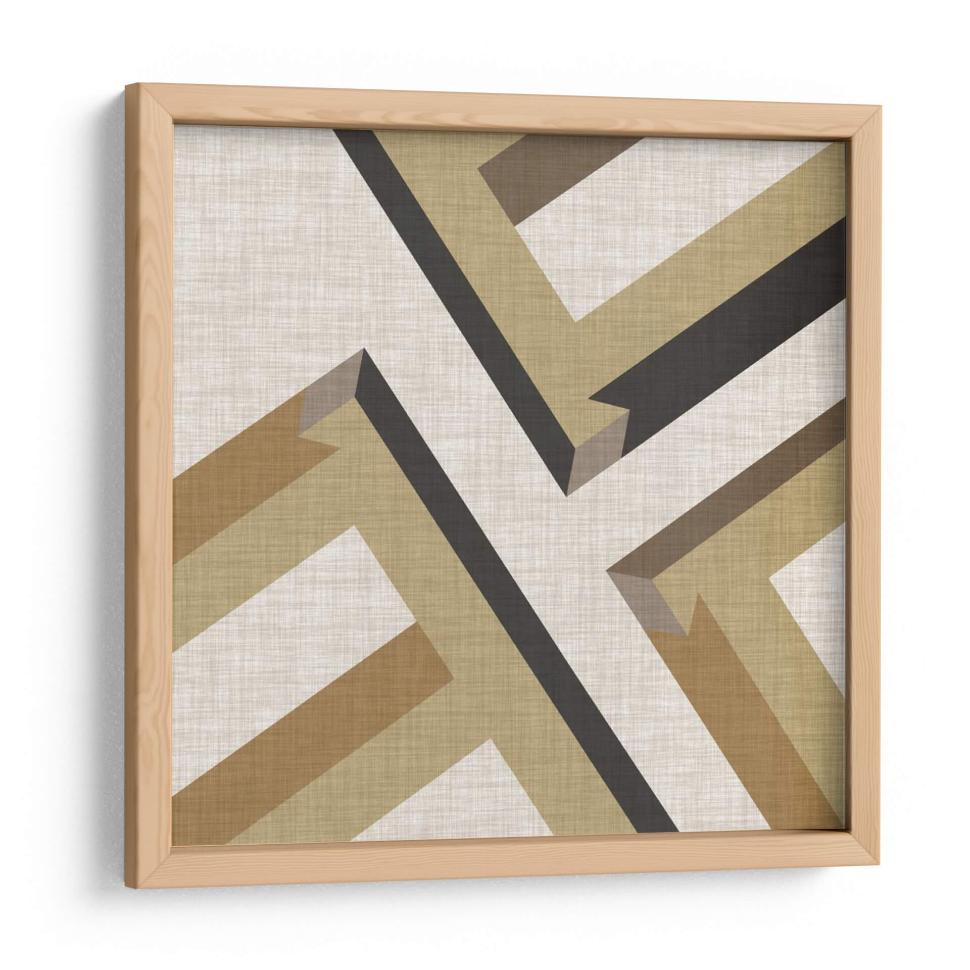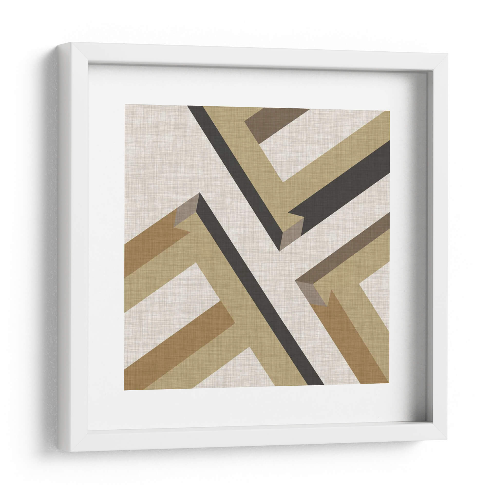 Embellece tu espacio con la obra 'Perspectiva Geométrica VIII' de June Erica Vess, una pieza que fusiona la arquitectura abstracta con una paleta de colores terrosos y neutros. Este cuadro decorativo se caracteriza por sus líneas limpias y formas angulares que crean una sensación de profundidad y dinamismo, invitando a la contemplación. La composición intrincada, con sus bandas de color que se entrelazan, aporta un toque de sofisticación moderna y atemporal a cualquier ambiente. Los tonos cálidos y naturales, que van desde el beige cremoso hasta el marrón oscuro y el ocre, crean una atmósfera serena y equilibrada, perfecta para complementar tanto decoraciones minimalistas como espacios más eclécticos. Ideal para añadir un punto de interés visual en salas de estar, oficinas o estudios, 'Perspectiva Geométrica VIII' es más que una simple decoración; es una invitación a explorar la belleza de la forma y el color. Su diseño abstracto y moderno lo convierte en una adición versátil y elegante para quienes buscan arte que inspire tranquilidad y claridad.