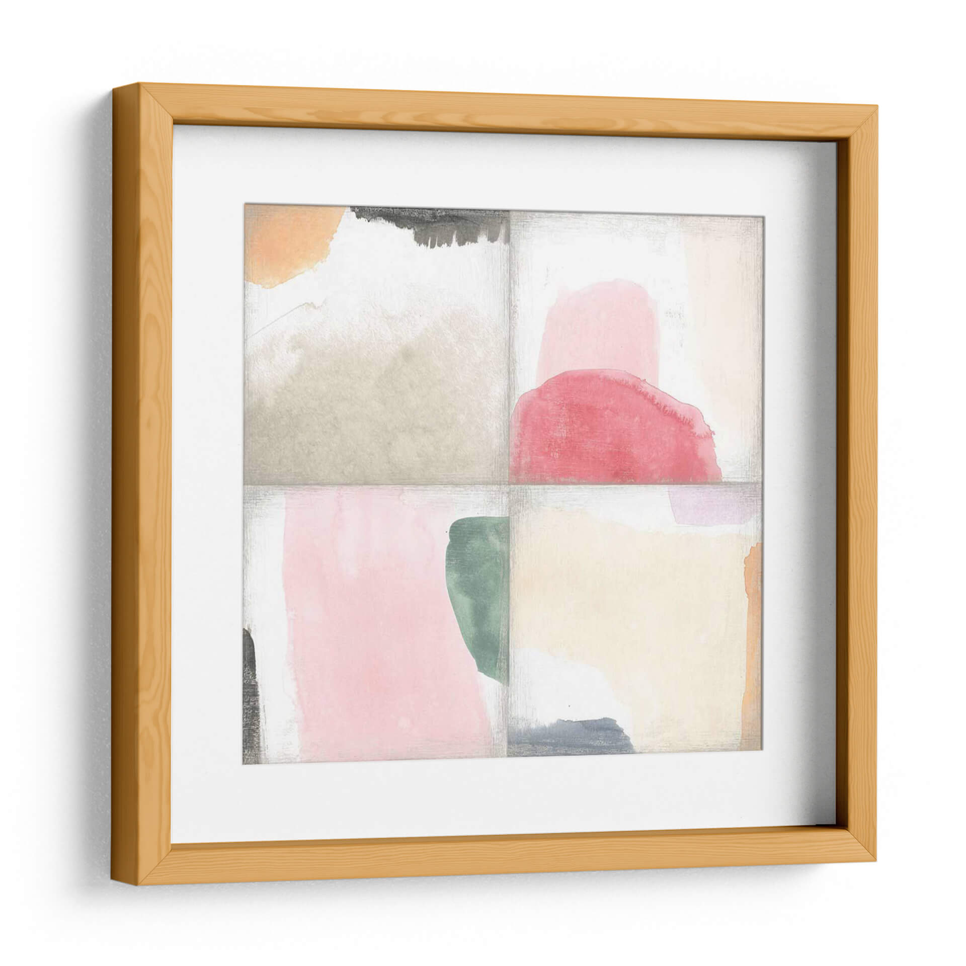 Transforma tu espacio con el cuadro decorativo "Tile Pastel Iii", una obra de arte abstracto contemporáneo que irradia calma y sofisticación. Creada por la talentosa June Erica Vess, esta pieza se caracteriza por su composición dividida en cuadrículas sutiles, cada una albergando formas orgánicas y fluidas que evocan la delicadeza de acuarelas. La paleta de colores, dominada por tonos pastel suaves como el rosa empolvado, el melocotón pálido y el verde menta, se complementa con toques de coral vibrante y gris piedra, creando un equilibrio visual armonioso y moderno. Los trazos de pincel visibles y la textura ligera de la acuarela añaden profundidad y un encanto artesanal a la obra, invitando a la contemplación. "Tile Pastel Iii" es ideal para añadir un toque de elegancia discreta a tu sala de estar, dormitorio o estudio, fusionando a la perfección el arte moderno con la serenidad. Este cuadro decorativo abstracto es perfecto para quienes buscan una pieza única que hable de estilo, buen gusto y una atmósfera de tranquilidad en su hogar u oficina.