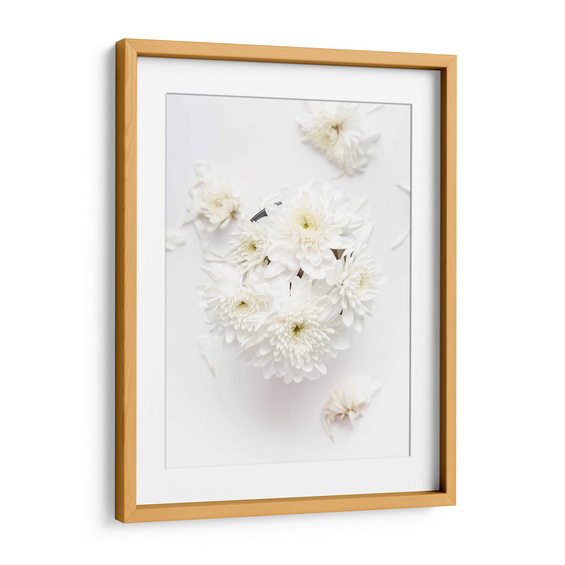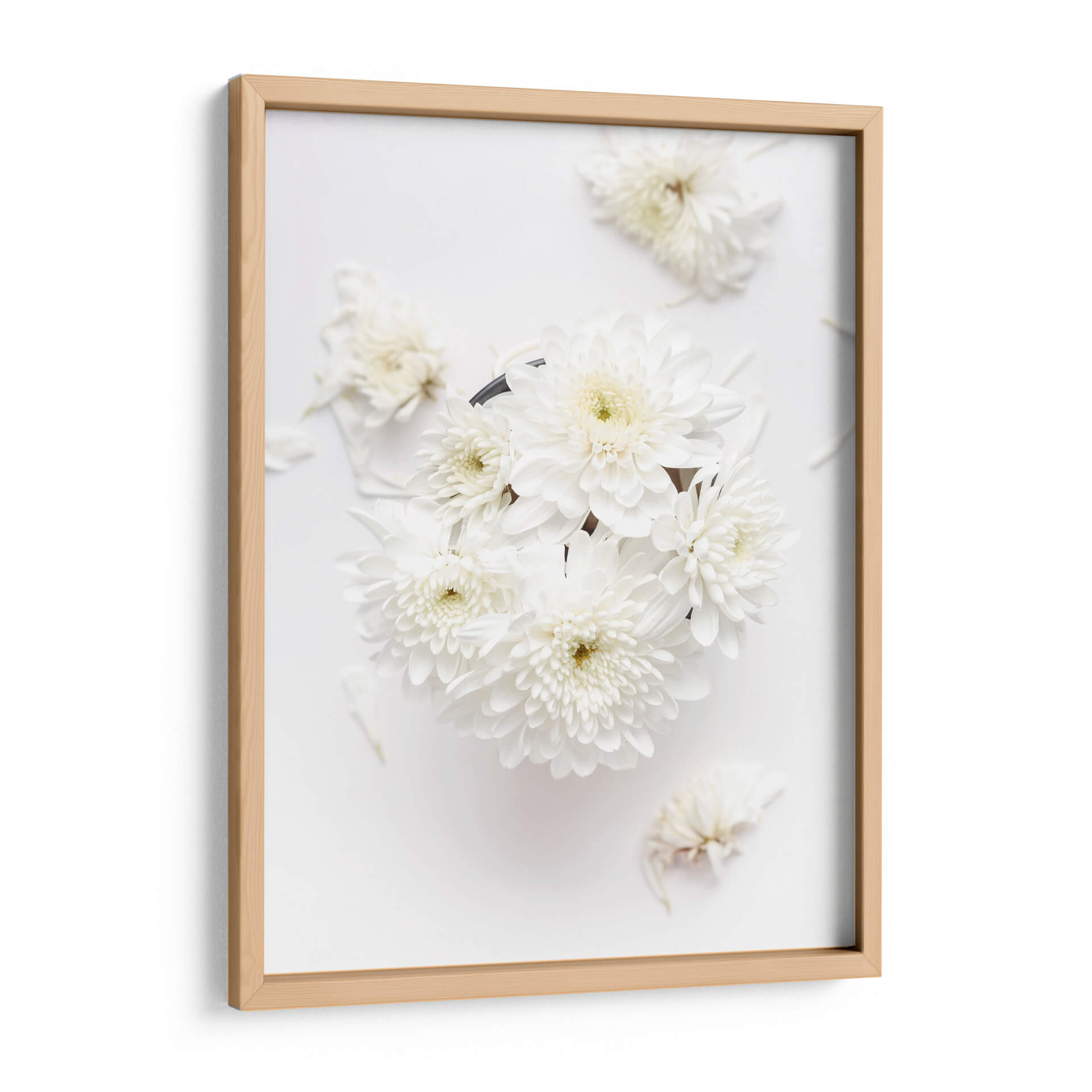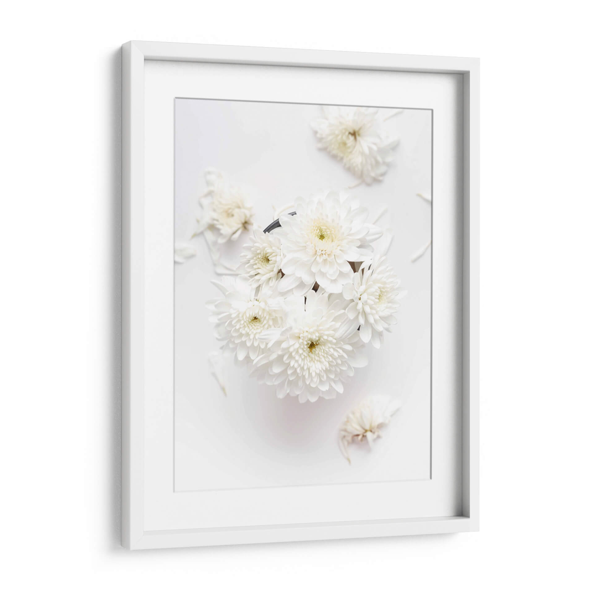 Sumérgete en la pureza y la serenidad con esta exquisita obra de arte titulada "Blanco sobre Blanco". Presenta un delicado arreglo de flores blancas, posiblemente crisantemos, dispuestas con una gracia etérea sobre un fondo minimalista y luminoso. La composición, que parece capturada desde una perspectiva cenital o ligeramente inclinada, resalta la belleza intrínseca de cada pétalo y la textura suave de las flores. Predomina una paleta de colores monocromática en tonos blancos y cremas, creando una atmósfera de calma, paz y elegancia sutil. Los sutiles contrastes de luz y sombra, junto con los pétalos caídos dispersos, añaden profundidad y un toque de melancolía poética a la pieza. Este lienzo es ideal para espacios que buscan un aire de sofisticación discreta, como dormitorios, salas de estar minimalistas, estudios o incluso oficinas que deseen proyectar tranquilidad y claridad. Su diseño atemporal y su evocadora simplicidad lo convierten en un complemento perfecto para cualquier decoración interior, aportando un toque de naturaleza y belleza serena que invita a la contemplación y al bienestar.