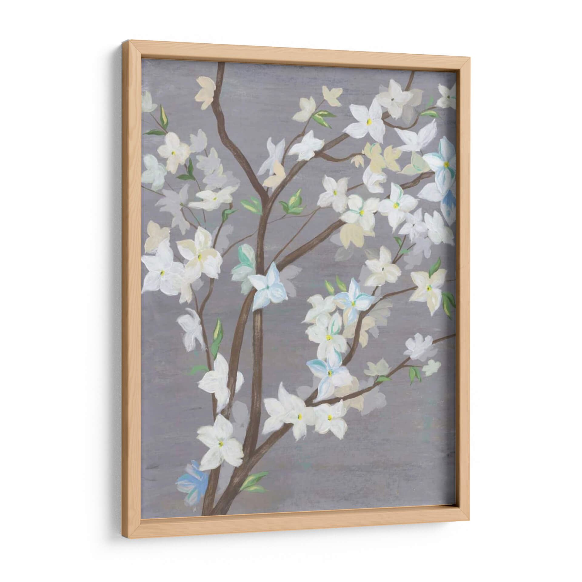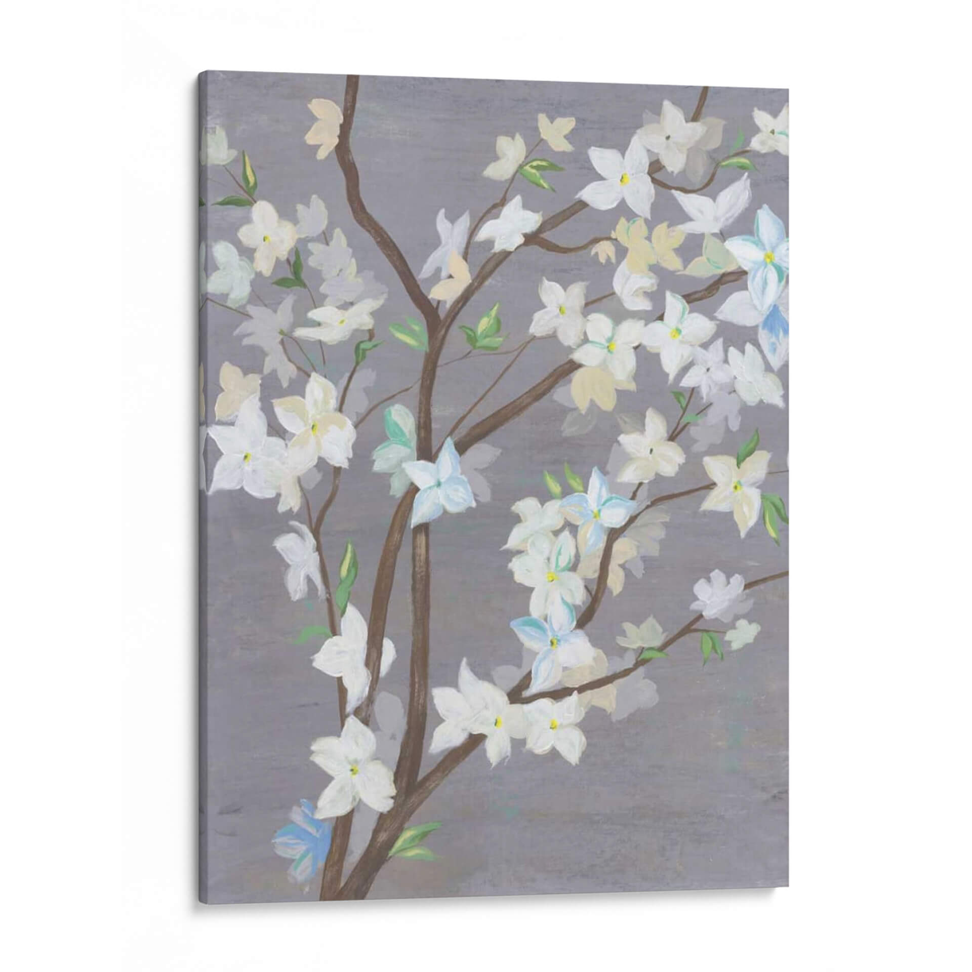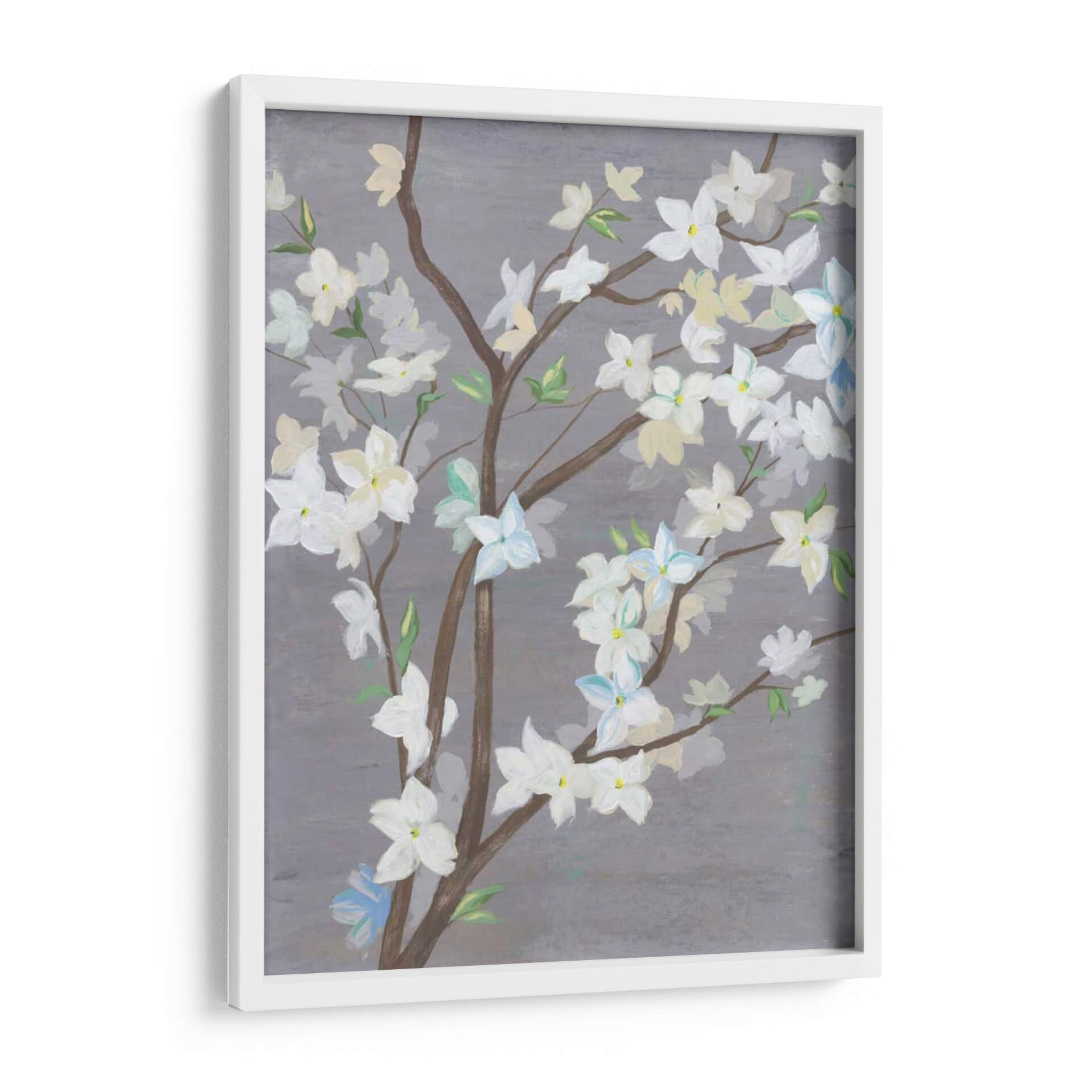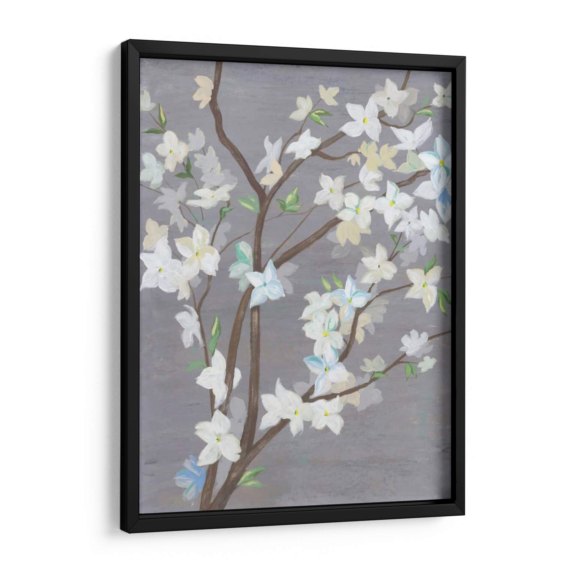 Embellece tu hogar con la serenidad de "Cherry Blossom Haze I", una cautivadora obra de arte del artista Grace Popp. Este cuadro decorativo captura la delicadeza de las flores de cerezo en plena floración, suspendidas en una atmósfera etérea. La paleta de colores, dominada por suaves tonos grises, blancos cremosos y sutiles toques de azul pálido y amarillo, crea una sensación de calma y sofisticación. Las ramas marrones se entrelazan elegantemente, formando un delicado entramado que realza la belleza de los pétalos. El estilo, que evoca una sensación de impresionismo contemporáneo, permite que la imaginación del espectador se sumerja en la escena, apreciando tanto el detalle como la atmósfera general. "Cherry Blossom Haze I" es ideal para añadir un toque de naturaleza y tranquilidad a cualquier espacio, ya sea un dormitorio, una sala de estar o una oficina. Su composición equilibrada y sus colores suaves lo convierten en una pieza versátil que complementará una amplia gama de estilos decorativos, desde el moderno hasta el minimalista. Invita la serenidad y la belleza efímera de la primavera a tu hogar con esta exquisita representación floral.
