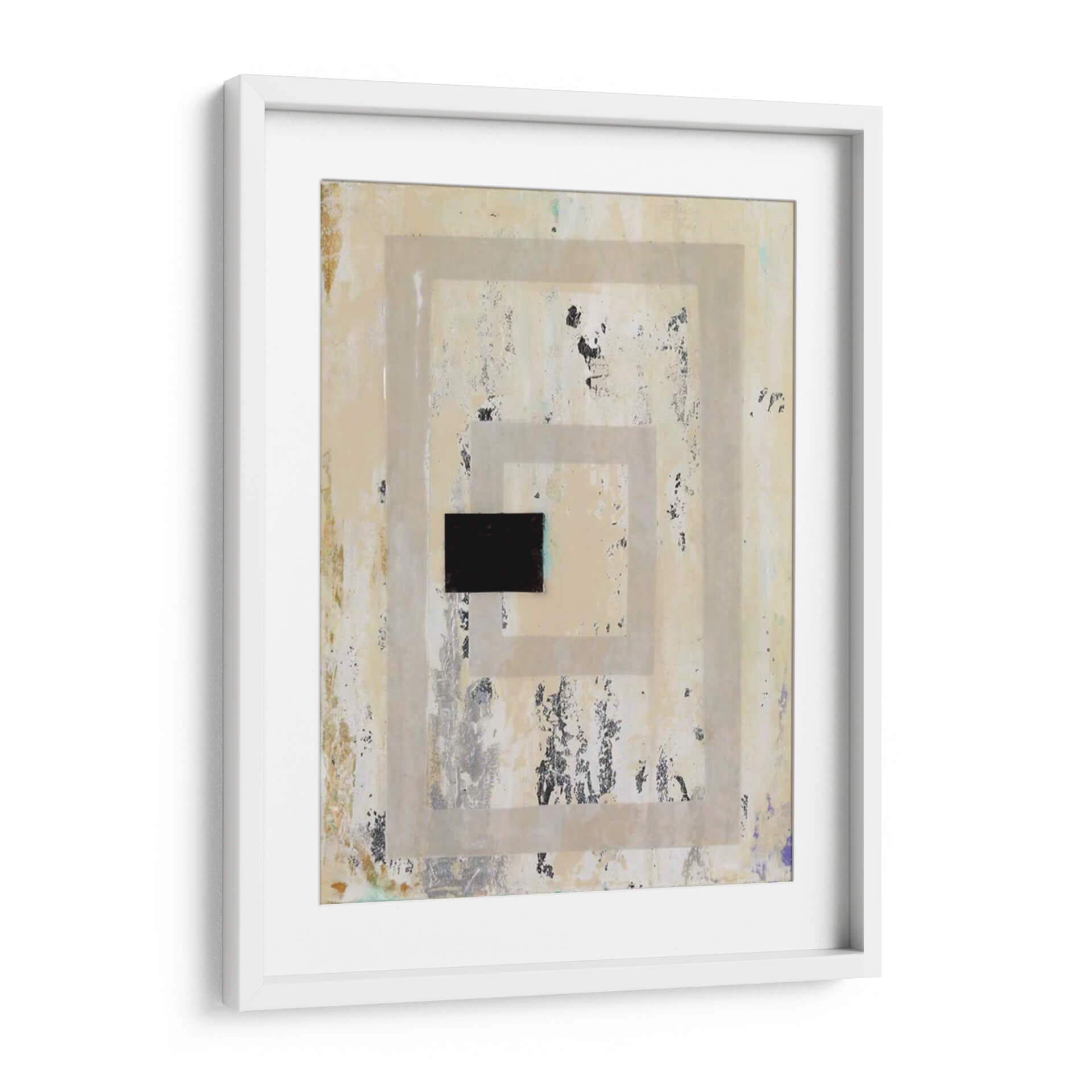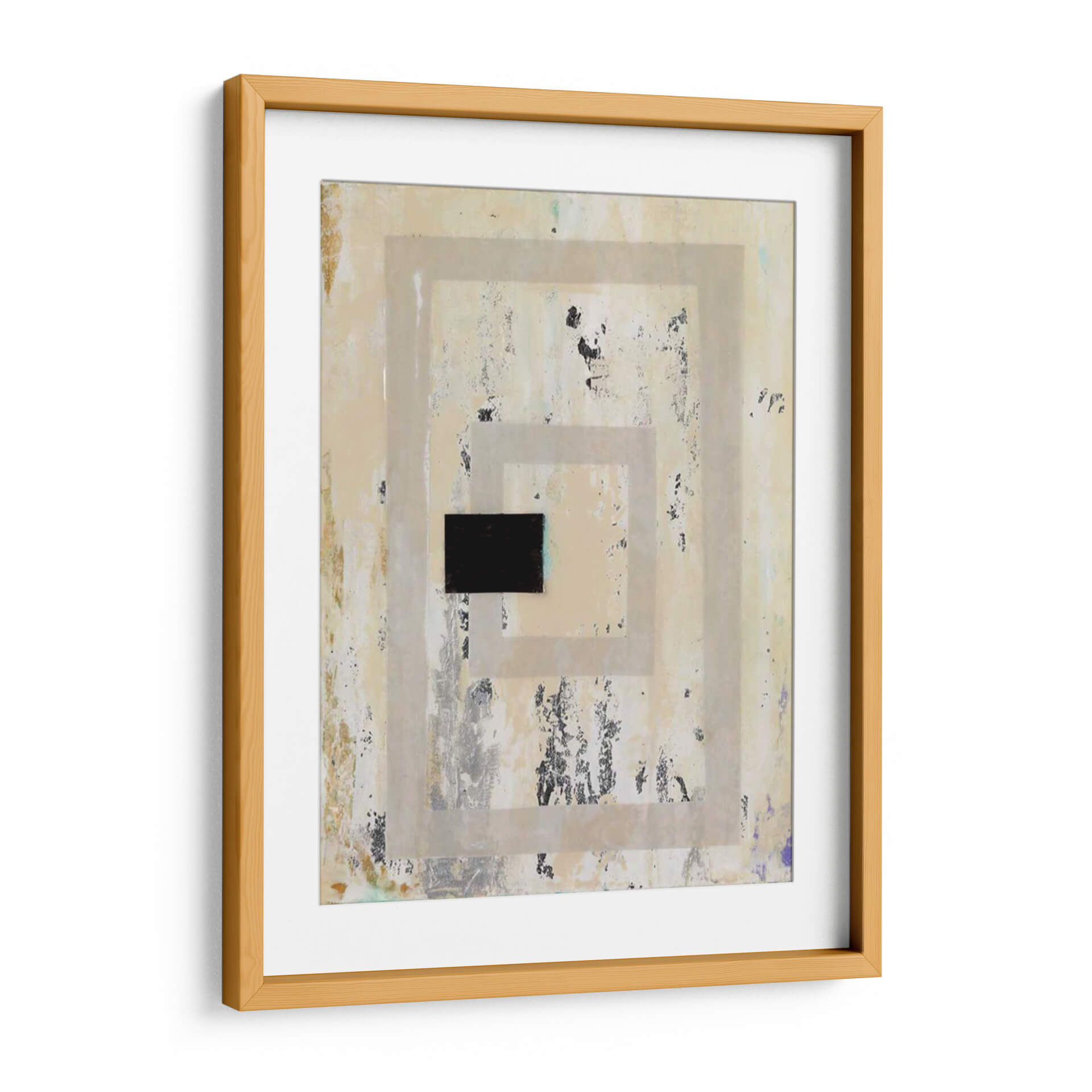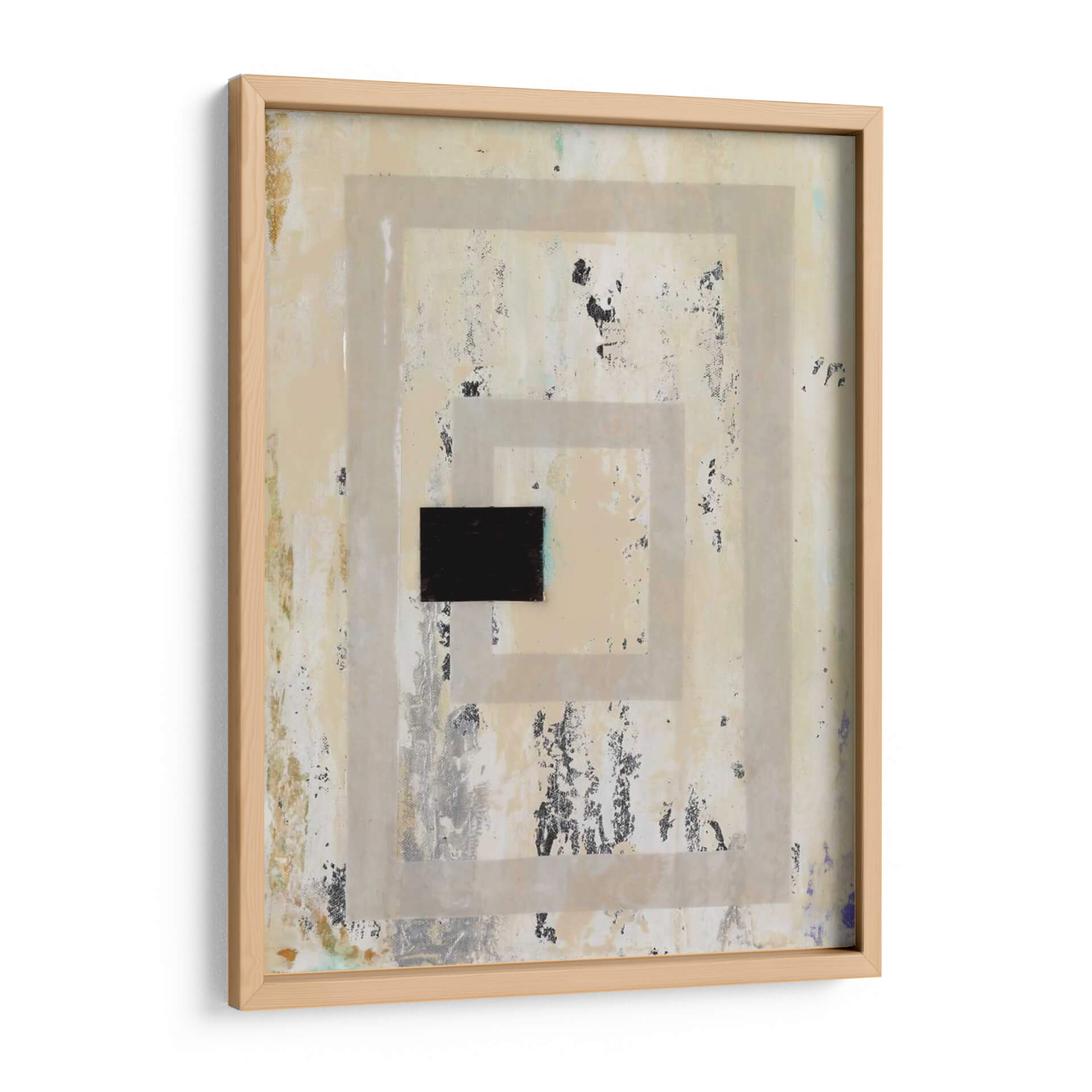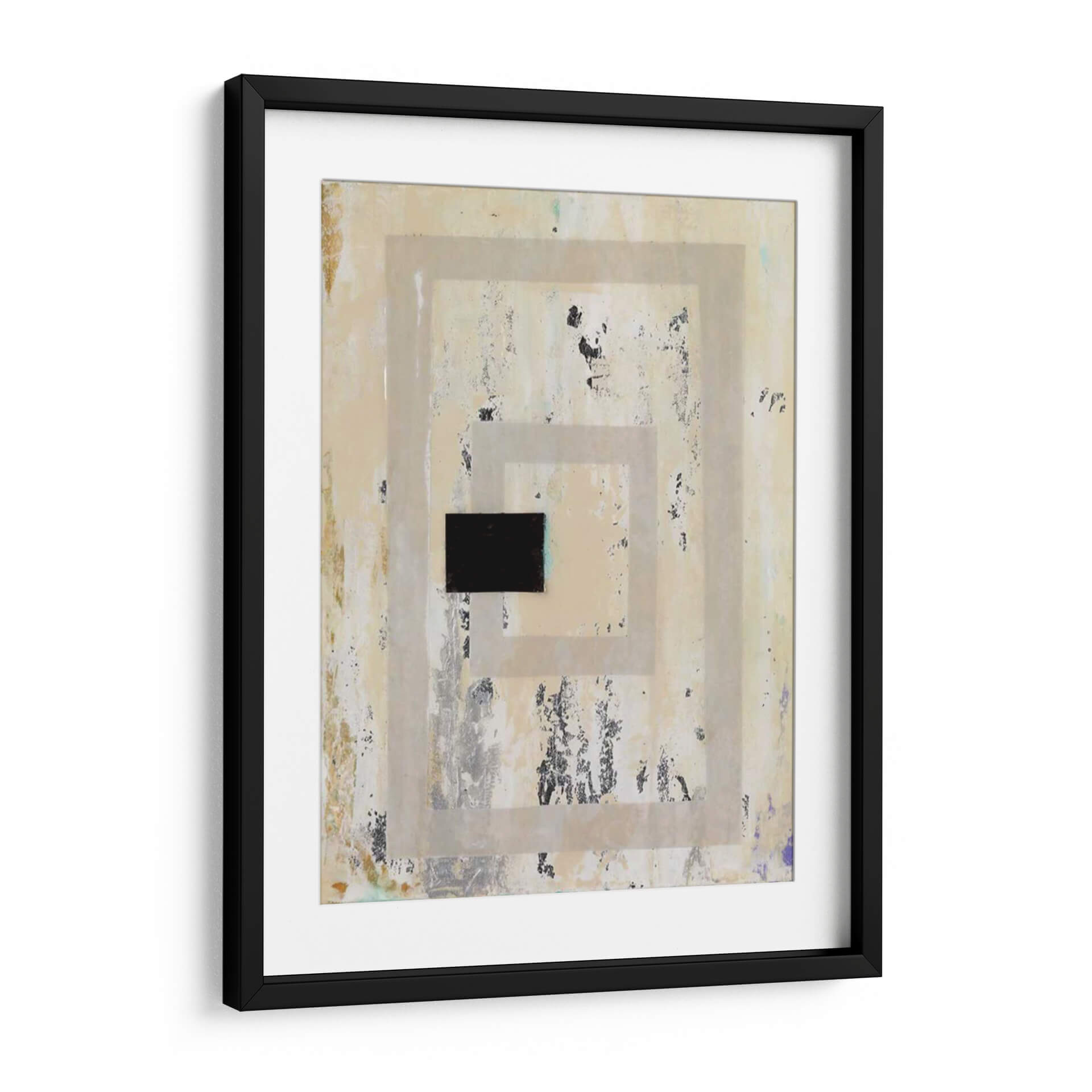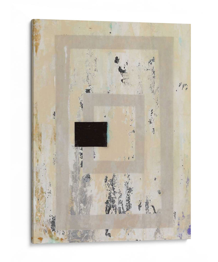 Sumérgete en la enigmática belleza de "Cinco Y Diez Centavos II", una obra maestra abstracta de Natalie Avondet. Esta pieza cautiva con su paleta de colores neutros, dominada por tonos cálidos de beige y crema, contrastados sutilmente por toques de negro y gris. Las formas geométricas superpuestas, especialmente los rectángulos concéntricos, crean una sensación de profundidad y orden dentro de una textura rica y aparentemente desgastada. La composición invita a la contemplación, evocando una atmósfera de calma serena con un toque de misterio. Los detalles de salpicaduras y rasguños en la superficie añaden carácter y una cualidad orgánica a la estructura geométrica, resultando en un equilibrio fascinante entre lo controlado y lo espontáneo. Este cuadro decorativo es perfecto para añadir un punto de sofisticación y profundidad a cualquier espacio, ya sea una sala de estar moderna, un estudio tranquilo o una oficina elegante. Su diseño versátil y su estética contemporánea lo convierten en una elección ideal para quienes buscan una pieza de arte que inspire reflexión y eleve la decoración de su hogar u oficina, aportando un diálogo visual único y atemporal. Es más que una simple decoración; es una ventana a la abstracción elegante y la expresión artística.