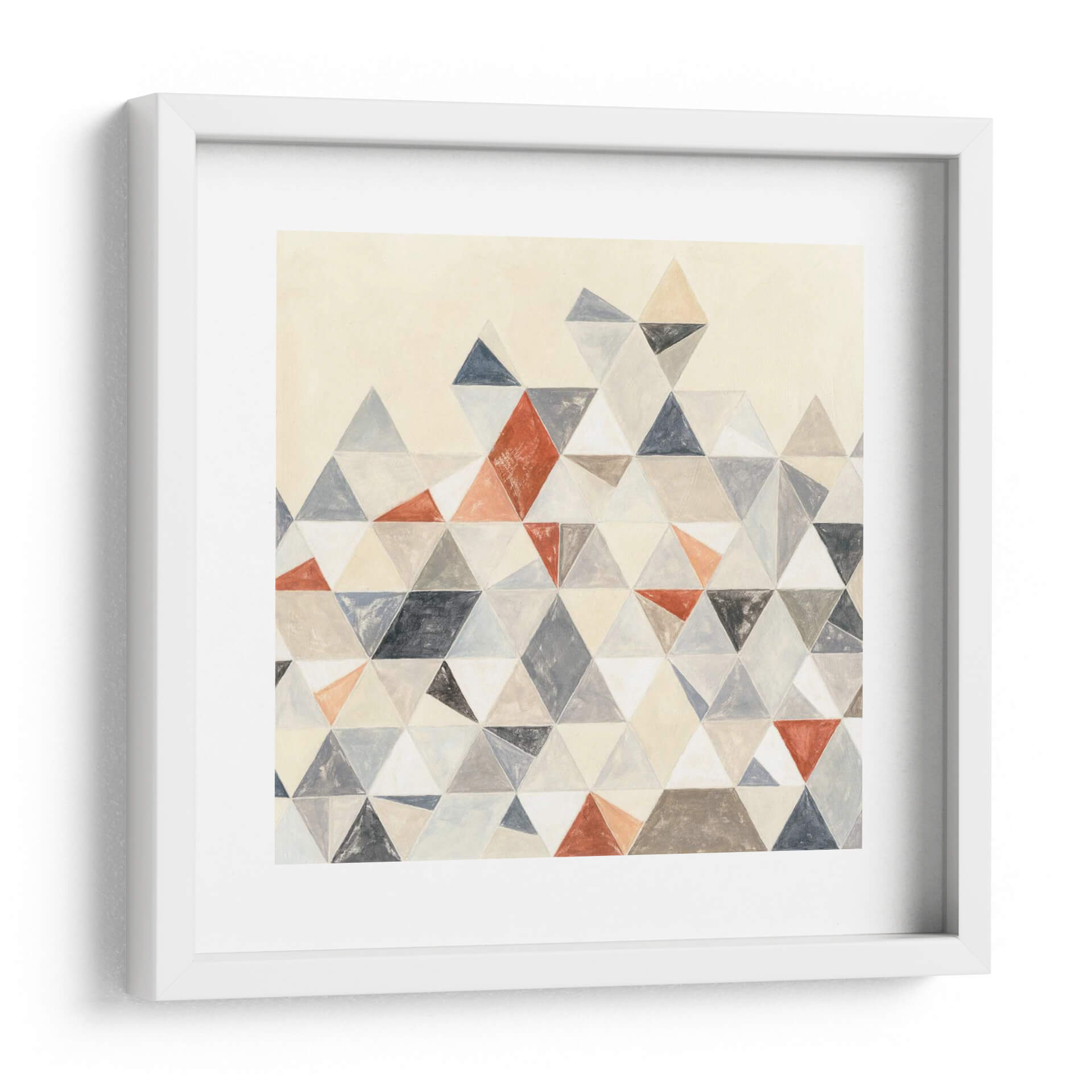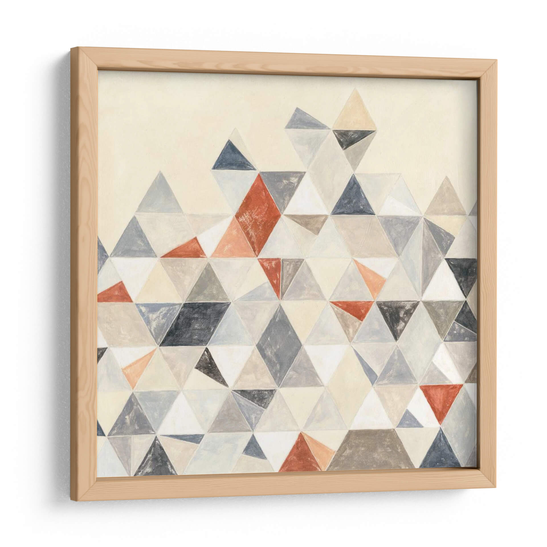 Sumérgete en la armonía geométrica de "División Y Conexión II", una cautivadora obra de arte contemporáneo de Megan Meagher. Este cuadro decorativo presenta una intrincada composición de triángulos en una paleta de colores serena que combina tonos neutros como beige, gris y blanco roto con sutiles toques de terracota y azul profundo. Cada triángulo, texturizado y sutilmente sombreado, crea una sensación de profundidad y conexión, evocando un equilibrio entre la estructura y el movimiento. La obra irradia una atmósfera de calma reflexiva y orden moderno, perfecta para añadir un toque de sofisticación intelectual a cualquier espacio. Ideal para salas de estar, estudios u oficinas, este lienzo abstracto invita a la contemplación y se integra sin esfuerzo en decoraciones minimalistas, escandinavas o contemporáneas. "División Y Conexión II" no es solo una pieza decorativa, sino una invitación a explorar las relaciones visuales y conceptuales, añadiendo carácter y una energía sutil pero poderosa a tu hogar u oficina. Descubre la belleza de la abstracción geométrica.