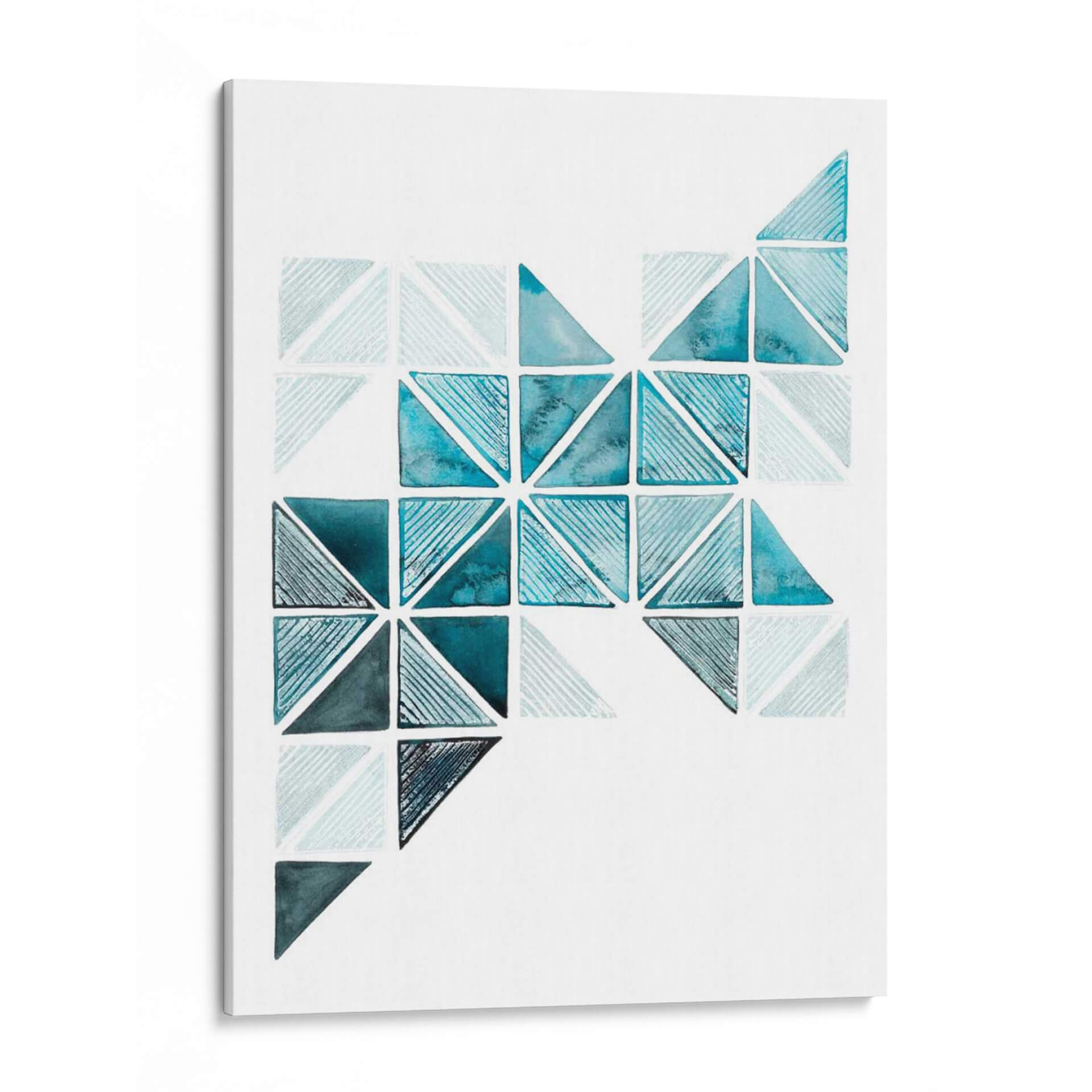 Sumérgete en la serenidad geométrica de "Jaydas Ladder II", una obra de arte contemporáneo que redefine el espacio con su elegante composición. Este cuadro decorativo presenta un intrincado patrón de triángulos y cuadrados, ejecutado con una paleta de acuarelas en tonos azules y grises que evocan la calma del océano y la solidez de la tierra. Cada forma, ya sea un triángulo sólido o uno delineado con finas líneas, aporta una textura visual única, creando un juego de luces y sombras que invita a la contemplación. La disposición ascendente de las figuras sugiere progresión y aspiración, convirtiéndola en una pieza inspiradora para cualquier entorno. Ideal para espacios que buscan un toque de sofisticación moderna y tranquilidad, este cuadro es perfecto para salones minimalistas, oficinas serenas o dormitorios que invitan al descanso. "Jaydas Ladder II" no es solo una decoración, es una invitación a la reflexión, un punto focal que añade carácter y profundidad a tu hogar u oficina, fusionando la delicadeza de la acuarela con la audacia de la geometría abstracta para crear una experiencia visual armoniosa y cautivadora.