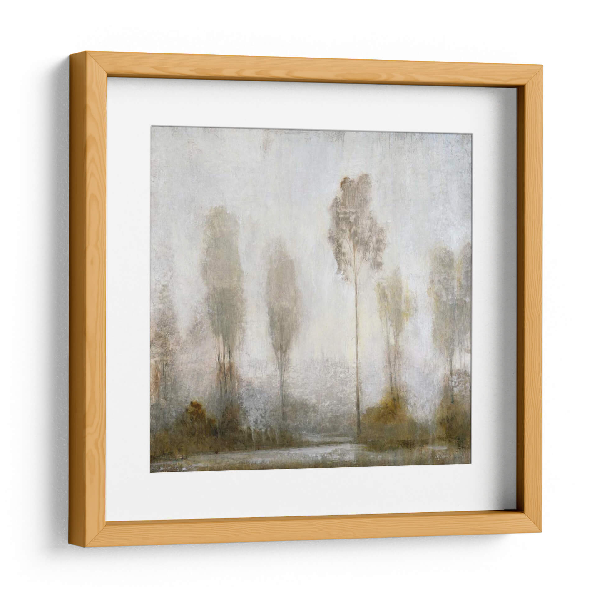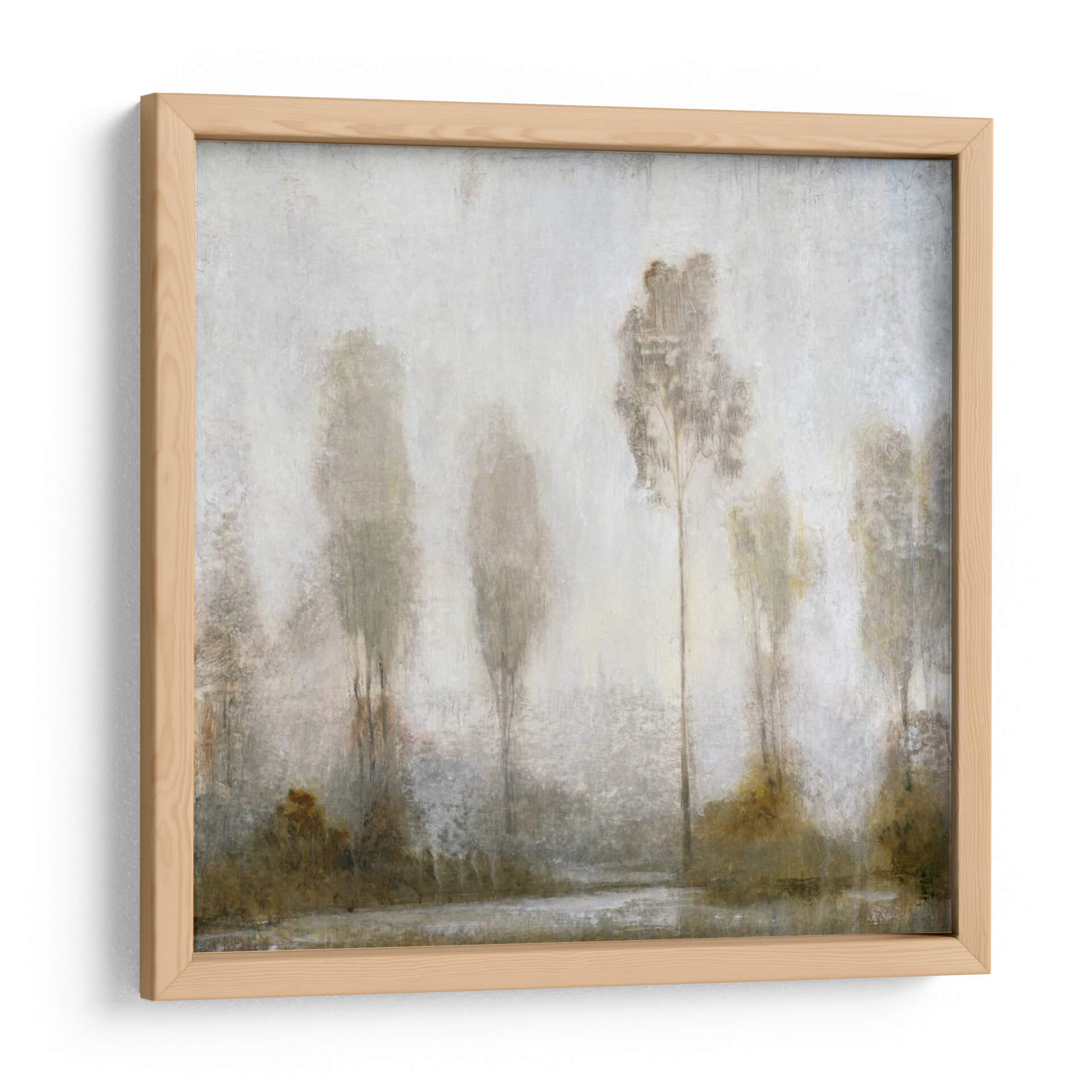 Sumérgete en la serena atmósfera de "Misty Marsh II" de Tim OToole, una obra de arte que captura la etérea belleza de un paisaje de humedal envuelto en bruma. Las pinceladas evocadoras y la paleta de colores suaves, dominada por tonos tierra, grises pálidos y sutiles toques de verde y amarillo, crean una sensación de calma y misterio. Las formas alargadas y difusas de los árboles se alzan suavemente contra el cielo brumoso, invitando a la contemplación y la introspección. Este cuadro decorativo es perfecto para transformar cualquier espacio en un refugio de tranquilidad, ideal para salones, dormitorios o estudios donde se busca una conexión con la naturaleza y una atmósfera de paz. Su estilo contemporáneo y su composición sutil lo convierten en una adición versátil y elegante a cualquier decoración, aportando profundidad y carácter sin abrumar el ambiente. Descubre la magia sutil de la naturaleza con esta pieza única que evoca la quietud de una mañana neblinosa.
