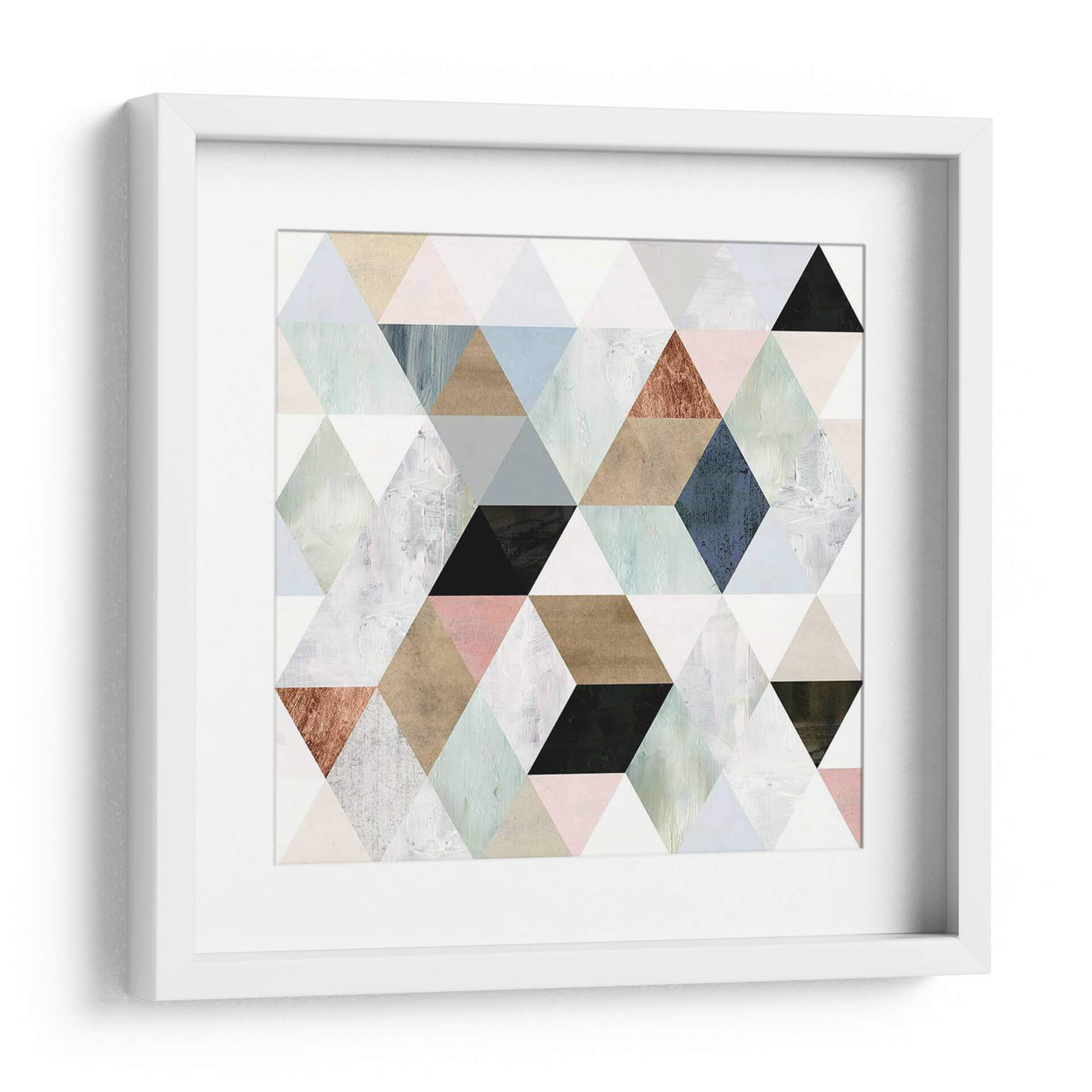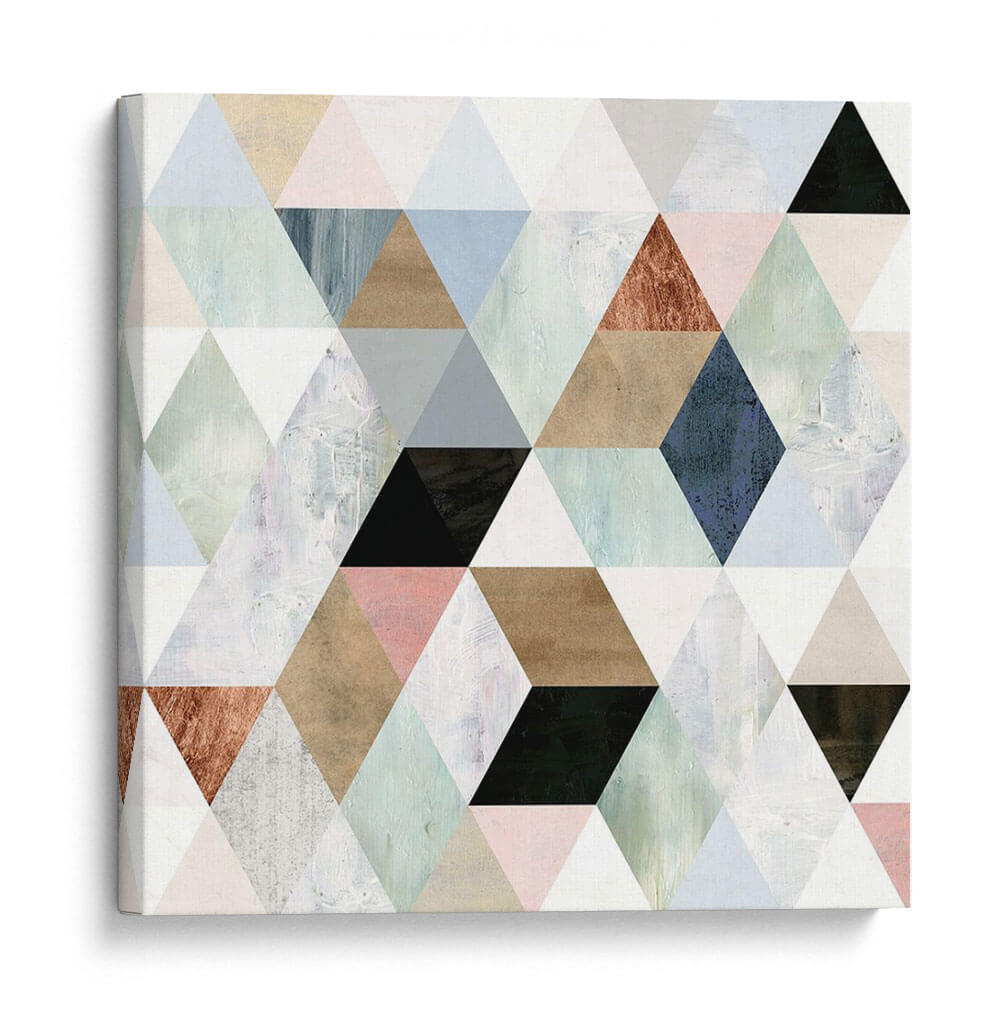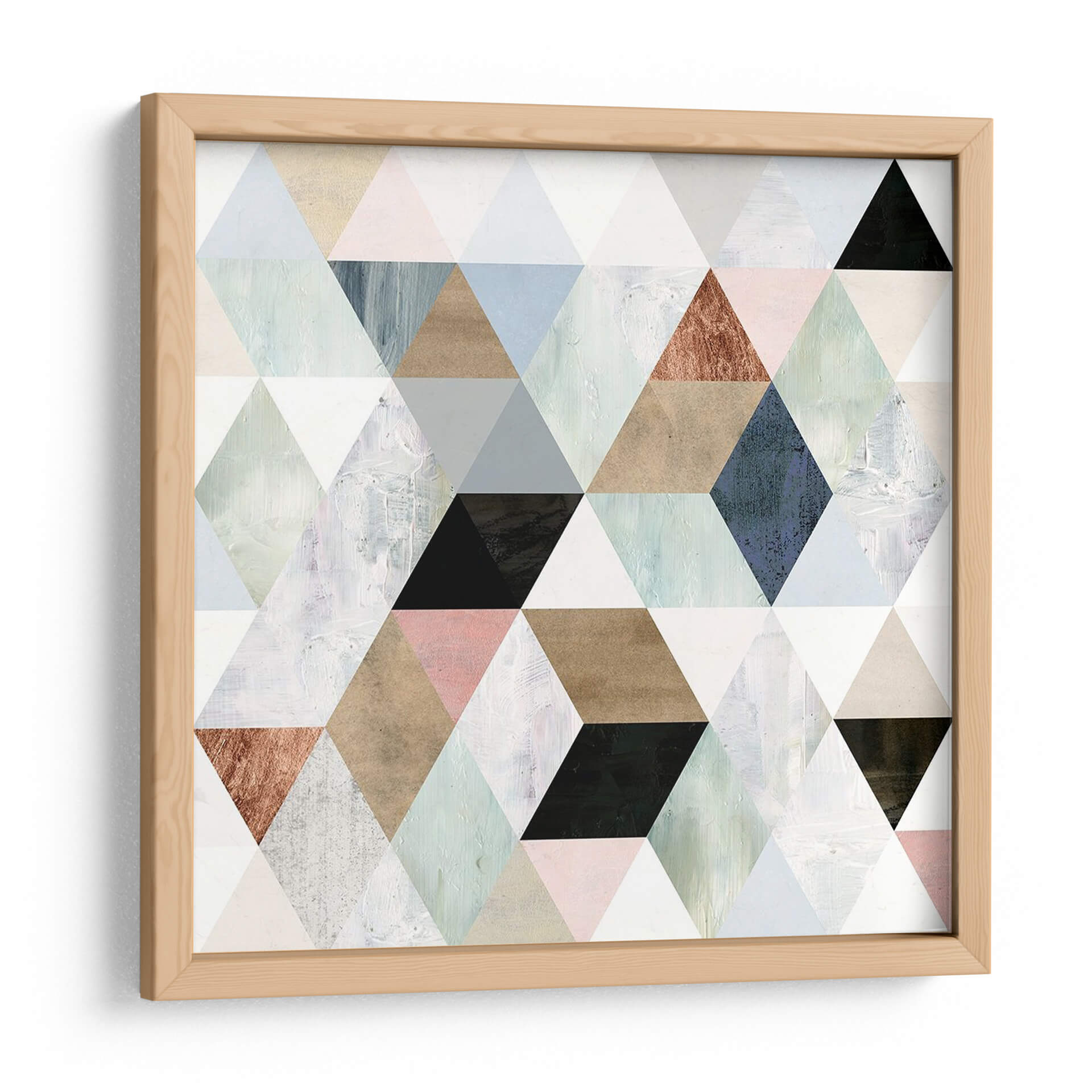 Adéntrate en un universo de formas geométricas y texturas sutiles con 'Mosaico De Acuarela I', una obra de arte contemporáneo de Victoria Borges. Este cuadro decorativo es una sinfonía visual que entrelaza triángulos y rombos en una composición dinámica y armoniosa. La paleta de colores, que transita entre suaves tonos pastel como el rosa pálido y el azul cielo, se complementa con toques terrosos de beige y marrón, y acentos audaces de negro y cobre iridiscente. Las texturas, que evocan la delicadeza de la acuarela y la rusticidad del lienzo, añaden profundidad y un carácter orgánico a la rigidez geométrica. Cada sección, pintada con un trazo seguro pero etéreo, crea un efecto de mosaico moderno que invita a la contemplación. 'Mosaico De Acuarela I' es más que una pieza decorativa; es una expresión de equilibrio entre el orden y la espontaneidad, ideal para infundir serenidad y un toque de sofisticación abstracta en tu sala de estar, dormitorio u oficina. Transforma tu espacio con esta obra única que captura la mirada y acaricia el alma, convirtiéndose en el punto focal perfecto para cualquier ambiente moderno o ecléctico.