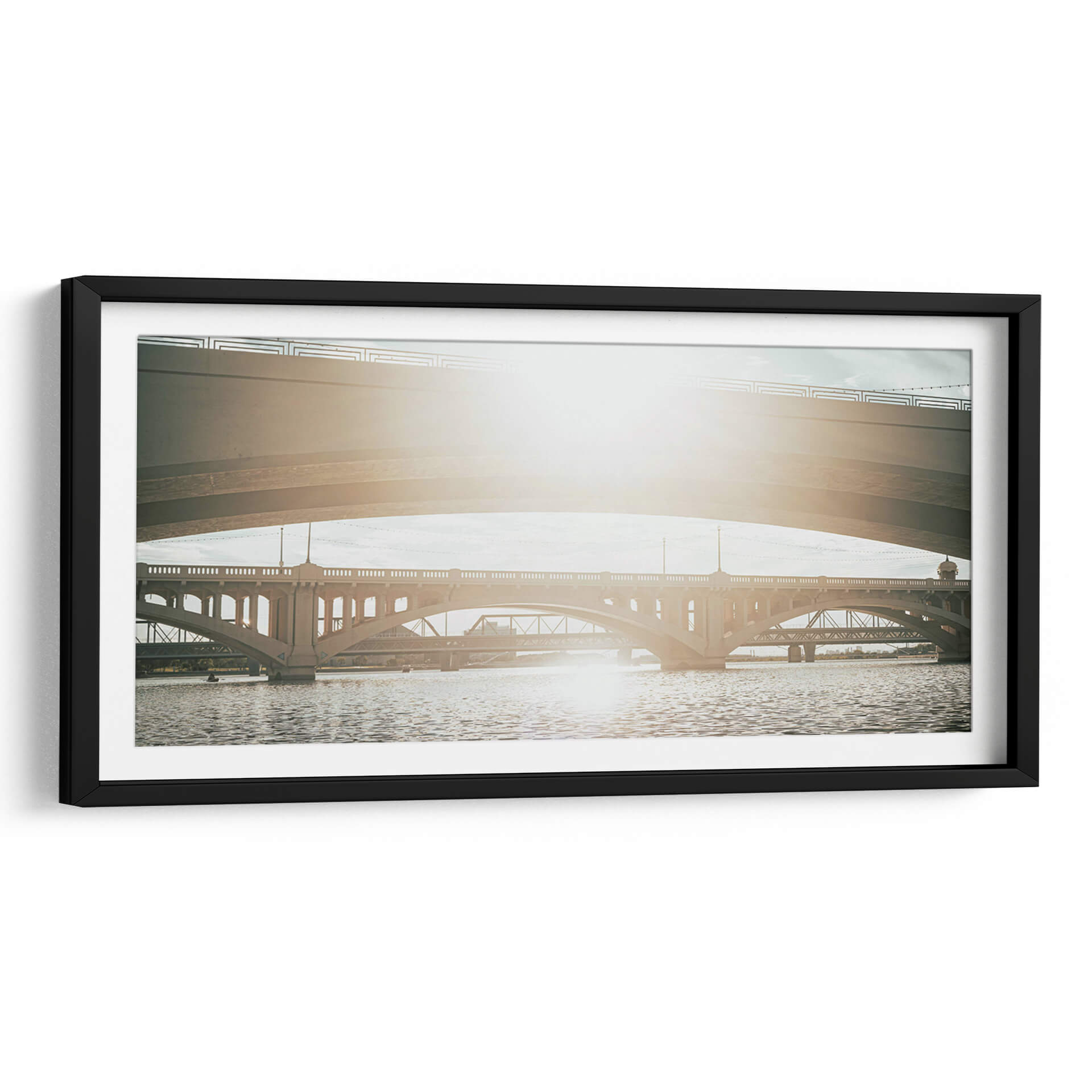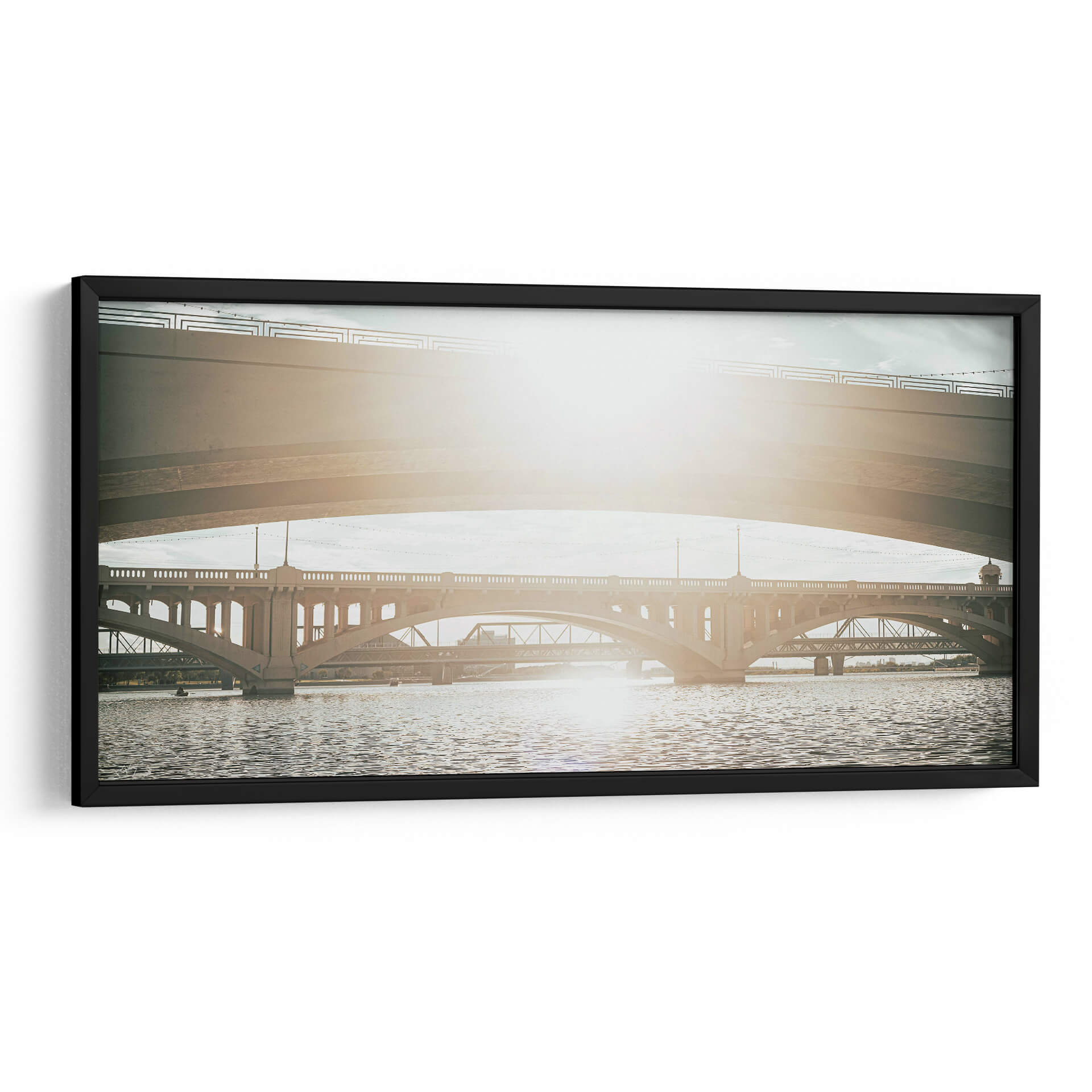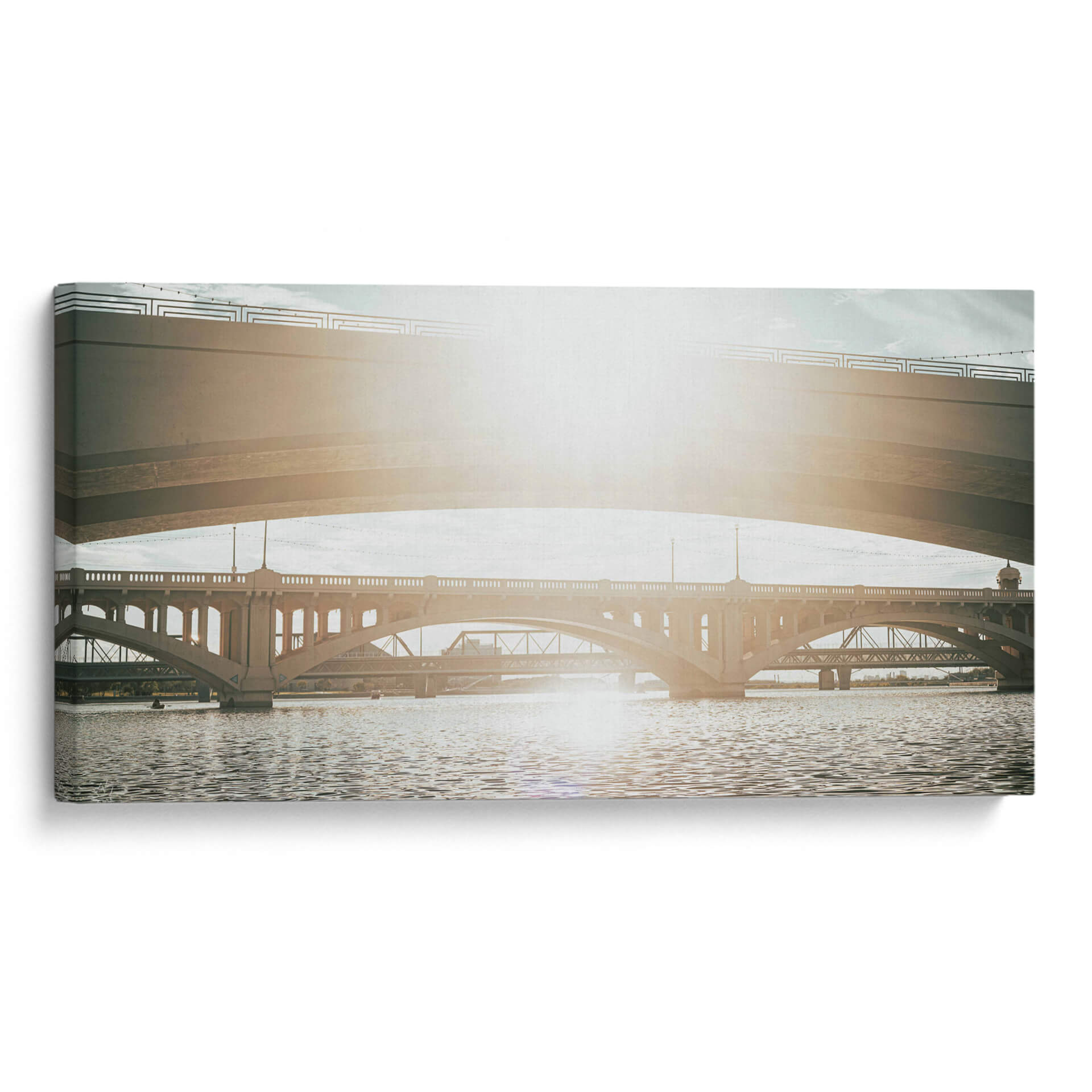 Sumérgete en la majestuosidad arquitectónica con "SOMOS PUENTES II" de Zuriel Halal, un cuadro decorativo que captura la esencia de la conexión y la ingeniería. Esta obra presenta una composición urbana donde múltiples puentes se entrelazan sobre un cuerpo de agua sereno. La luz solar, brillante y cálida, baña la escena, creando un juego de luces y sombras que realza la textura de las estructuras de concreto y el movimiento ondulante del agua. La paleta de colores, dominada por tonos tierra, grises y azules suaves, evoca una atmósfera de tranquilidad y contemplación, ideal para espacios que buscan un toque de sofisticación y serenidad. La perspectiva fotográfica, que juega con la superposición de las distintas estructuras, añade profundidad y un dinamismo sutil. "SOMOS PUENTES II" es más que una simple imagen; es una invitación a reflexionar sobre las conexiones que nos unen y la belleza de la infraestructura moderna. Perfecta para salones, oficinas o cualquier lugar donde se desee añadir un elemento visualmente cautivador y espiritualmente resonante. Añade esta pieza única a tu colección y transforma tu espacio con su presencia inspiradora.