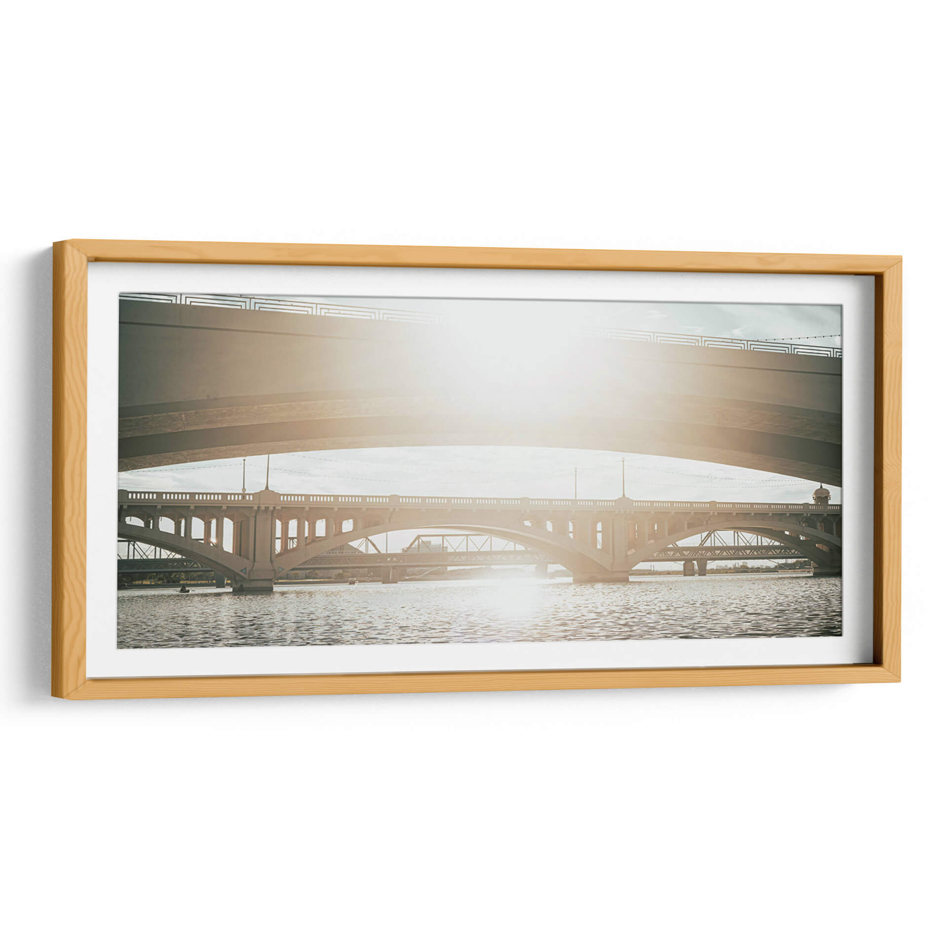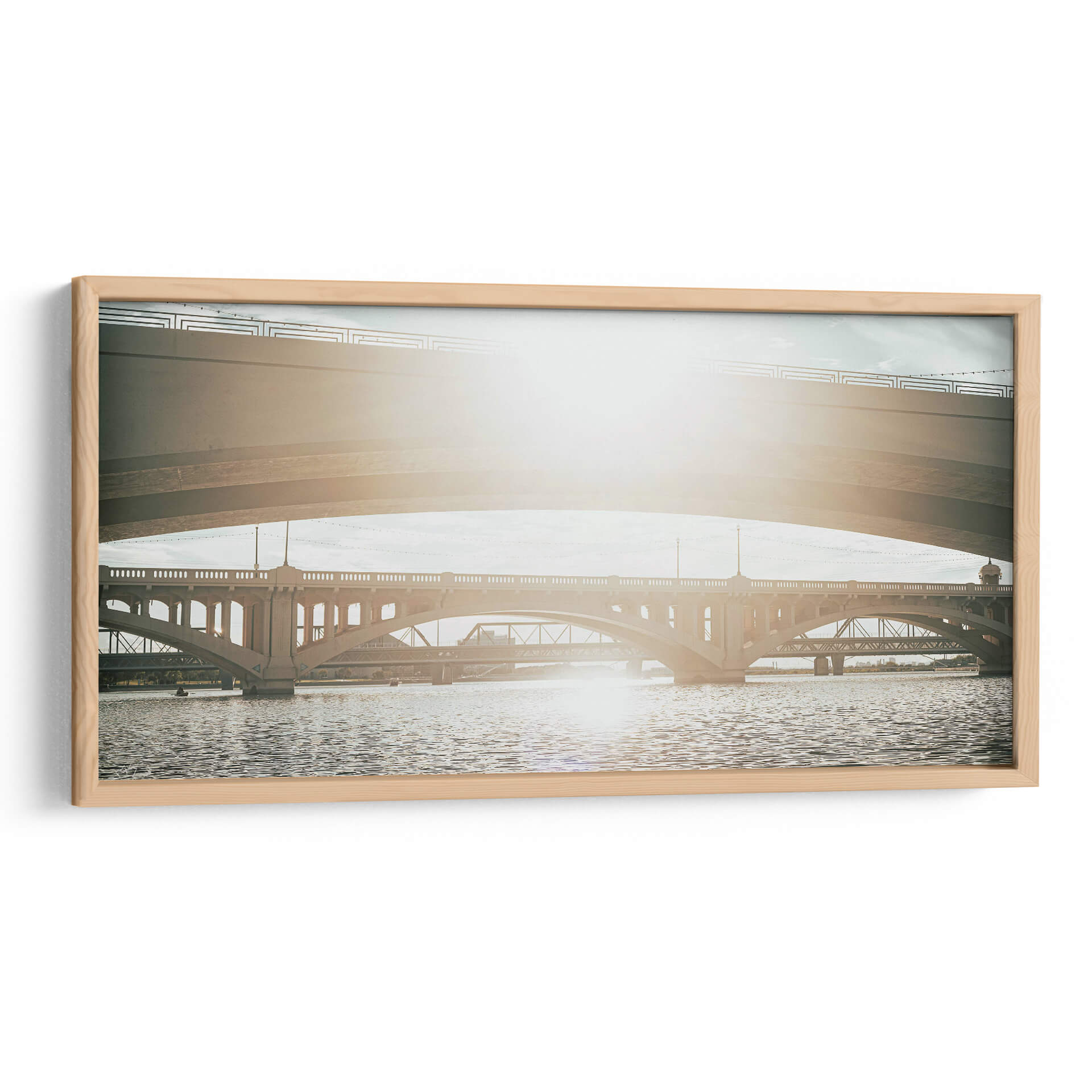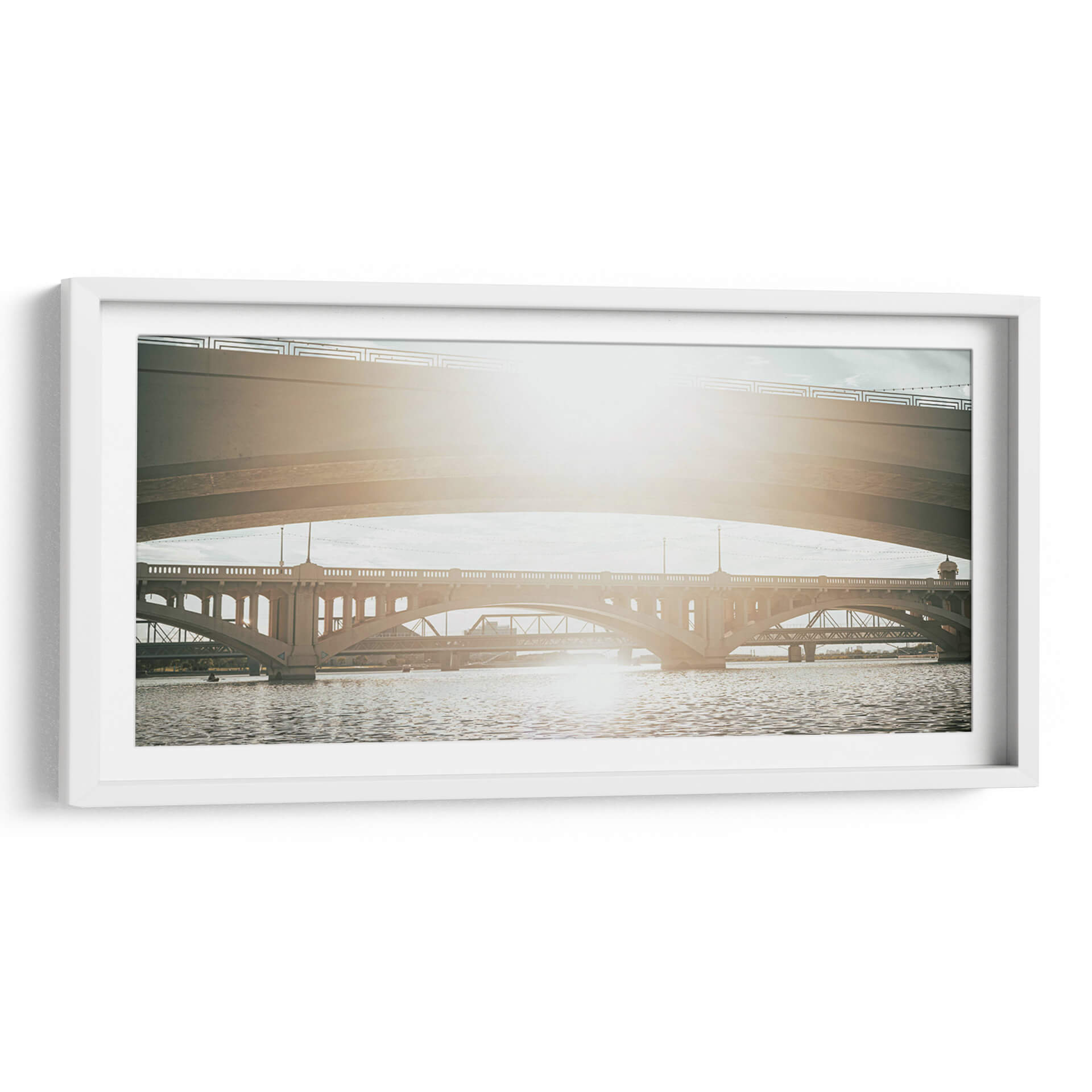 Sumérgete en la majestuosidad arquitectónica con "SOMOS PUENTES II" de Zuriel Halal, un cuadro decorativo que captura la esencia de la conexión y la ingeniería. Esta obra presenta una composición urbana donde múltiples puentes se entrelazan sobre un cuerpo de agua sereno. La luz solar, brillante y cálida, baña la escena, creando un juego de luces y sombras que realza la textura de las estructuras de concreto y el movimiento ondulante del agua. La paleta de colores, dominada por tonos tierra, grises y azules suaves, evoca una atmósfera de tranquilidad y contemplación, ideal para espacios que buscan un toque de sofisticación y serenidad. La perspectiva fotográfica, que juega con la superposición de las distintas estructuras, añade profundidad y un dinamismo sutil. "SOMOS PUENTES II" es más que una simple imagen; es una invitación a reflexionar sobre las conexiones que nos unen y la belleza de la infraestructura moderna. Perfecta para salones, oficinas o cualquier lugar donde se desee añadir un elemento visualmente cautivador y espiritualmente resonante. Añade esta pieza única a tu colección y transforma tu espacio con su presencia inspiradora.