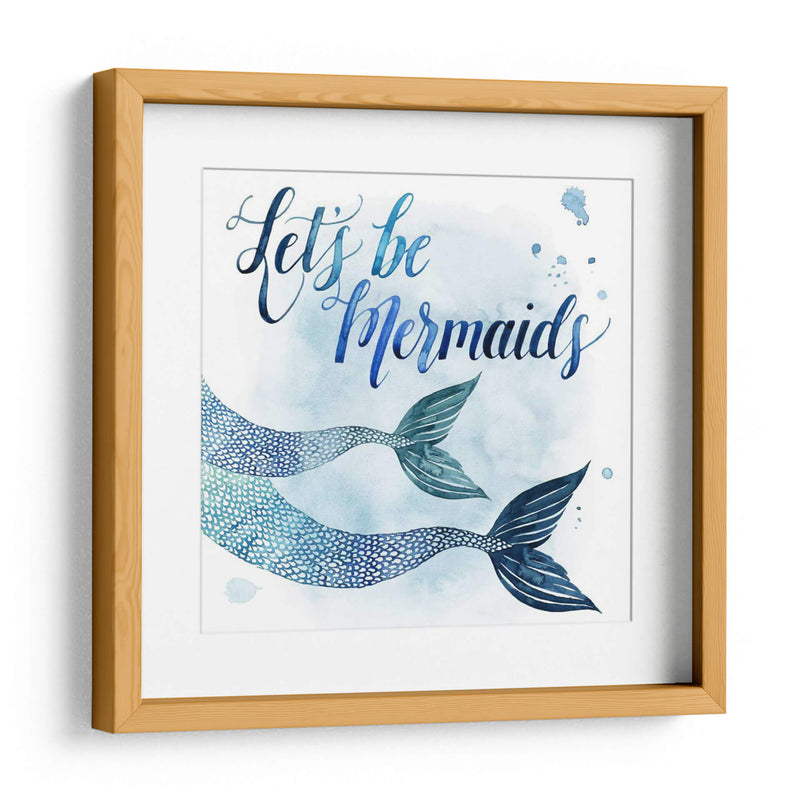 Sumérgete en un mundo de fantasía y ensueño con "Amantes Del Mar Ii", una cautivadora obra de arte de Grace Popp. Este cuadro decorativo, con su delicada paleta de azules acuosos y sus icónicas colas de sirena, evoca una sensación de serenidad y magia marina. La tipografía elegante y fluida del mensaje "Let's be Mermaids" añade un toque lúdico y aspiracional, invitando a la contemplación del misterio del océano. La técnica de acuarela crea una atmósfera etérea, con manchas de color sutiles que sugieren el movimiento del agua y la luz. Ideal para añadir un toque de encanto costero a tu dormitorio, salón o incluso un baño con temática marina. Transforma tu espacio en un refugio de tranquilidad y fantasía con este inspirador cuadro que celebra la belleza y el misticismo del mar. Perfecto para quienes buscan una decoración que combine estilo contemporáneo con una pizca de escapismo.