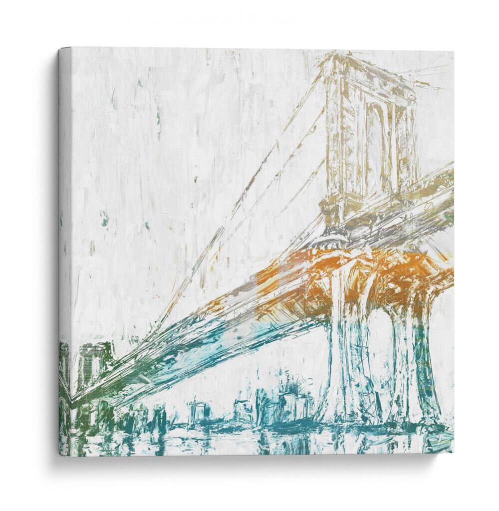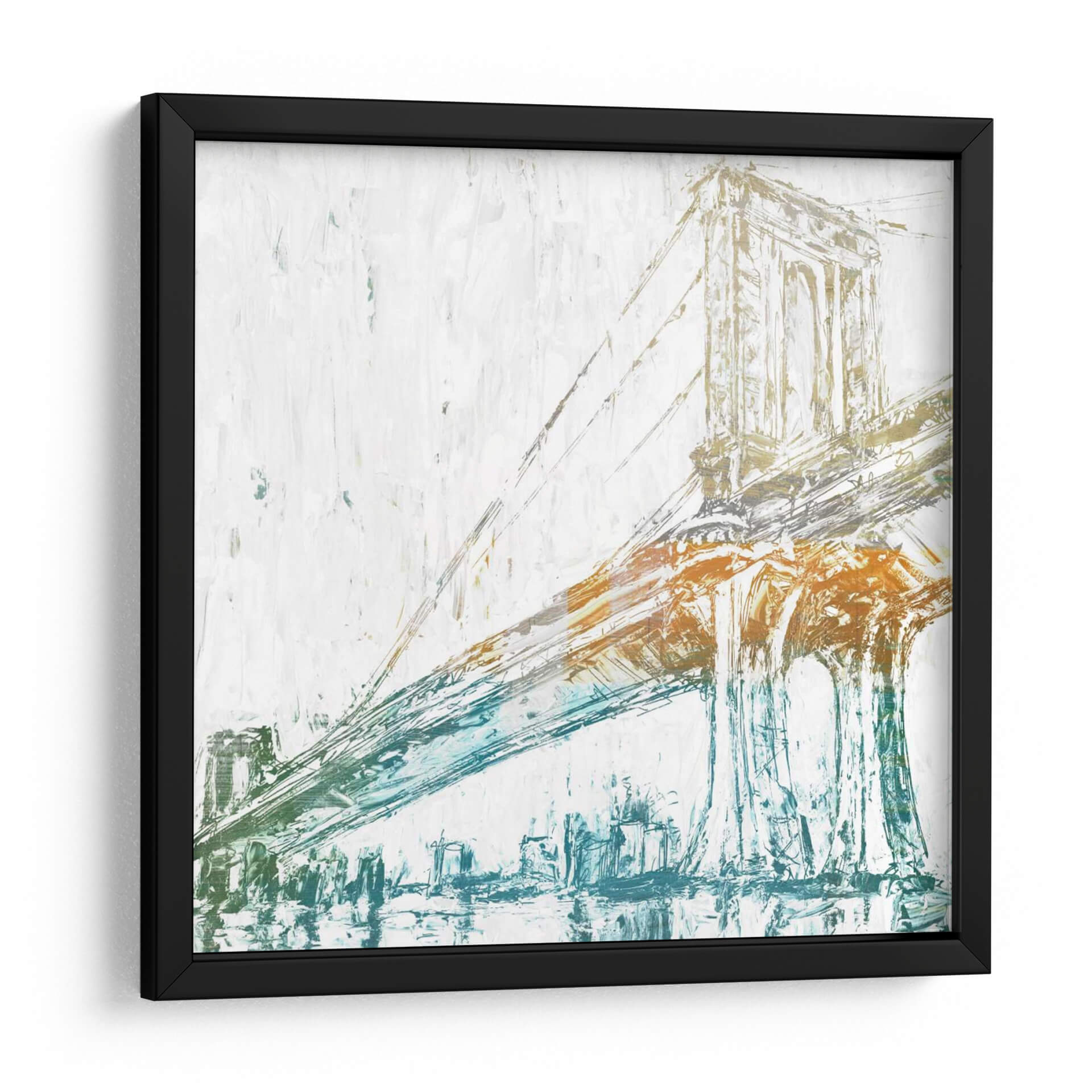 Captura la esencia de la ingeniería icónica y la vibrante vida urbana con "Cruzando Sobre Ii", una obra de arte contemporáneo que reimagina un puente emblemático. Los trazos audaces y expresivos, reminiscentes de una pintura al óleo o acrílico, dan vida a la estructura con una energía palpable. La paleta de colores, dominada por un blanco de fondo que aporta luminosidad, se ve enriquecida por toques de ocre cálido y azul verdoso profundo, creando un contraste dinámico que atrae la mirada. La composición se centra en la majestuosidad del puente, con sus cables extendiéndose y sus pilares emergiendo con fuerza del reflejo acuático. Esta pieza evoca una sensación de conexión y movimiento, perfecta para añadir un punto focal sofisticado y moderno a cualquier sala de estar, estudio u oficina. Su estilo abstracto pero reconocible la convierte en una elección versátil para una decoración que busca un toque de carácter sin sacrificar la elegancia. Ideal para amantes de la arquitectura, viajeros o aquellos que buscan una pieza que inspire y energice su espacio vital.